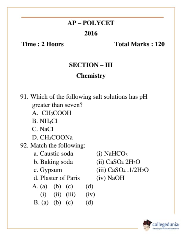 AP POLYCET 2016 Chemistry Question Paper with Answer Key PDFs (Unofficial)