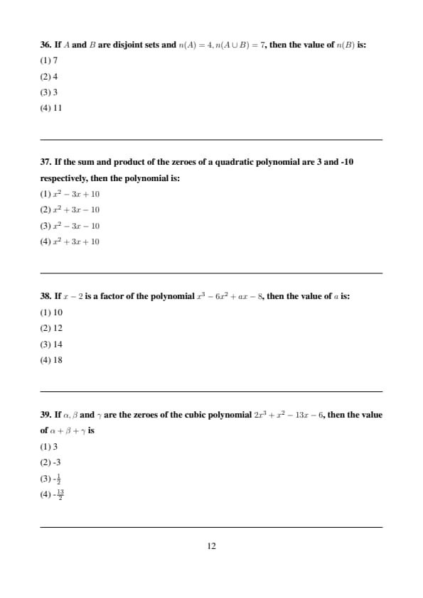 If the sum and product of the zeroes of a quadratic polynomial are 3 and -10 respectively, then the polynomial is: