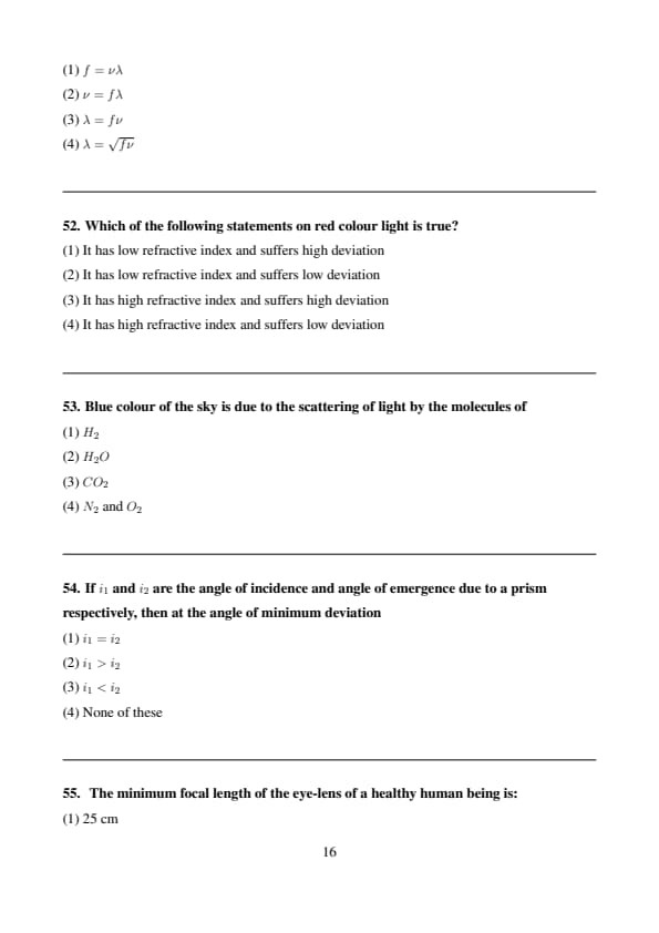 Relationship among the speed of light wave (\( \nu \)), wavelength (\( \lambda \)), and frequency (\( f \)) is given by: