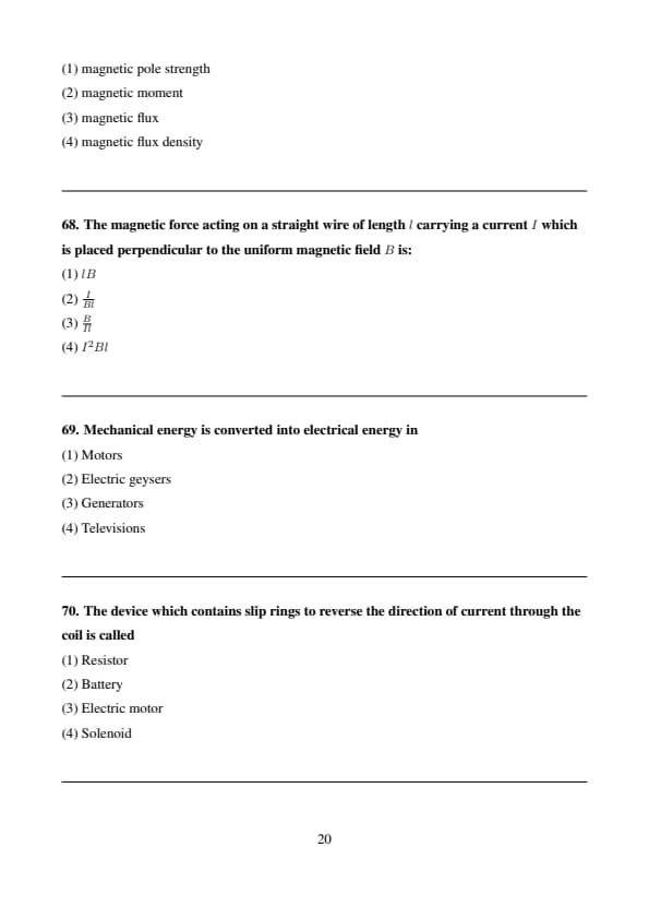 The magnetic force acting on a straight wire of length \( l \) carrying a current \( I \) which is placed perpendicular to the uniform magnetic field \( B \) is: