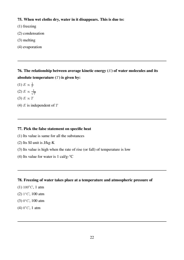 The relationship between average kinetic energy (\( E \)) of water molecules and its absolute temperature (\( T \)) is given by: