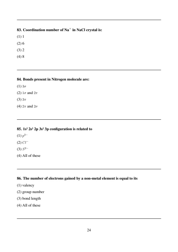 Electronic configurations of \( Mg^{2+} \) ion and \( Cl^{-} \) ion are: