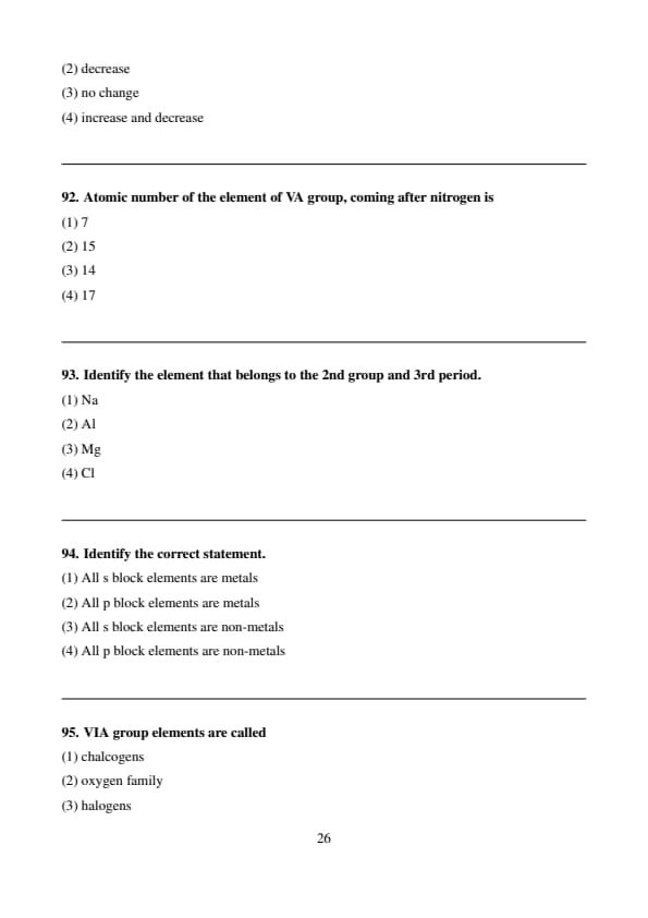 Atomic number of the element of VA group, coming after nitrogen is