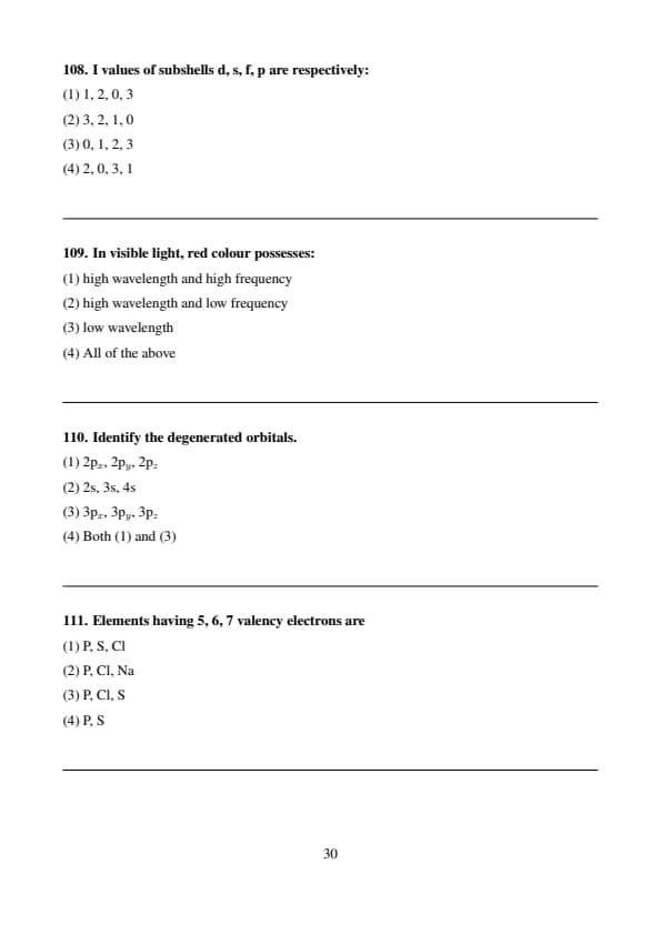I values of subshells d, s, f, p are respectively: