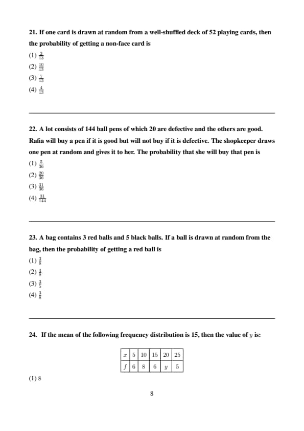 If one card is drawn at random from a well-shuffled deck of 52 playing cards, then the probability of getting a non-face card is
