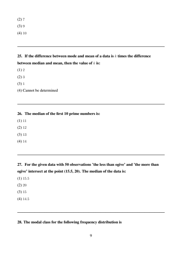 If the difference between mode and mean of a data is \( k \) times the difference between median and mean, then the value of \( k \) is: