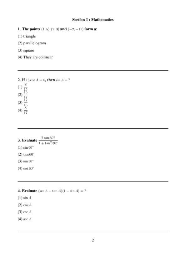 - (4) \( \sec A \)