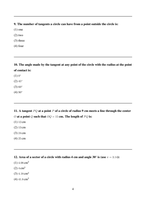 The angle made by the tangent at any point of the circle with the radius at the point of contact is: