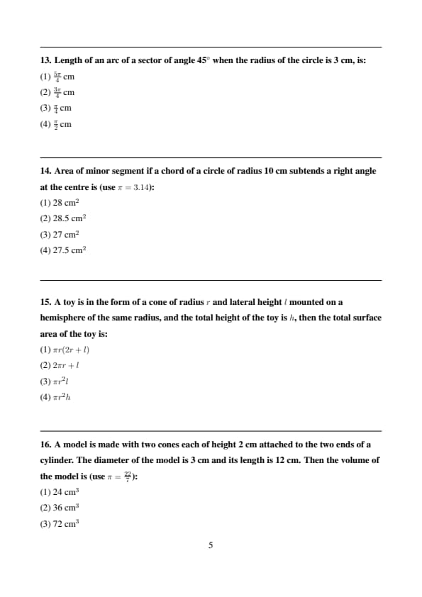 - (1) \( \frac{5\pi}{4} \, cm \)