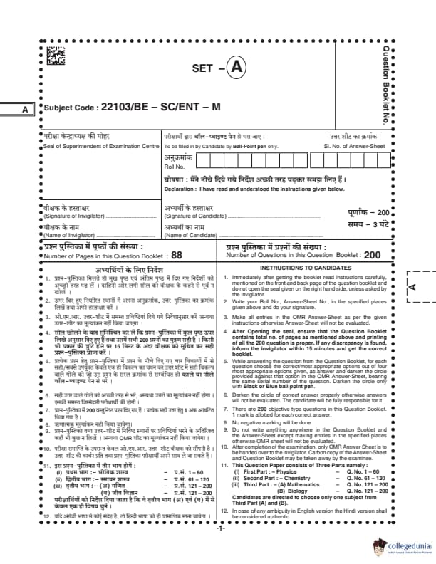 CG PAT 2021 Science Question paper with answer key pdf conducted on September 26, 2021 for Set A is available for download. The exam was successfully organized by Chhattisgarh Professional Examination Board. The question paper comprised a total of 200 questions divided among three sections.