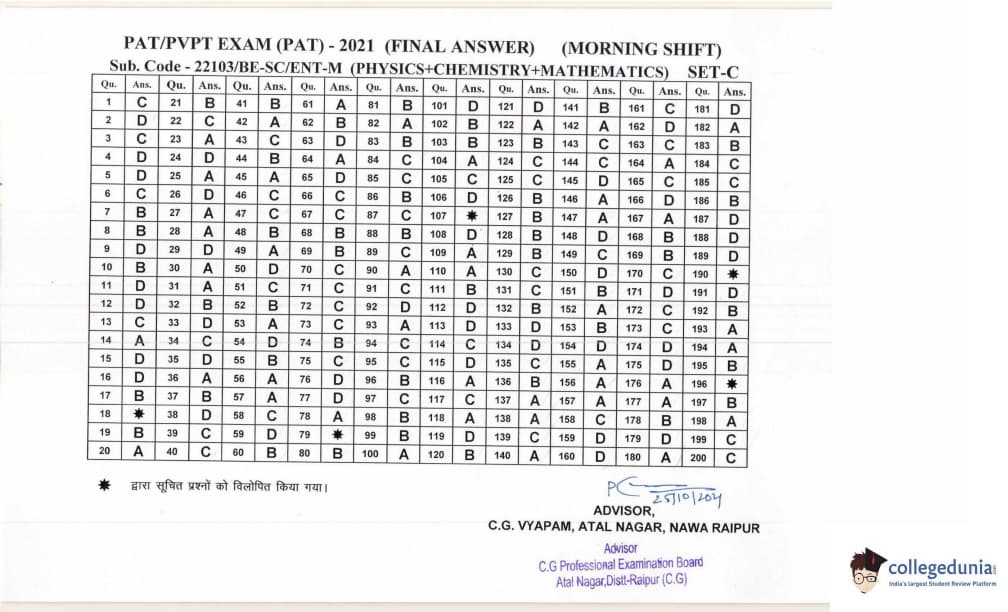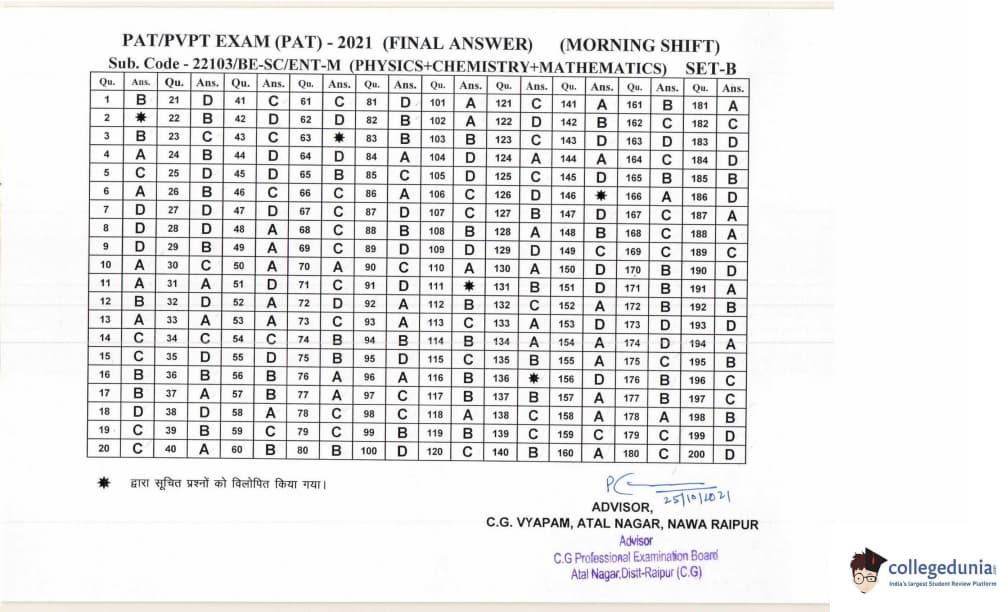 | CG PAT 2021 Science Question Paper PDF | CG PAT 2021 Science Answer Key PDF |