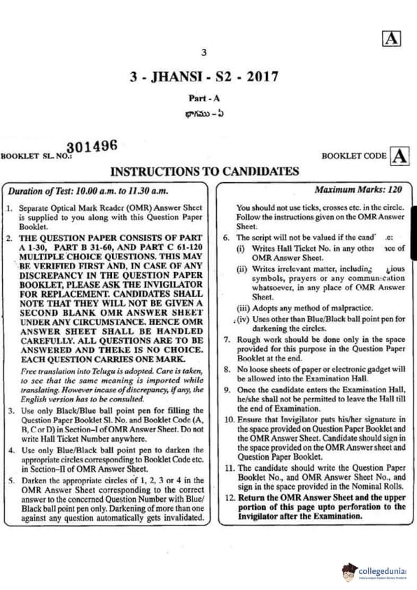 TS PGLCET 2017 LLM Question paper with answer key pdf conducted on May 27, 2017 is available for download. The exam was successfully organized by Osmania University, Hyderabad. The question paper comprised a total of 120 questions.
