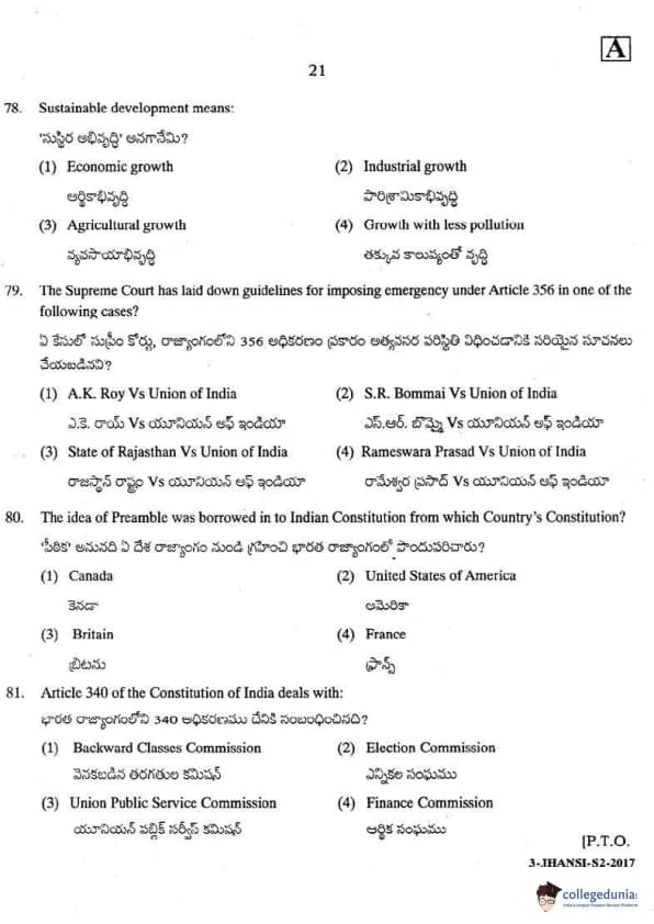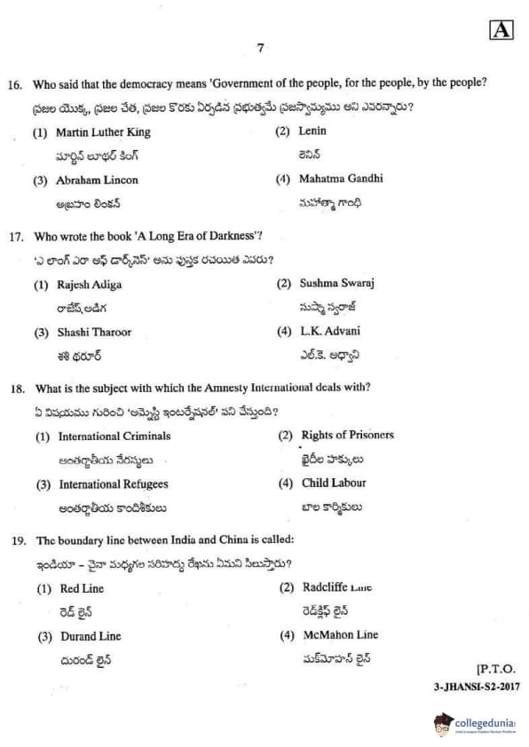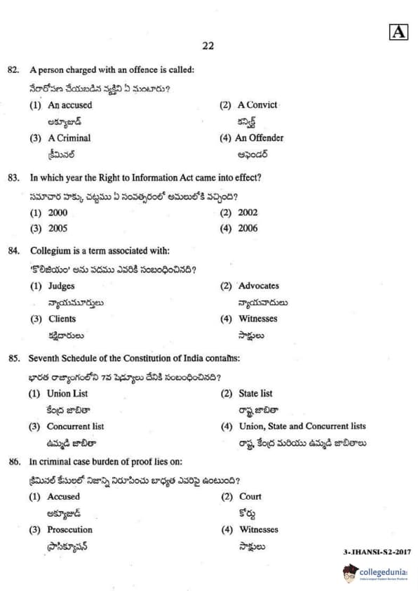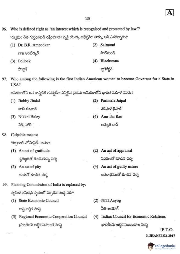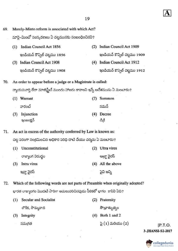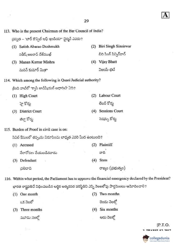 TS PGLCET 2017 LLM Question Paper with Answer Key PDF
