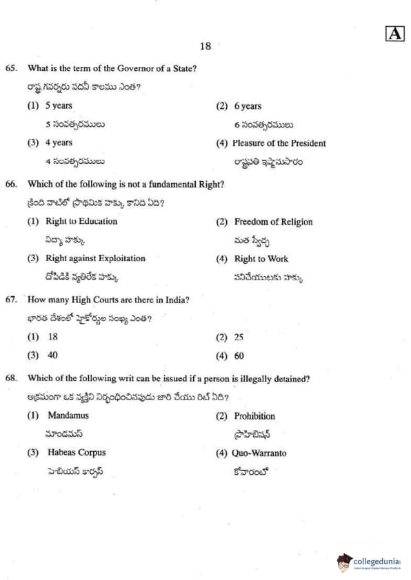 | TS PGLCET 2017 LLM Question Paper PDF | TS PGLCET 2017 LLM Answer Key PDF |
