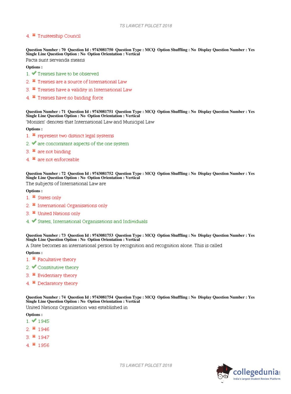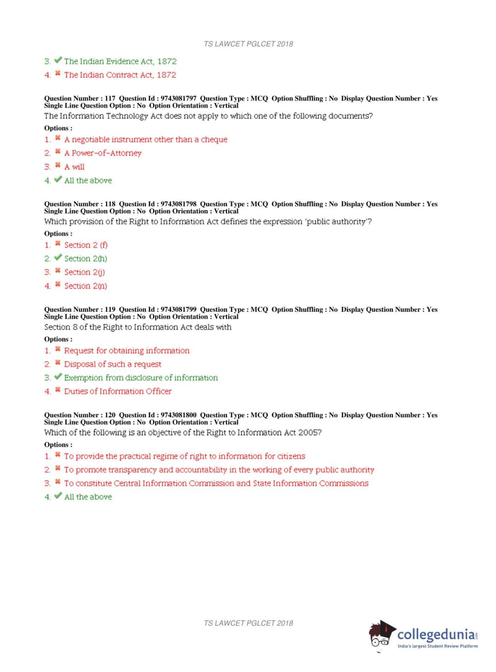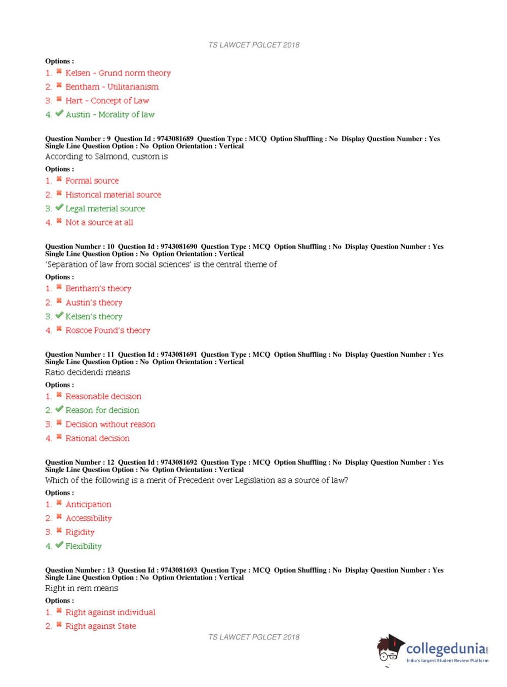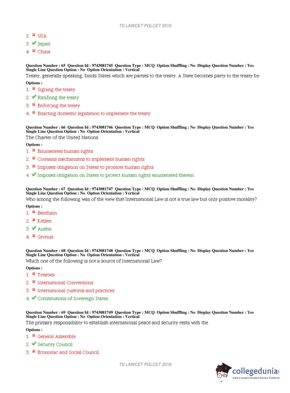 TS PGLCET 2018 LLM Question Paper with Answer Key PDFs Shift 1