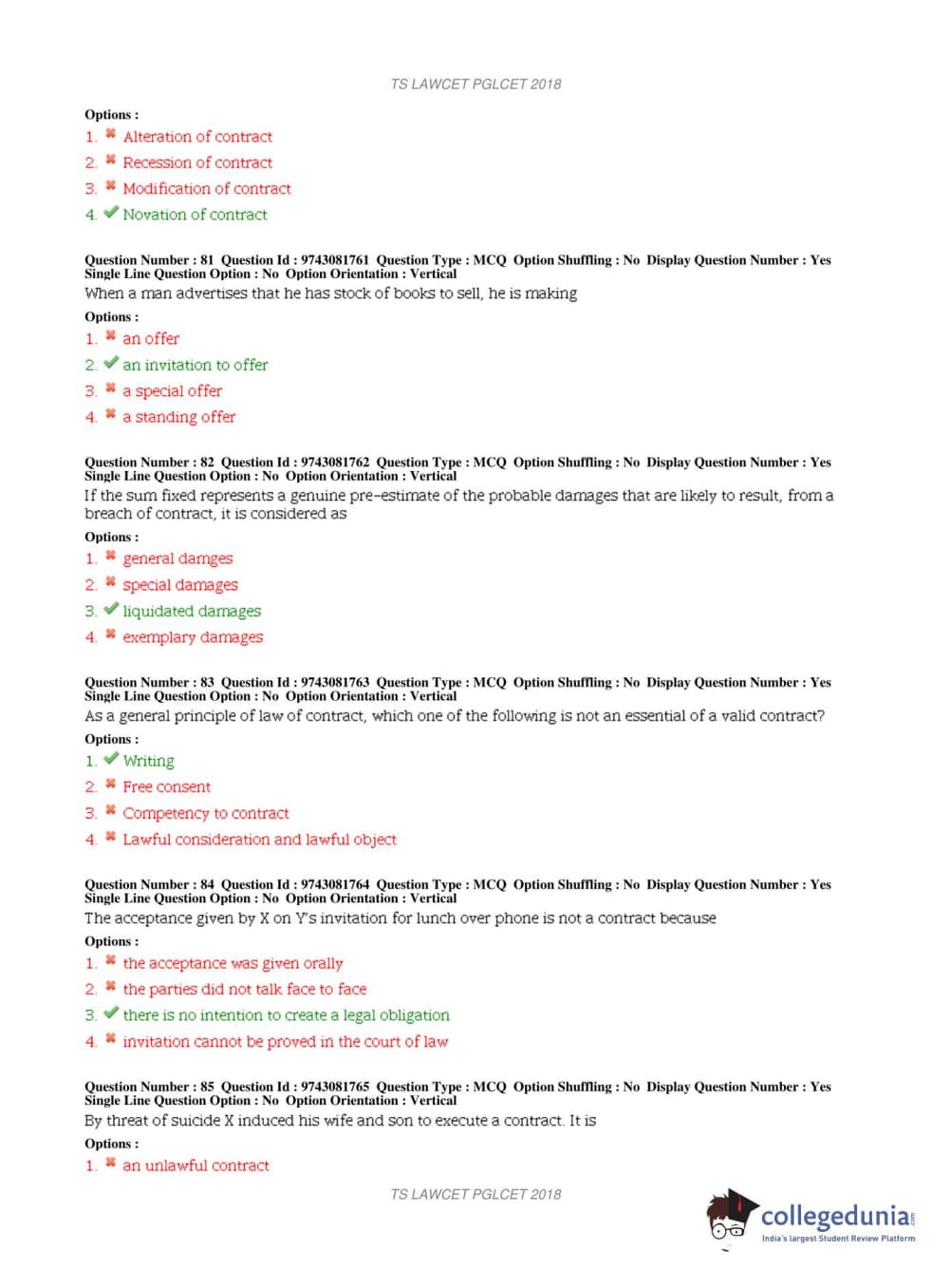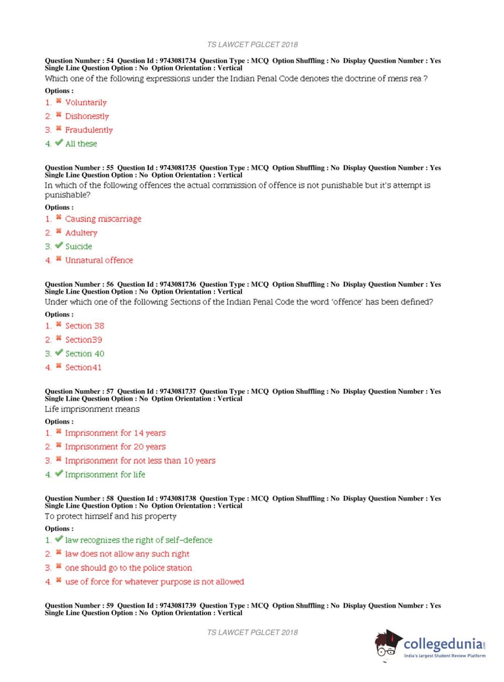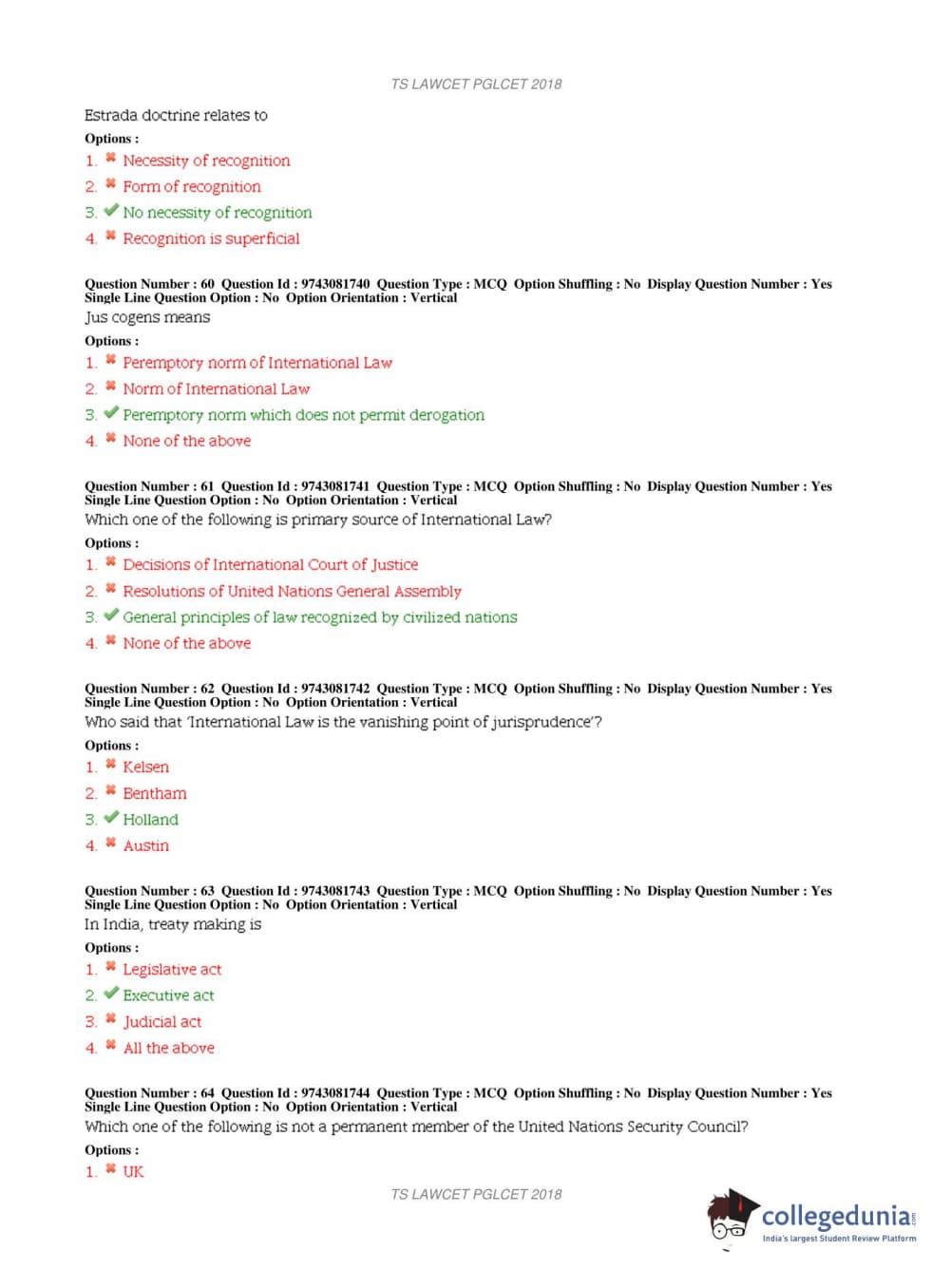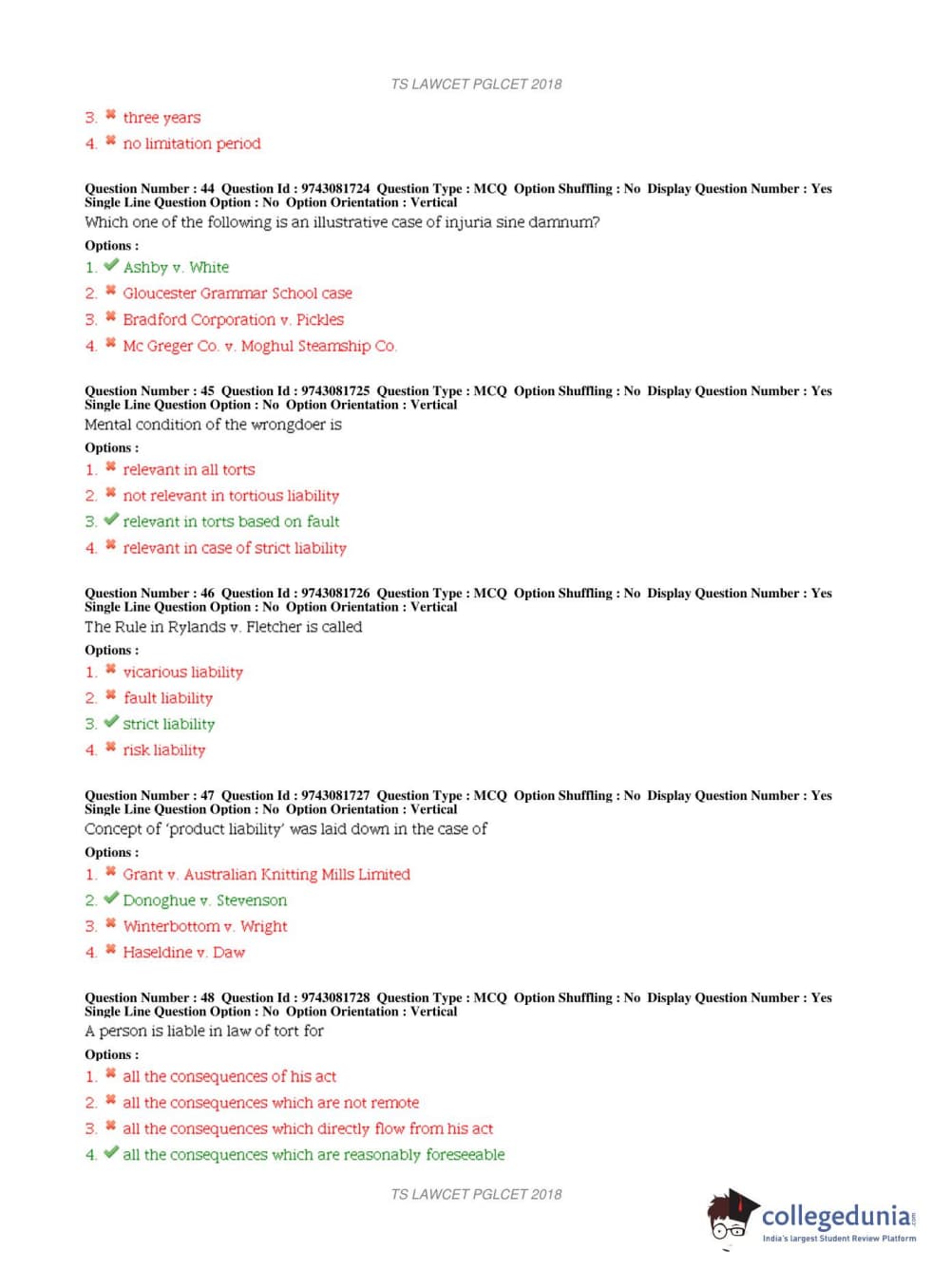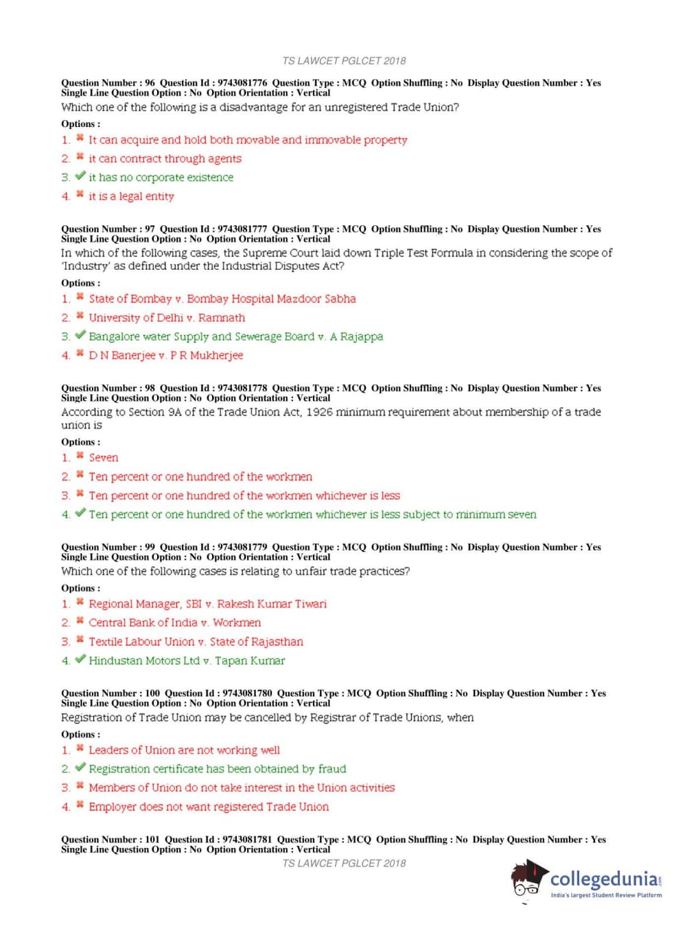 TS PGLCET 2018 LLM Question Paper with Answer Key PDFs Shift 1