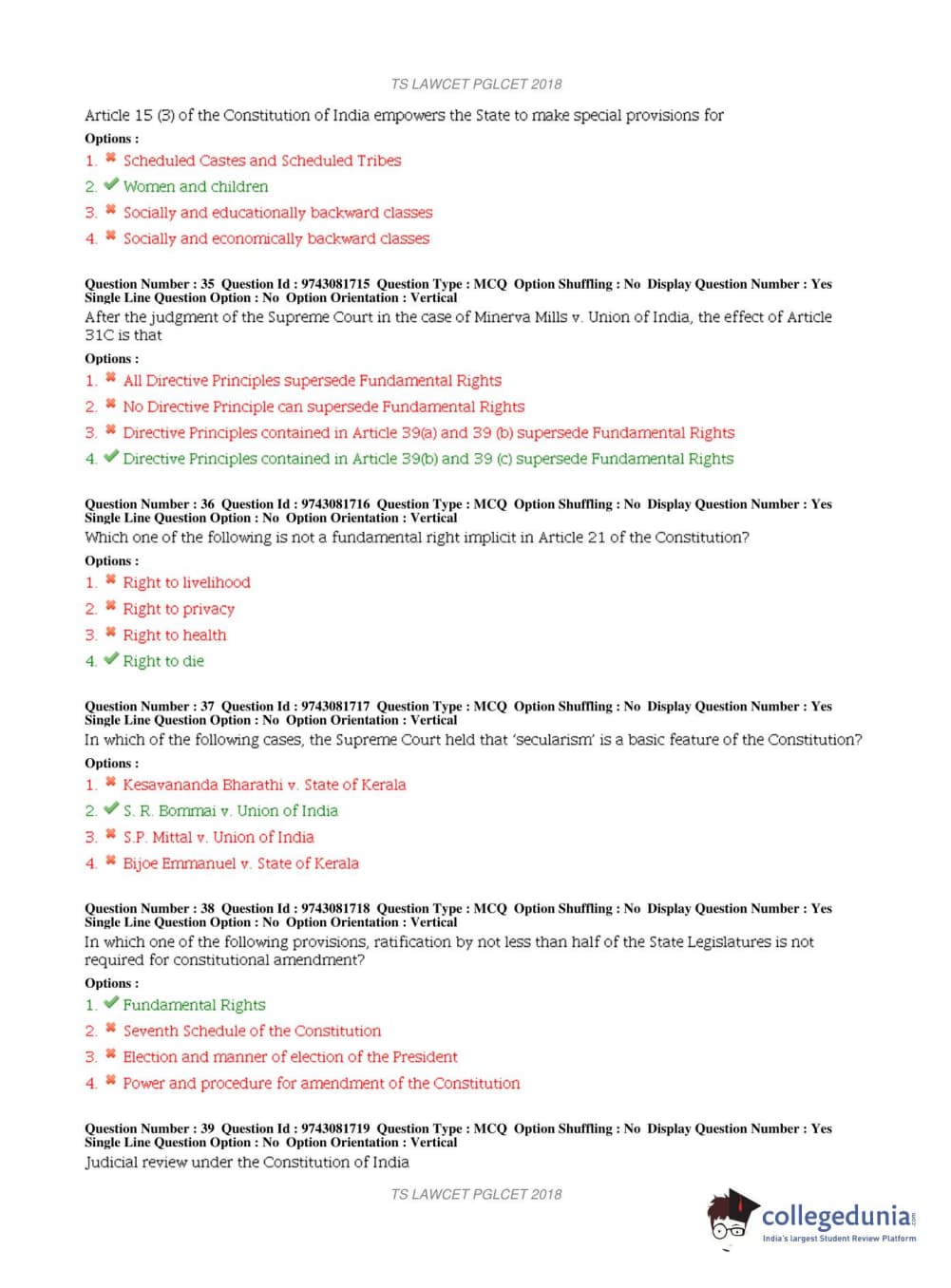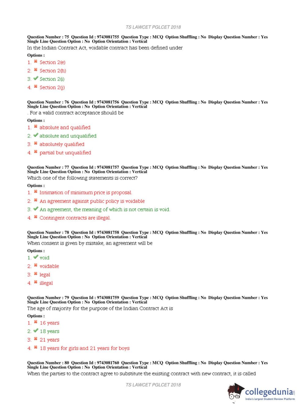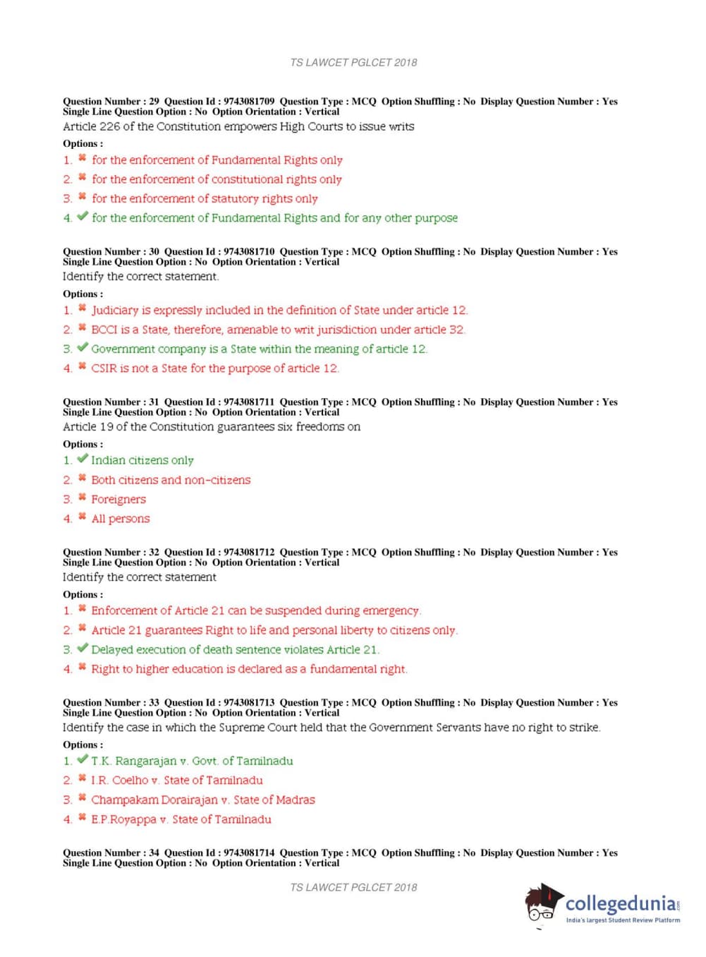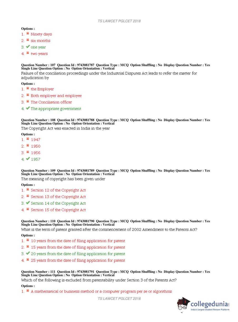 TS PGLCET 2018 LLM Question Paper with Answer Key PDFs Shift 1