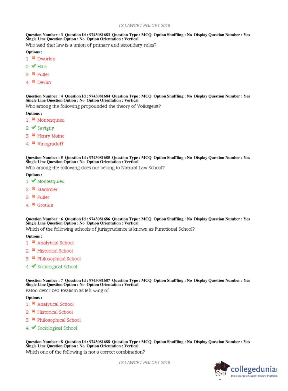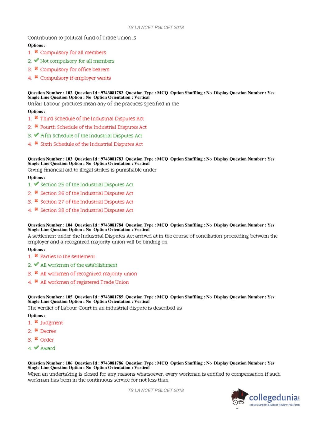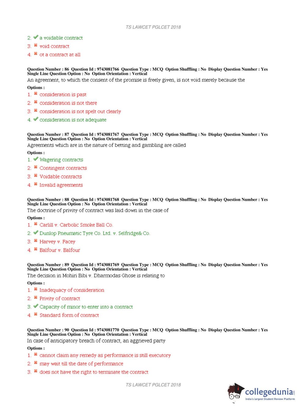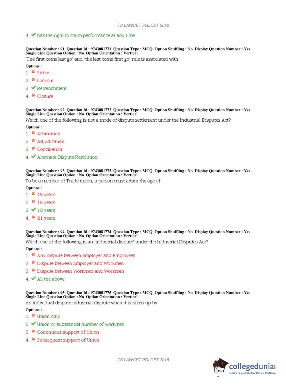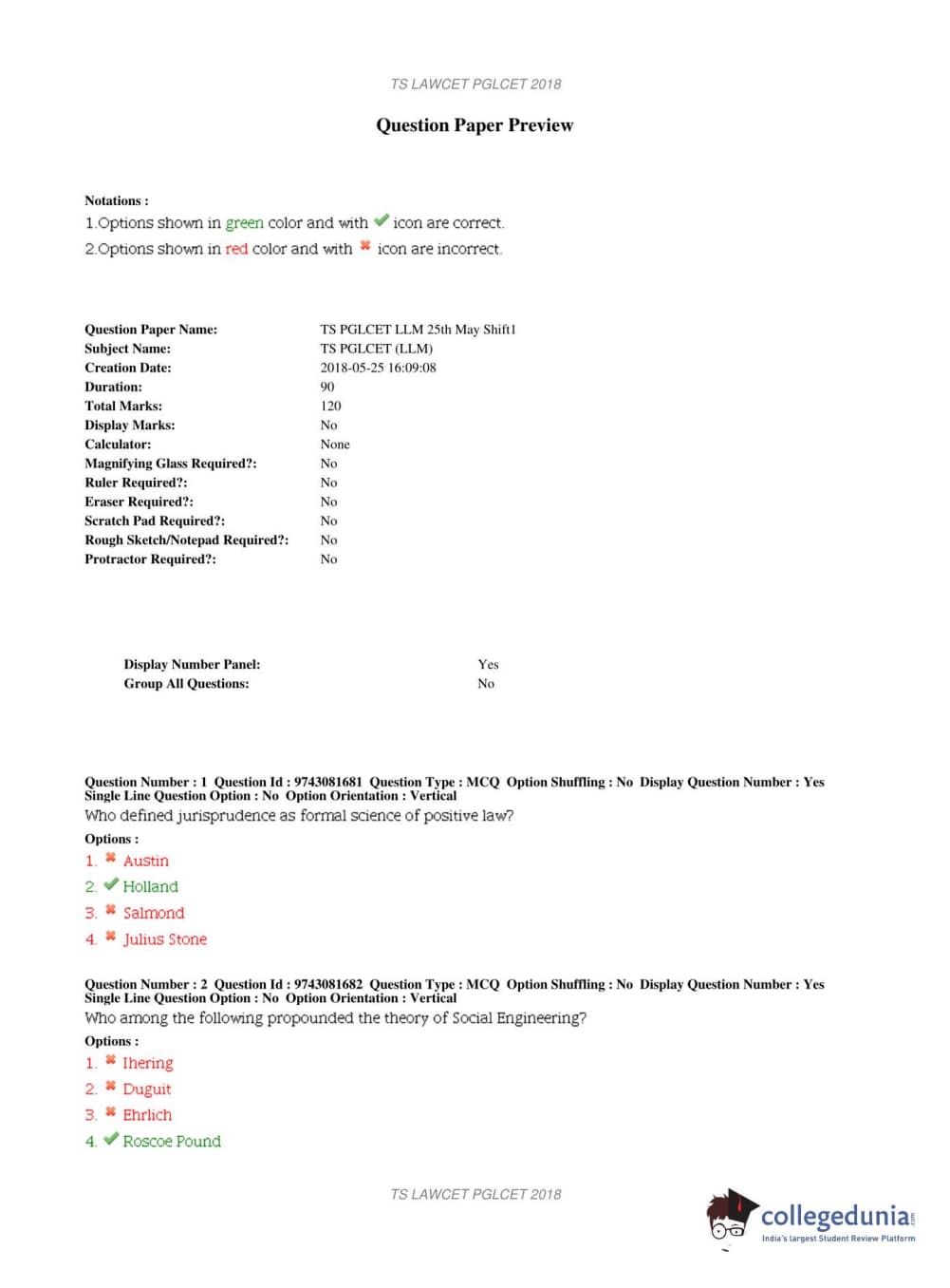 TS PGLCET 2018 LLM Question Paper with Answer Key PDFs Shift 1