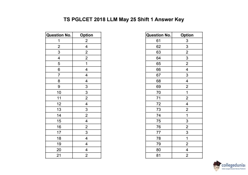 | TS PGLCET 2018 LLM Question Paper PDF | TS PGLCET 2018 LLM Answer Key PDF |