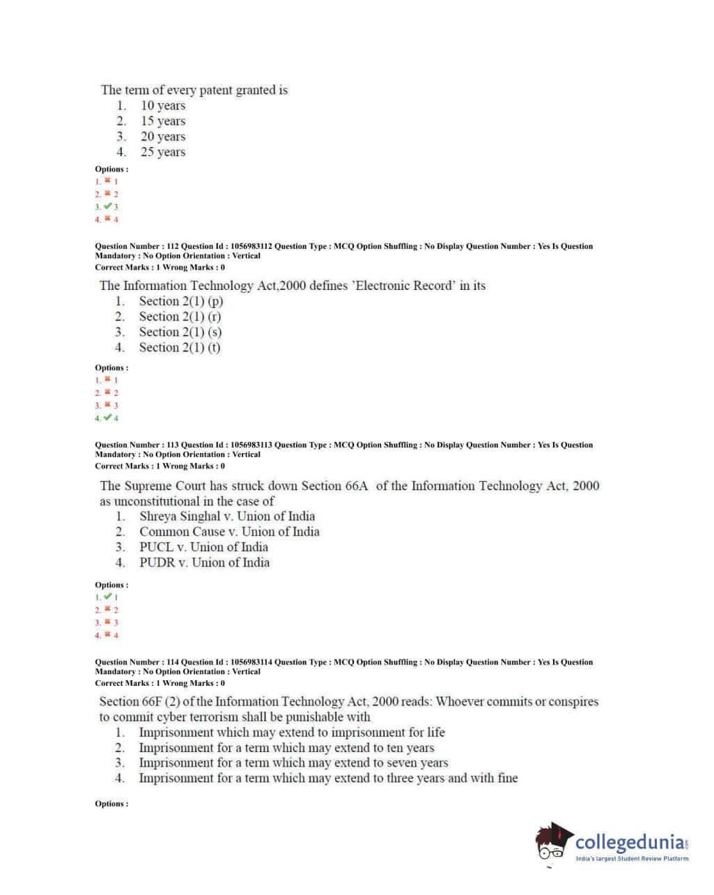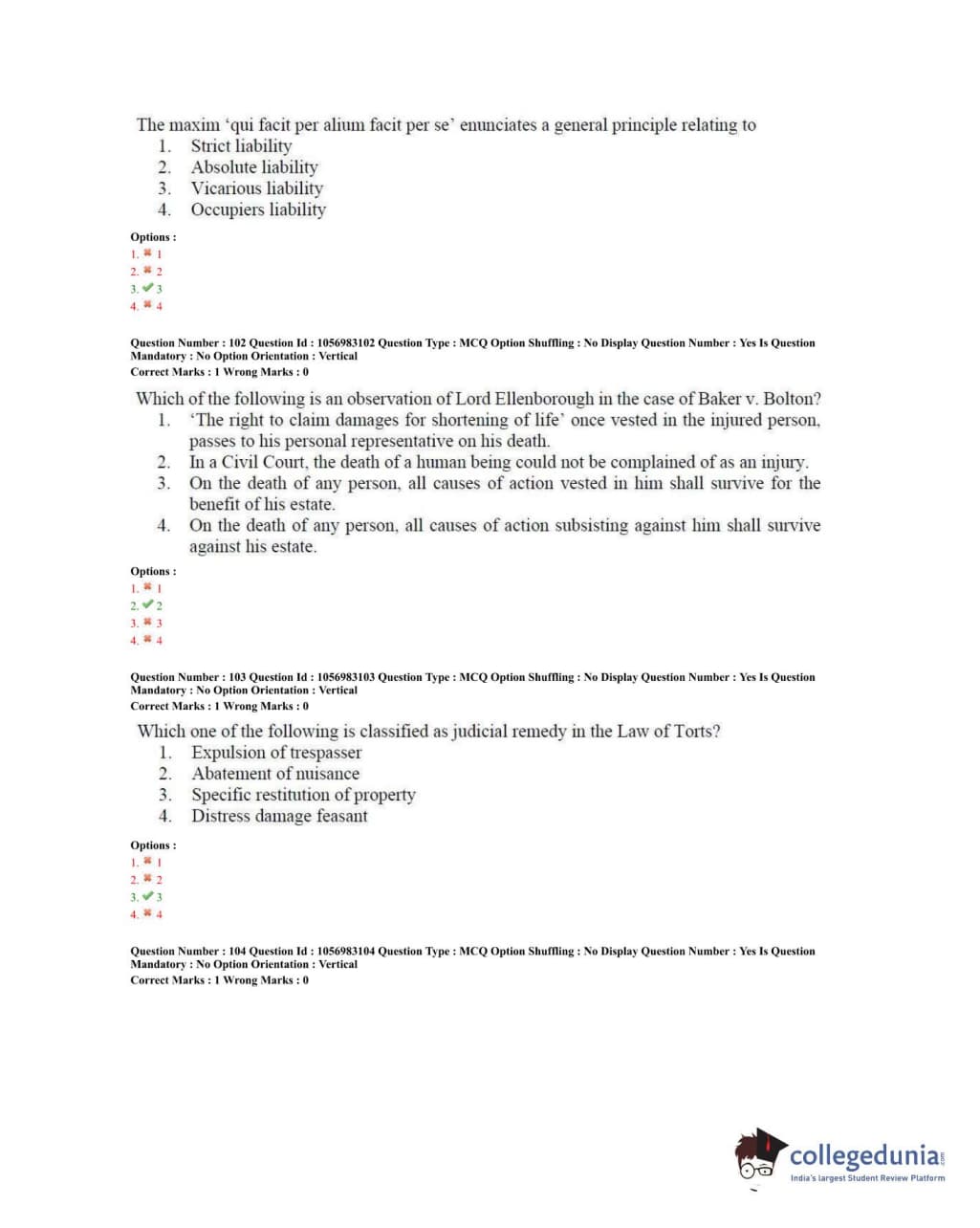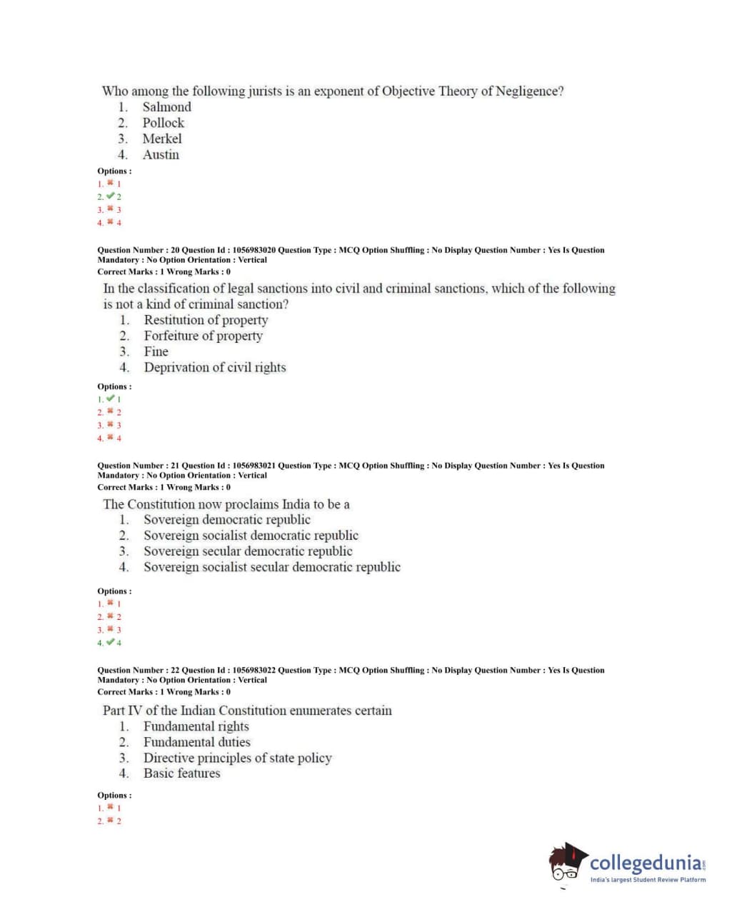 TS PGLCET 2020 LLM Question Paper with Answer Key PDFs Shift 2