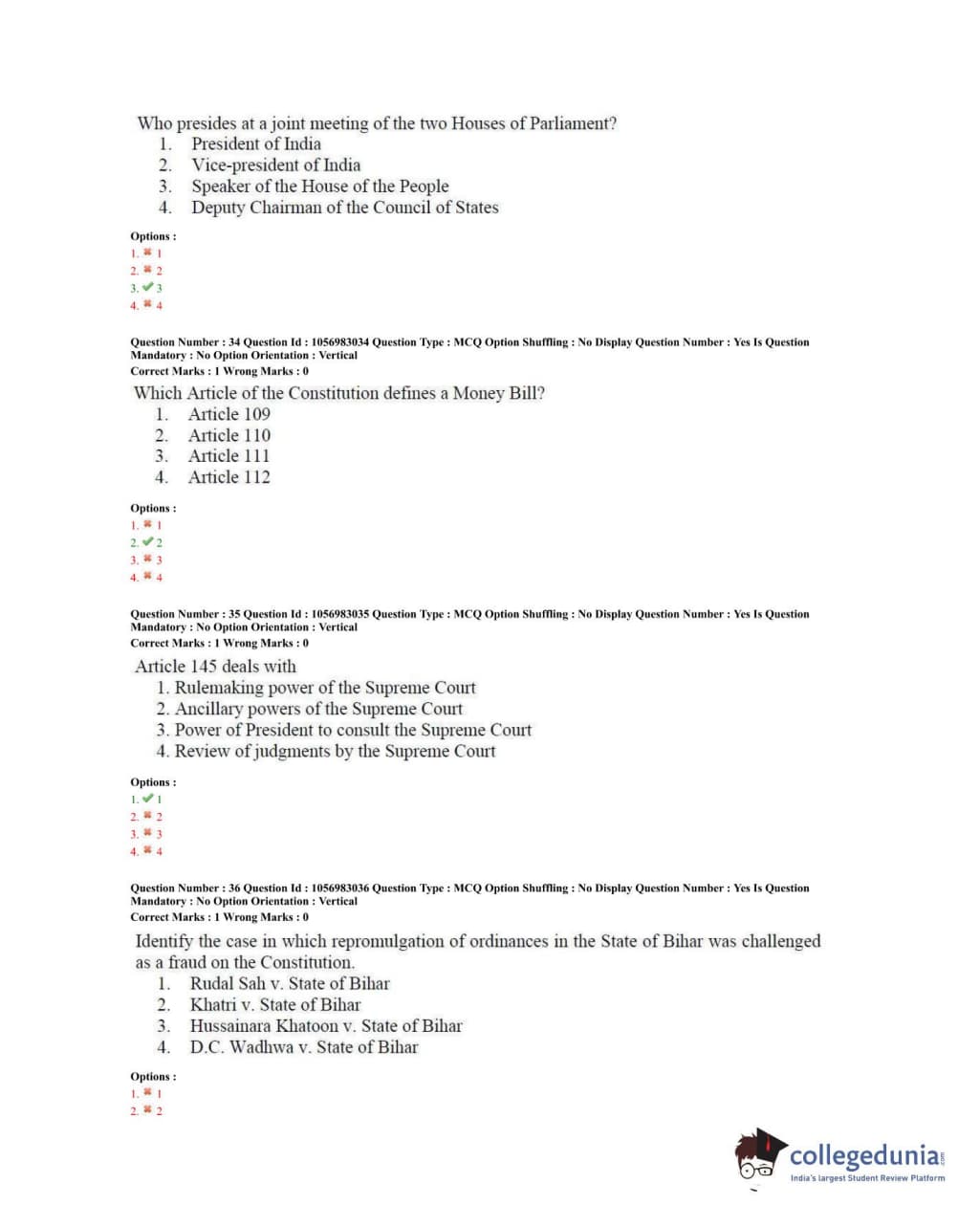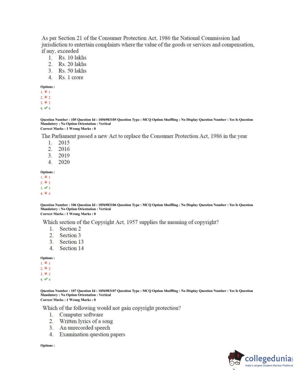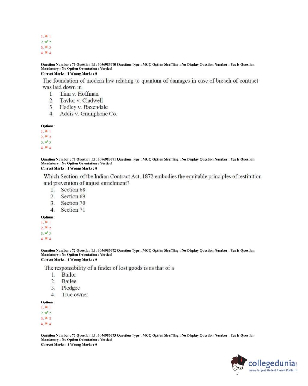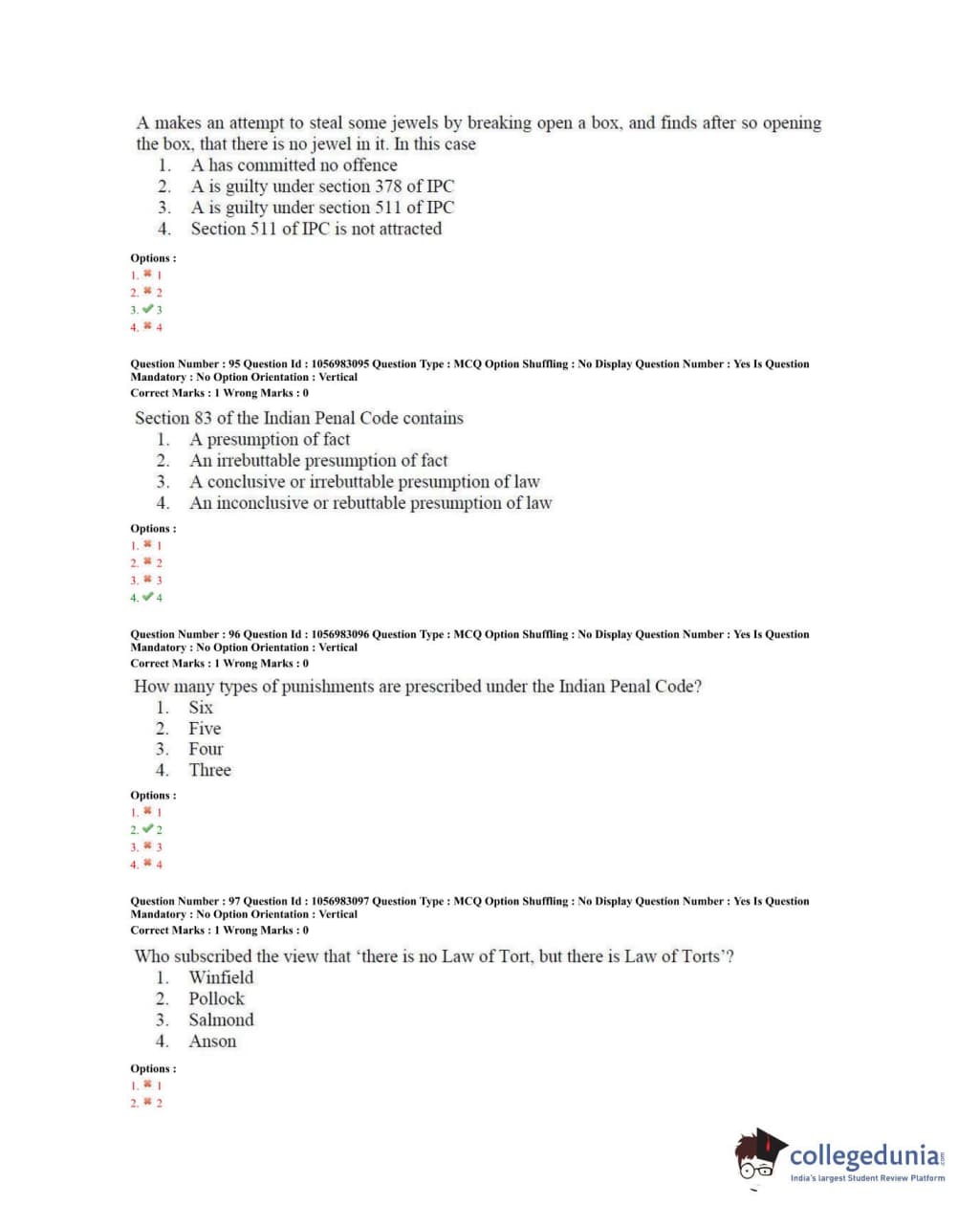 TS PGLCET 2020 LLM Question Paper with Answer Key PDFs Shift 2