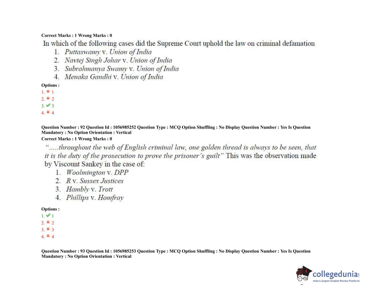 TS PGLCET 2021 LLM Question Paper with Answer Key PDF Shift 1