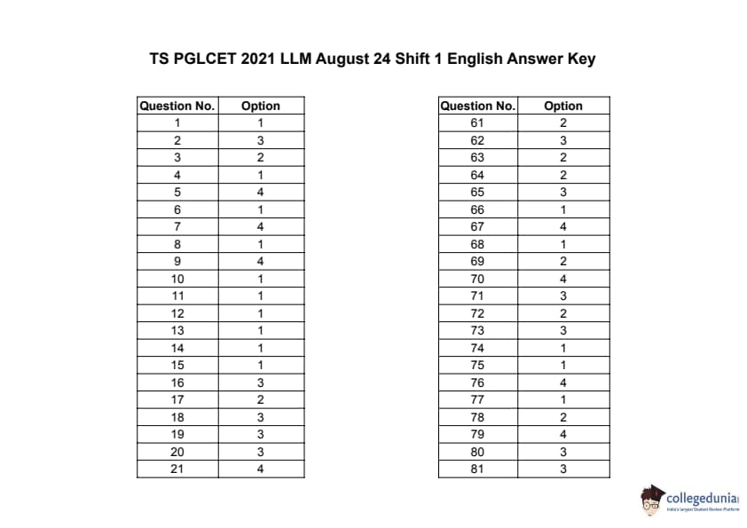 | TS PGLCET 2021 LLM Question Paper PDF | TS PGLCET 2021 LLM Answer Key PDF |