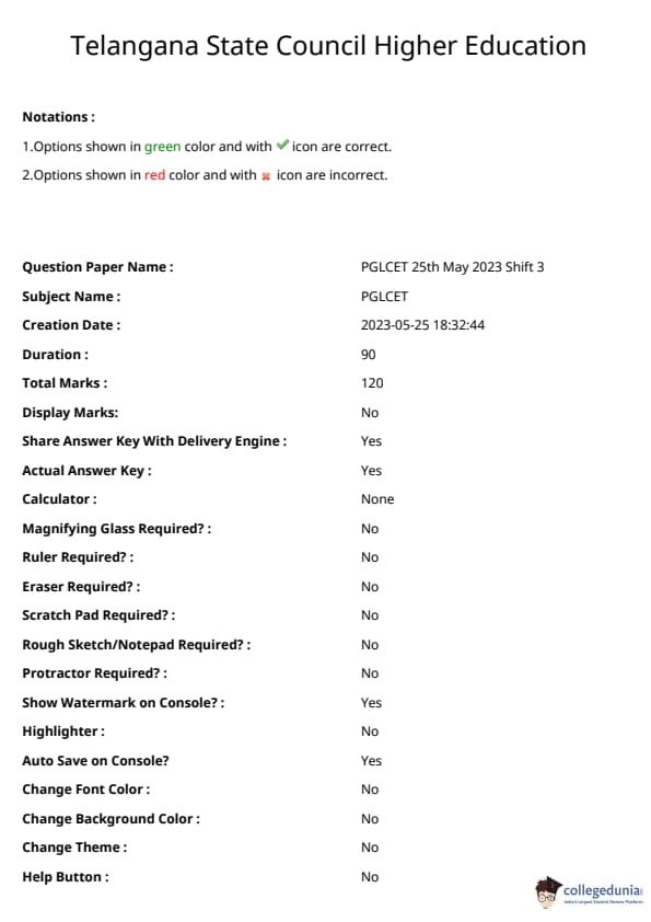 | TS PGLCET 2023 LLM Question Paper PDF | TS PGLCET 2023 LLM Answer Key PDF |