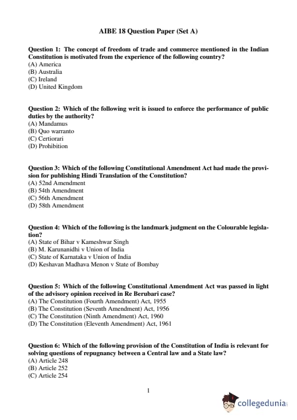 AIBE 18 Question Paper with Answer Key and Solution PDF (Set A)