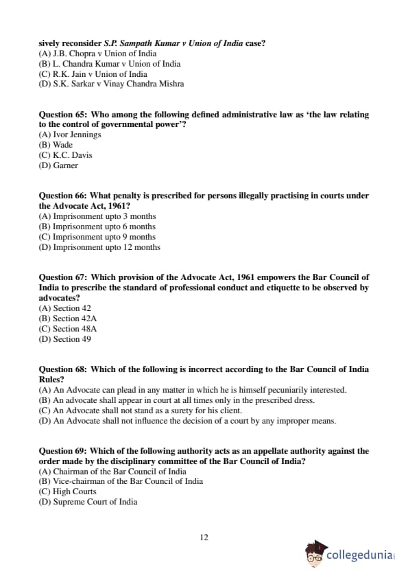 AIBE 18 Question Paper (Set A) with Answer key and Solution PDF is available to download here. AIBE 18 was successfully conducted by Bar Council of India (BCI) on December 10, 2023. The question paper comprised a total of 100 questions.