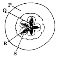 Identify the parts P, Q, R, S in the figure given below and select the option in the correct order.