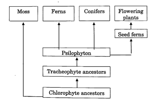 Study the given chart showing evolution of plants and answer the following questions.