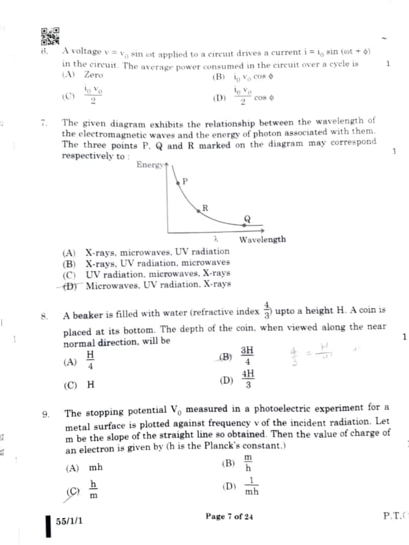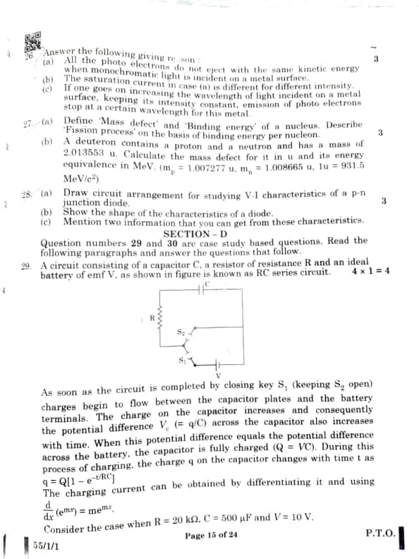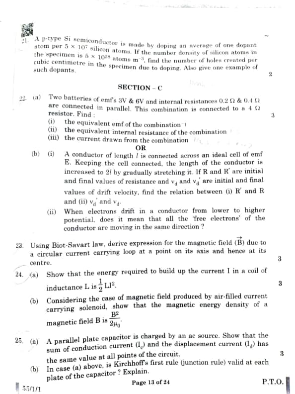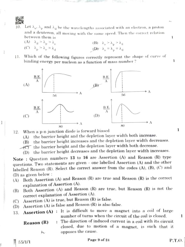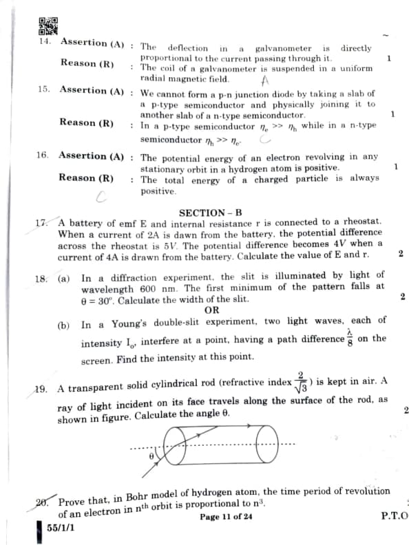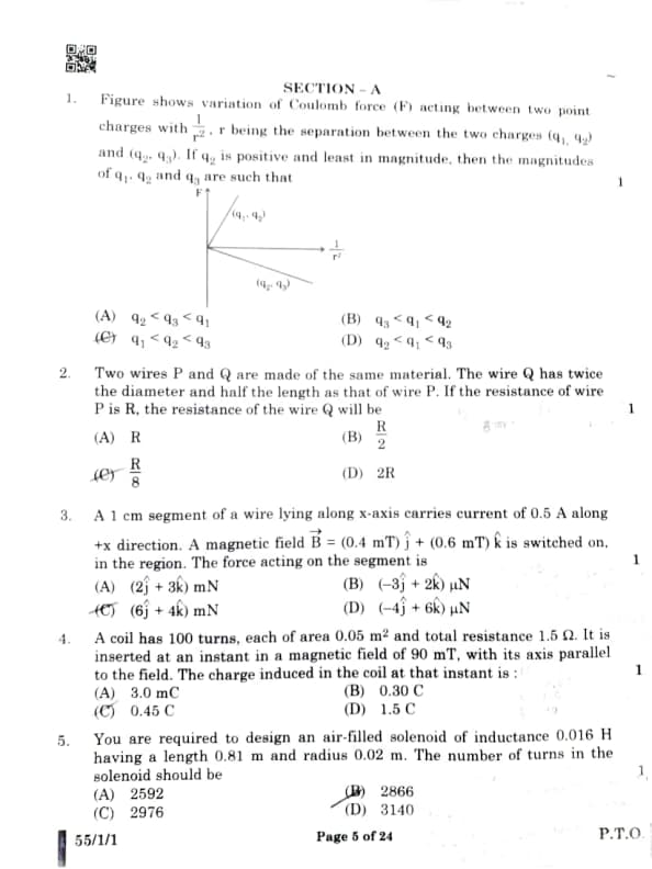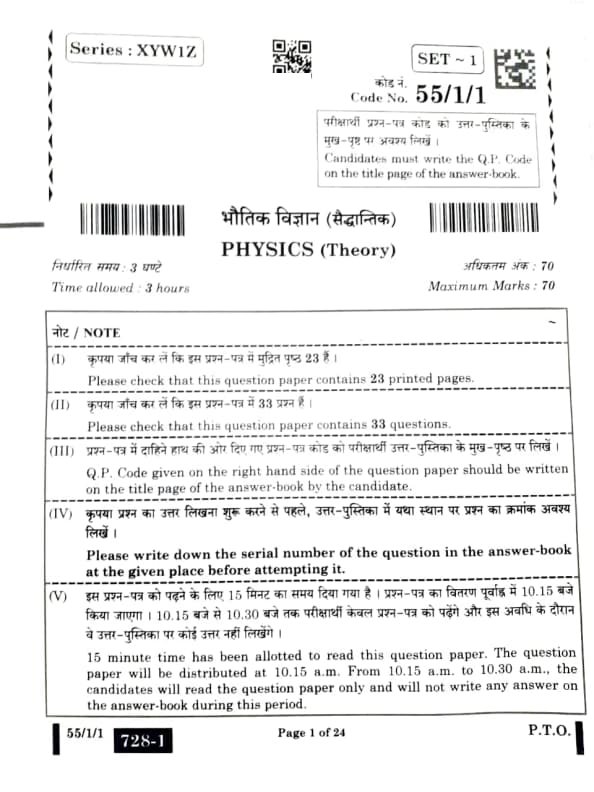 CBSE Board Class 12 Physics (55/1/1) Question Paper 2025 with Solutions