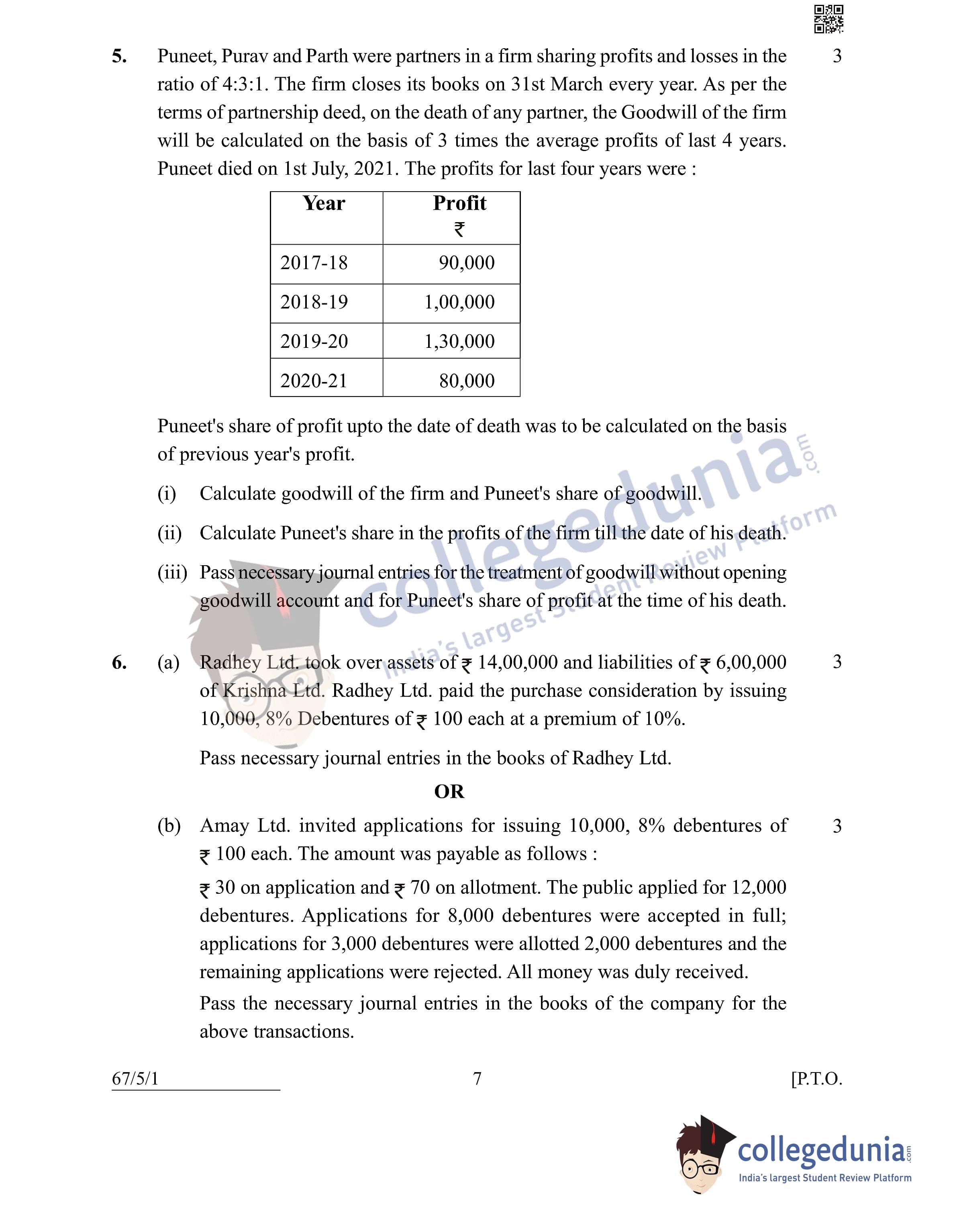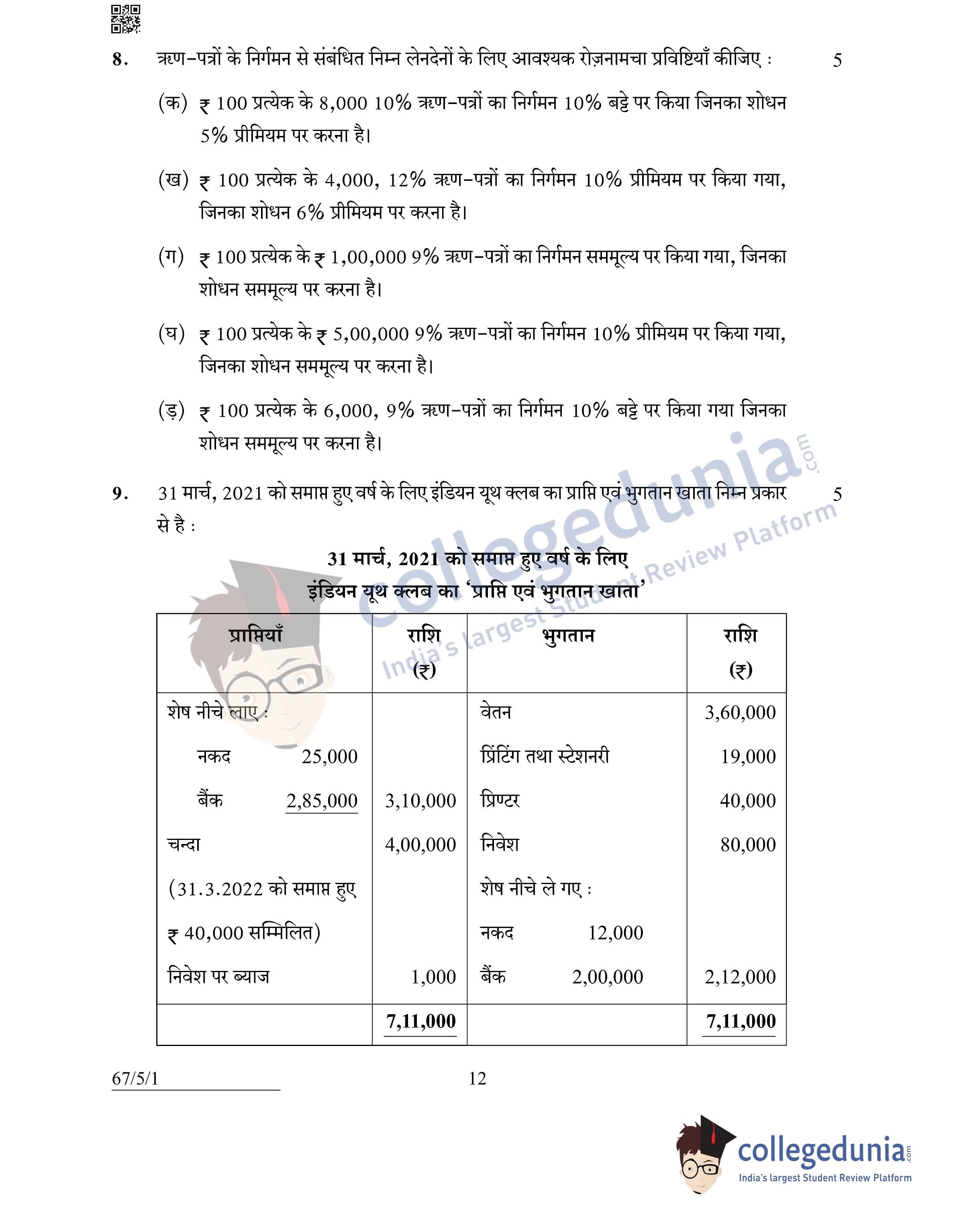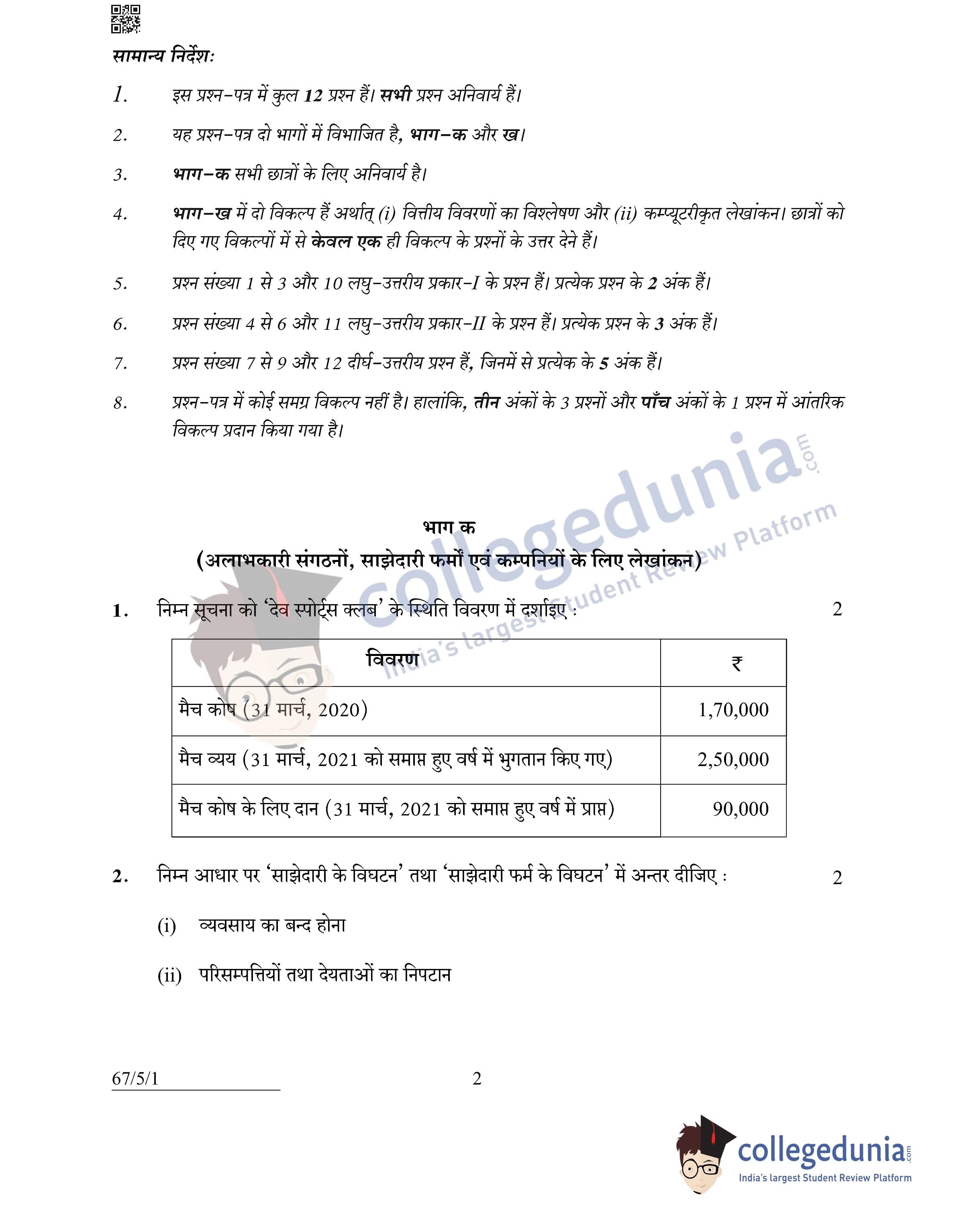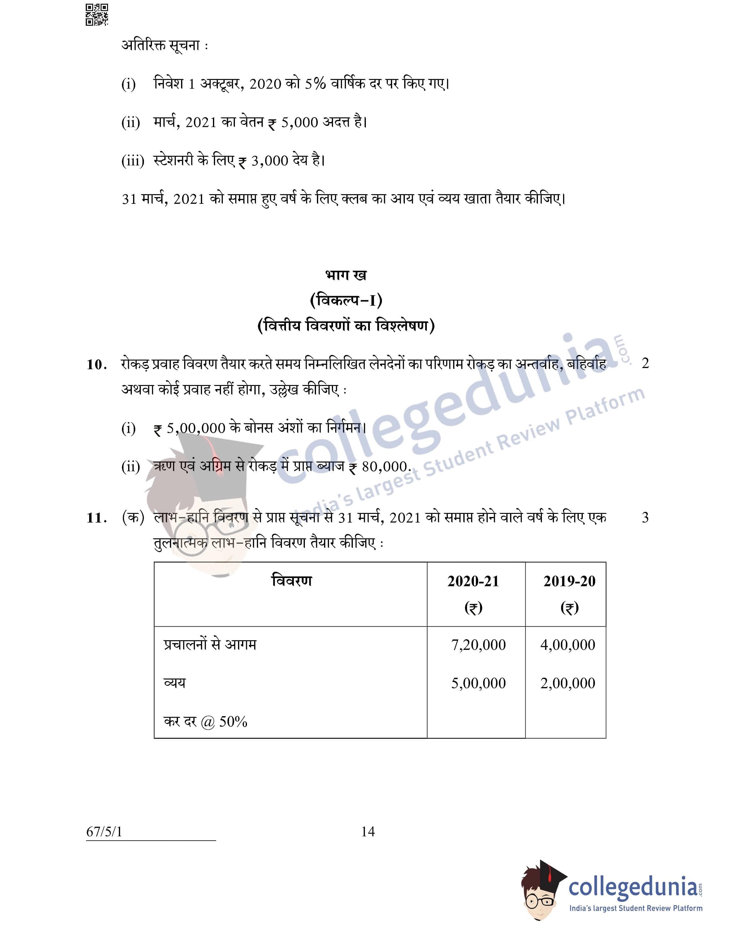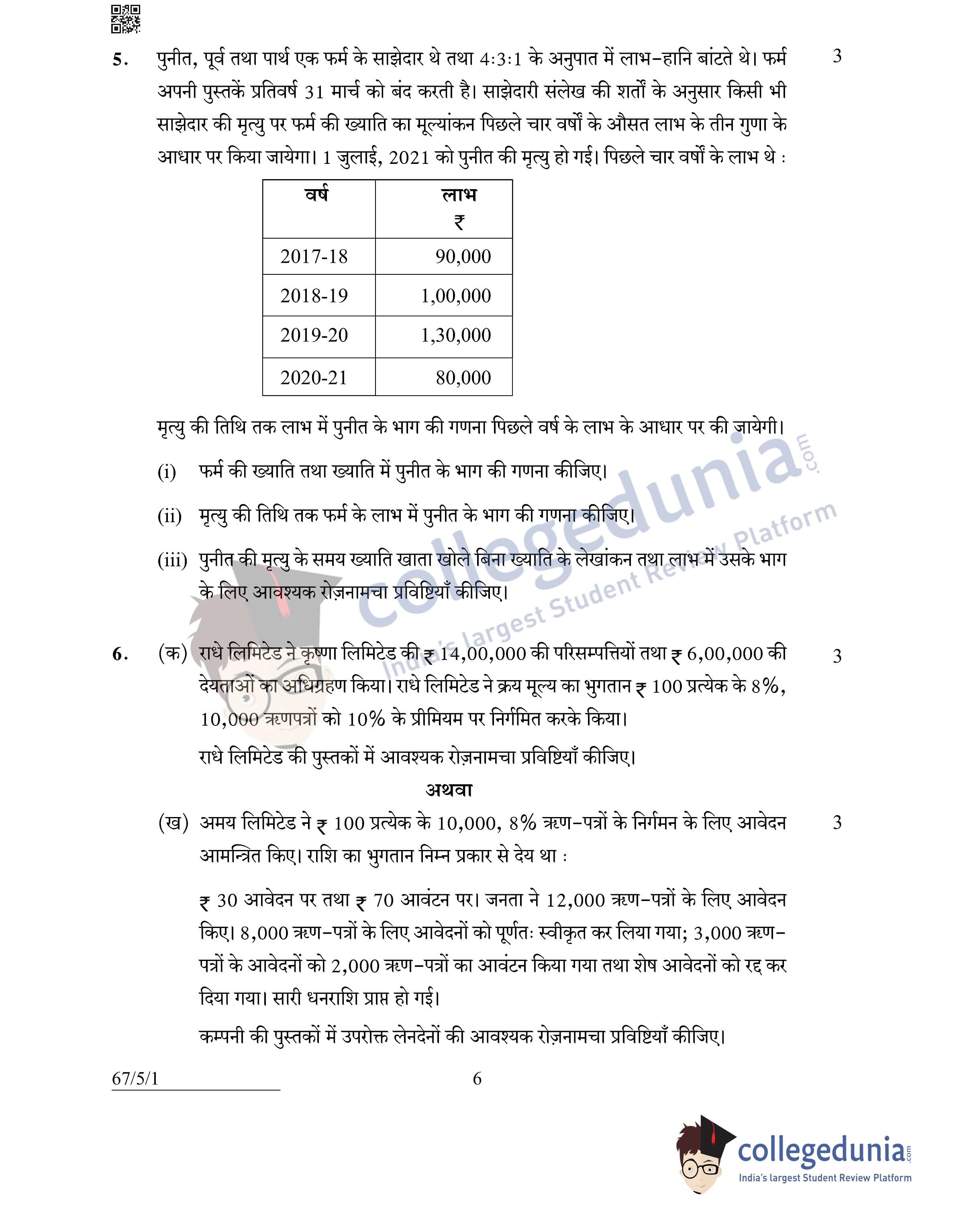 CBSE Class 12 Accountancy Question Paper 2022 with Answer Key (May 23, Set 1 - 67/5/1- Morning Session)