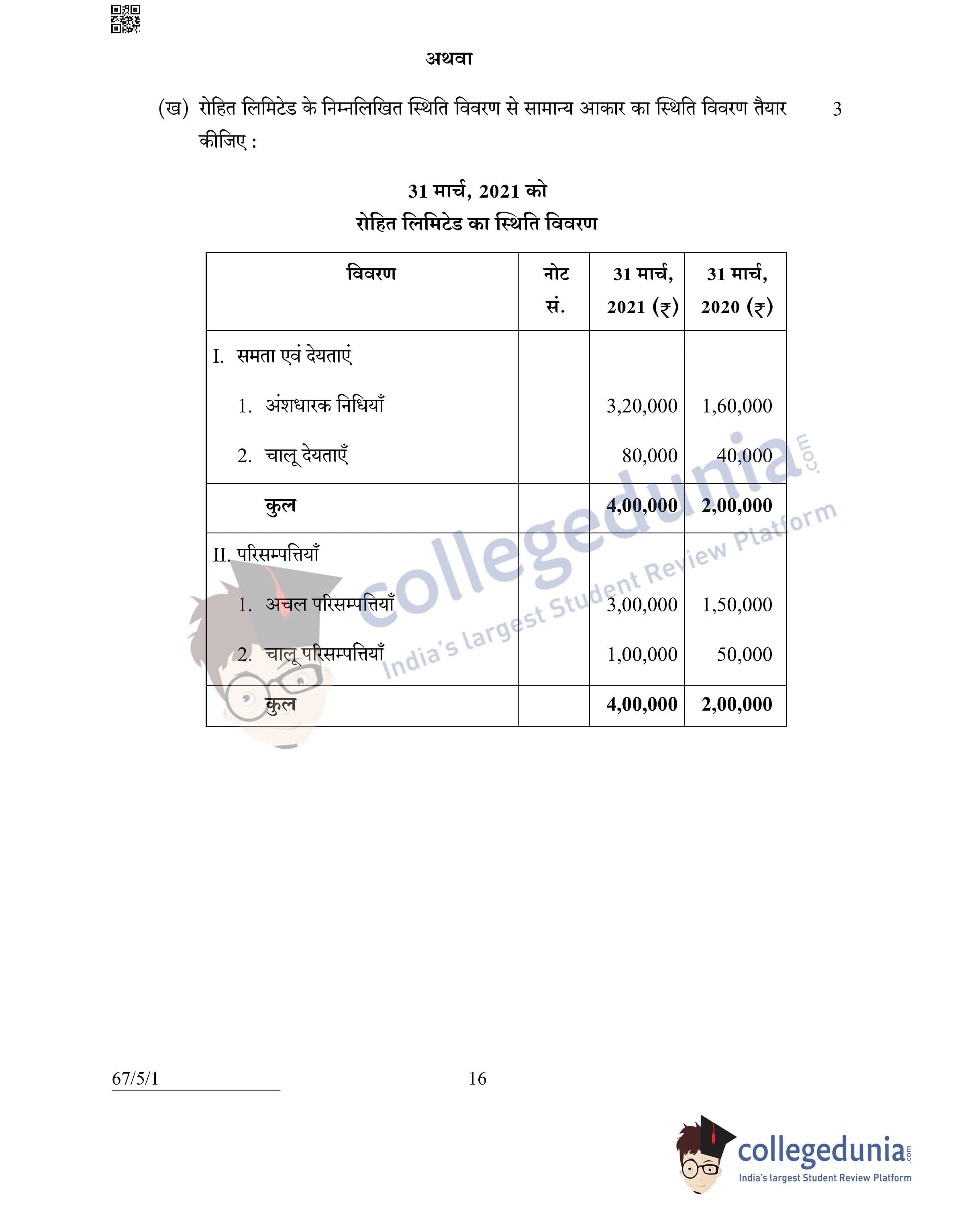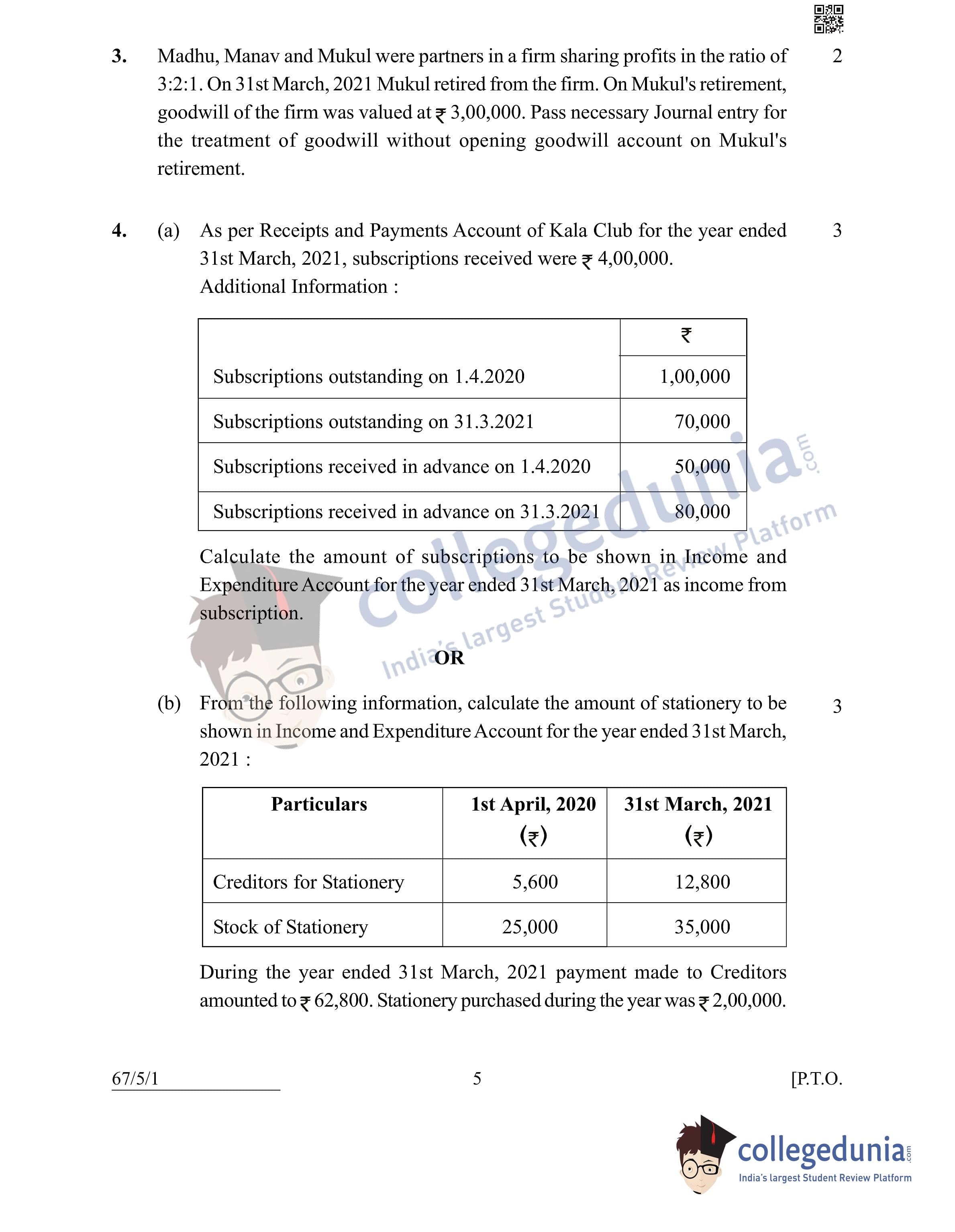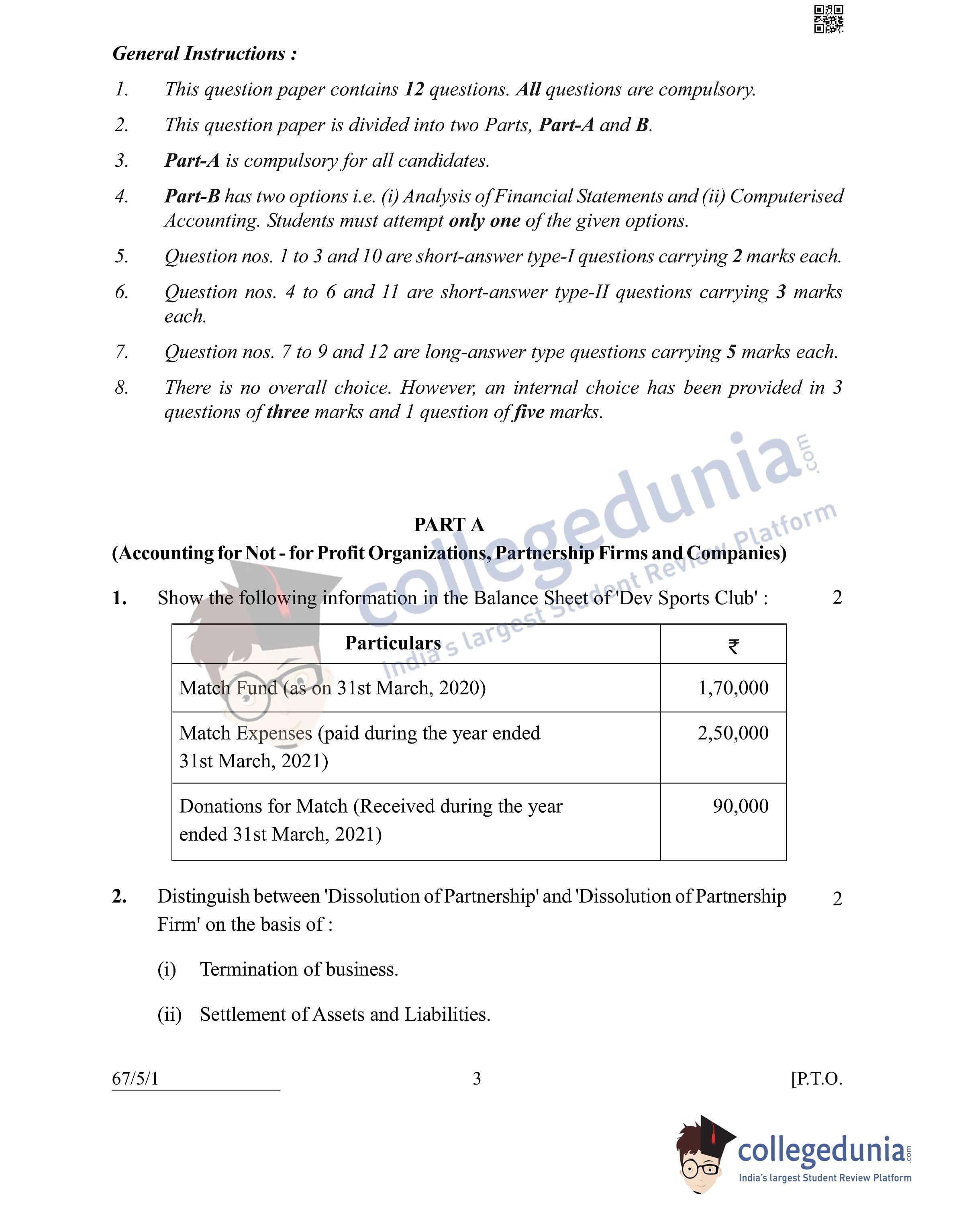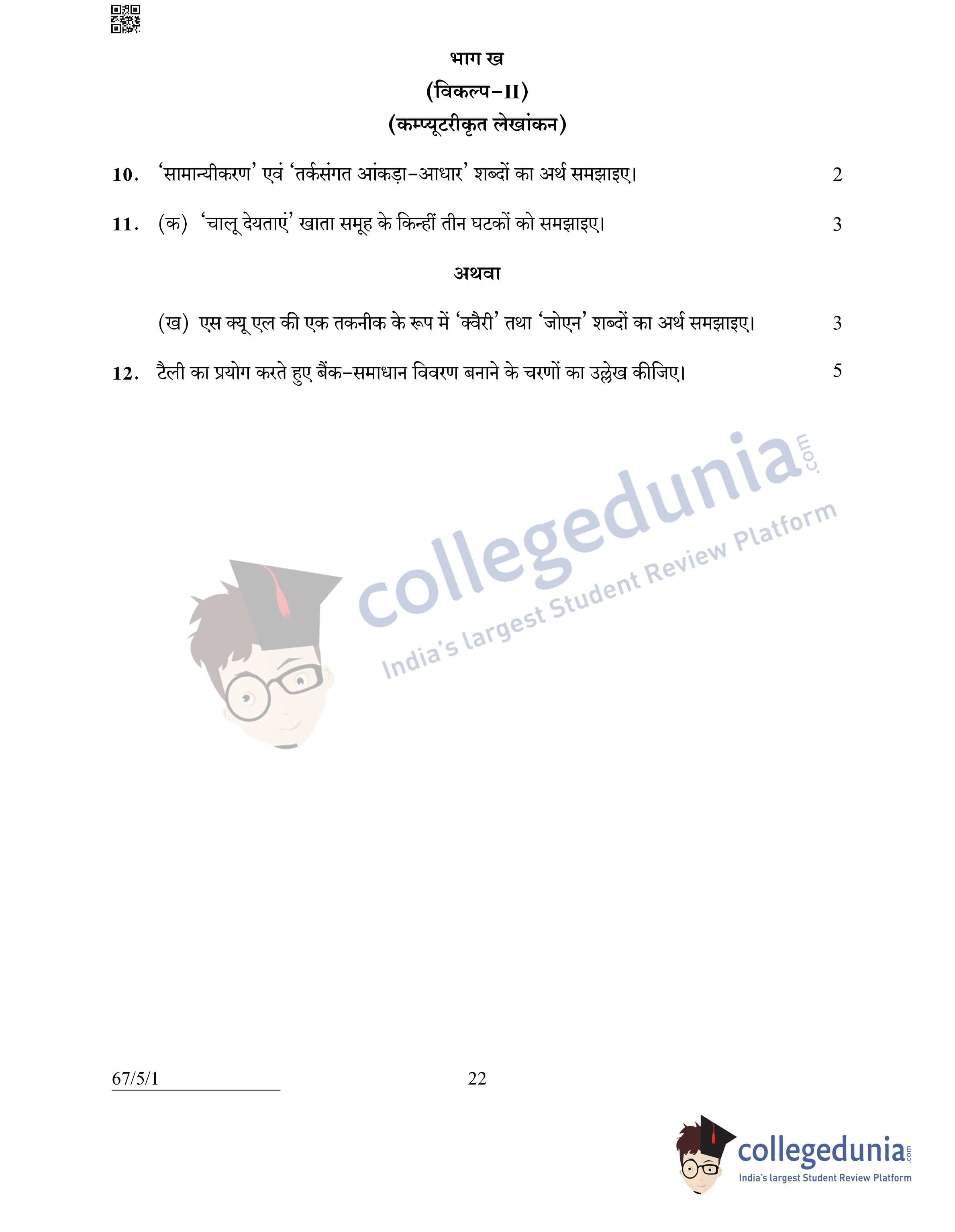 CBSE Class 12 Accountancy Question Paper 2022 with Answer Key (May 23, Set 1 - 67/5/1- Morning Session)