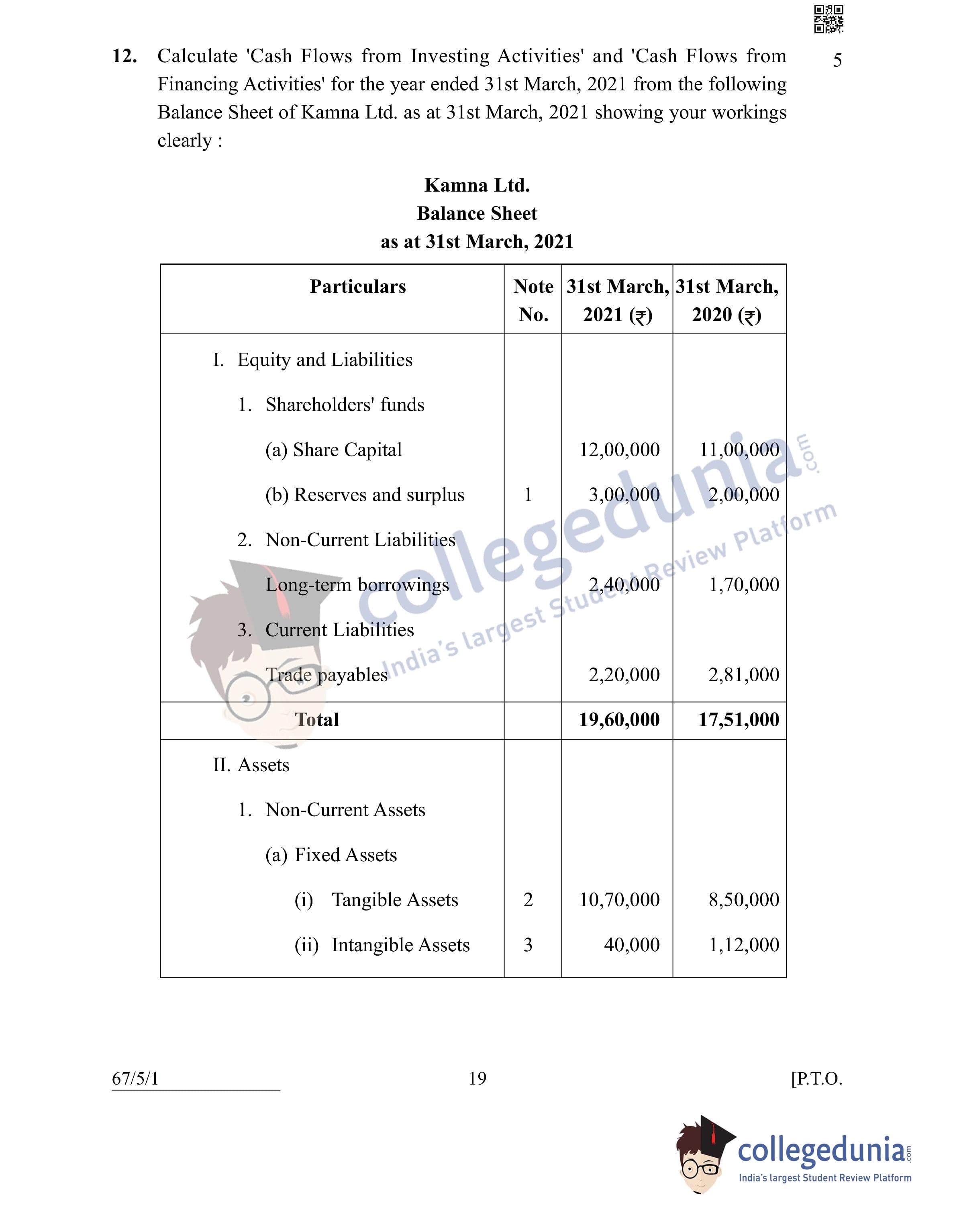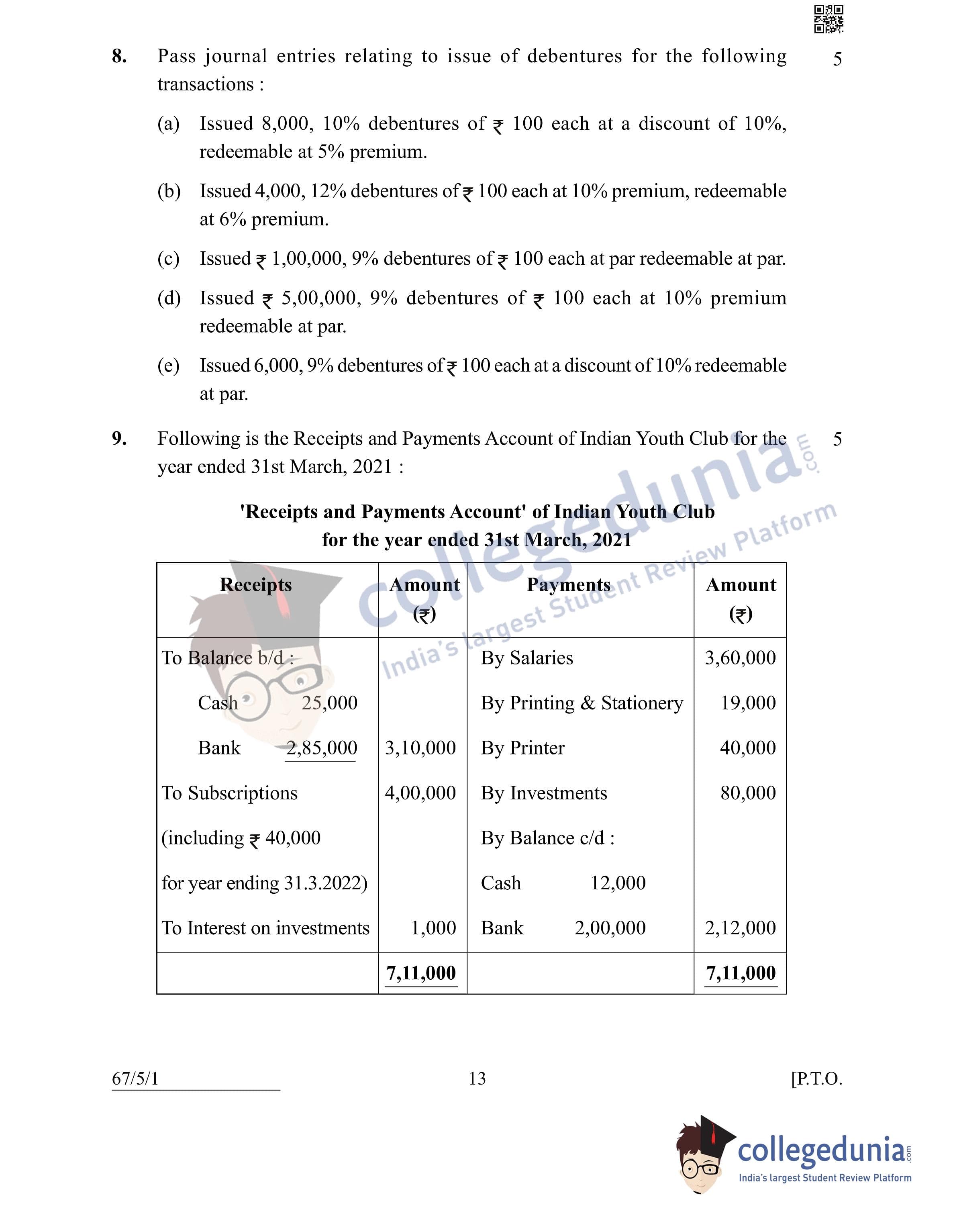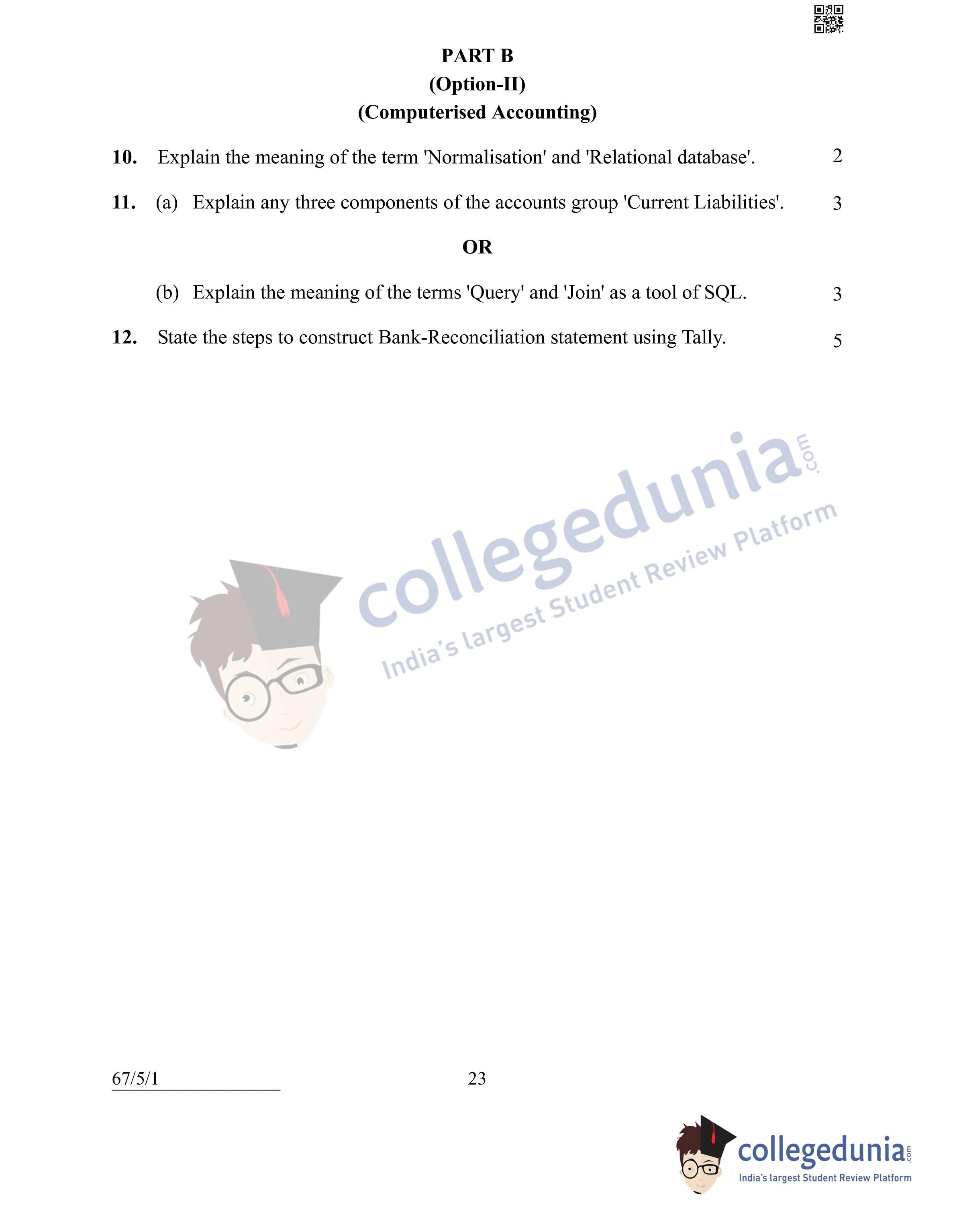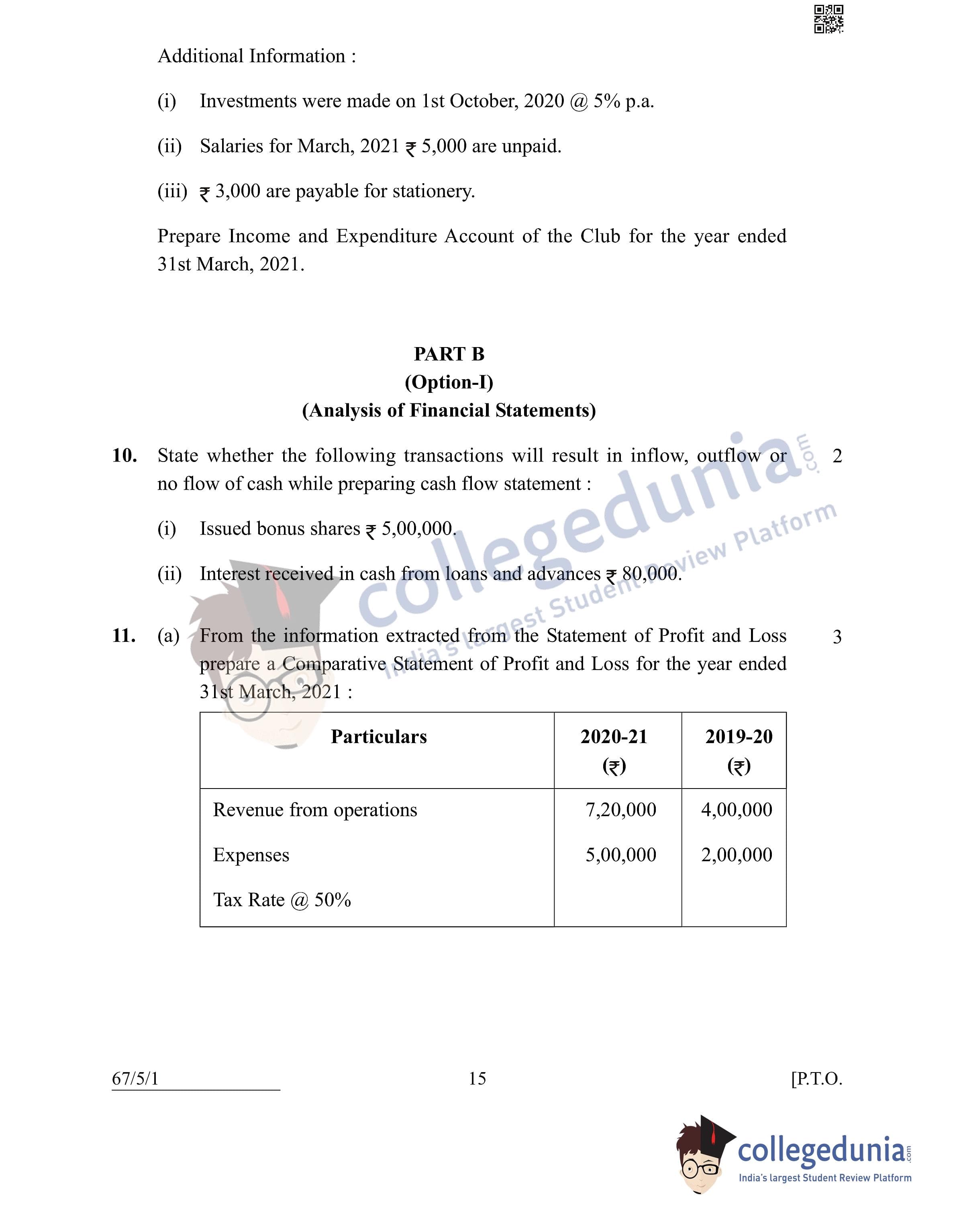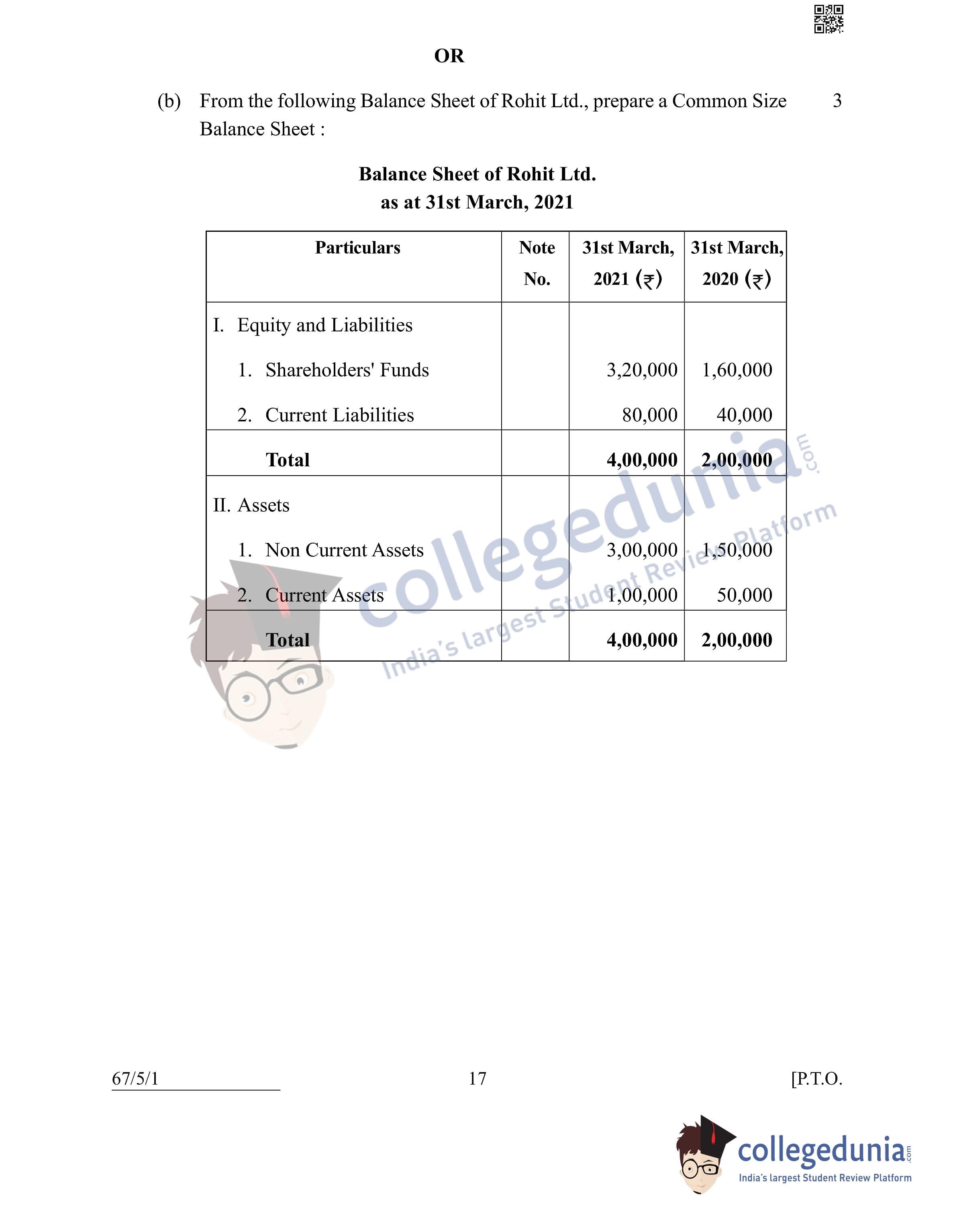 CBSE Class 12 Accountancy Question Paper 2022 with Answer Key (May 23, Set 1 - 67/5/1- Morning Session)