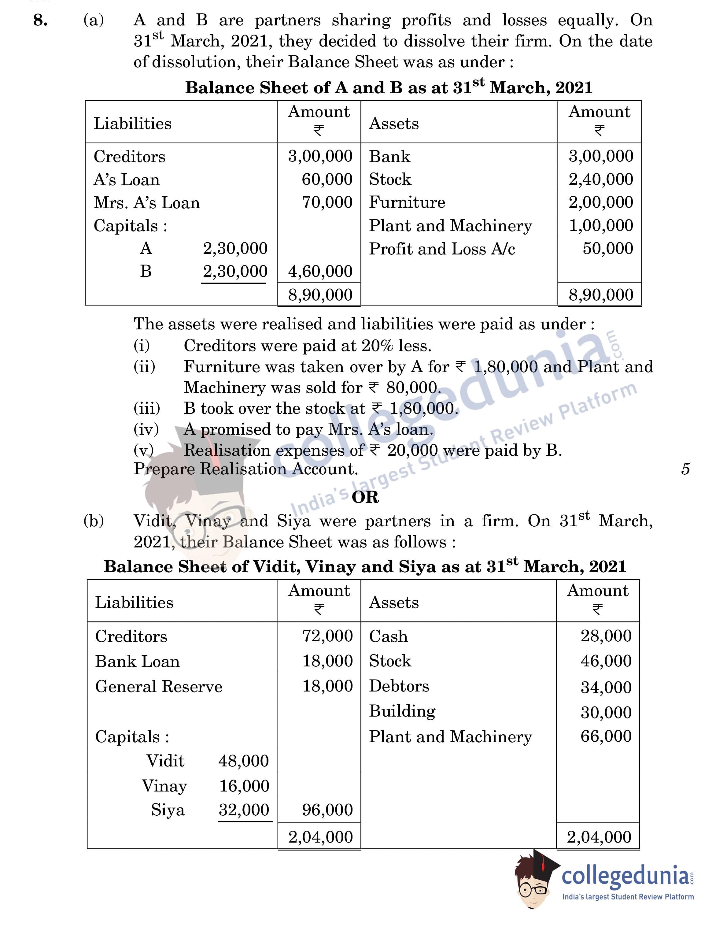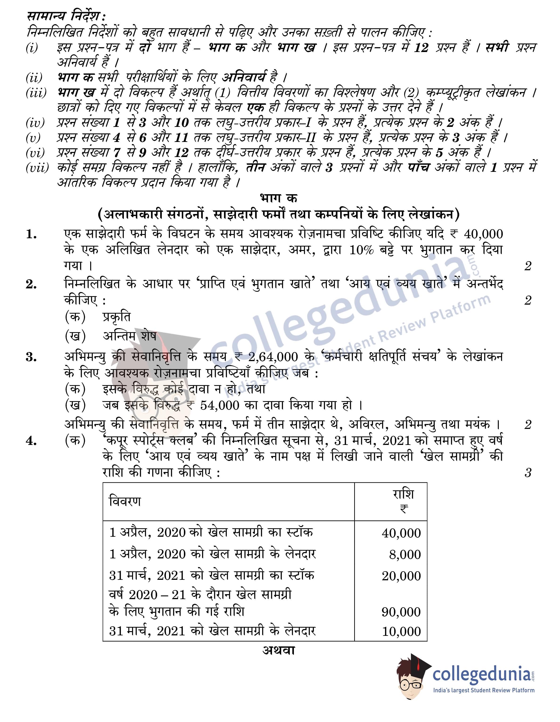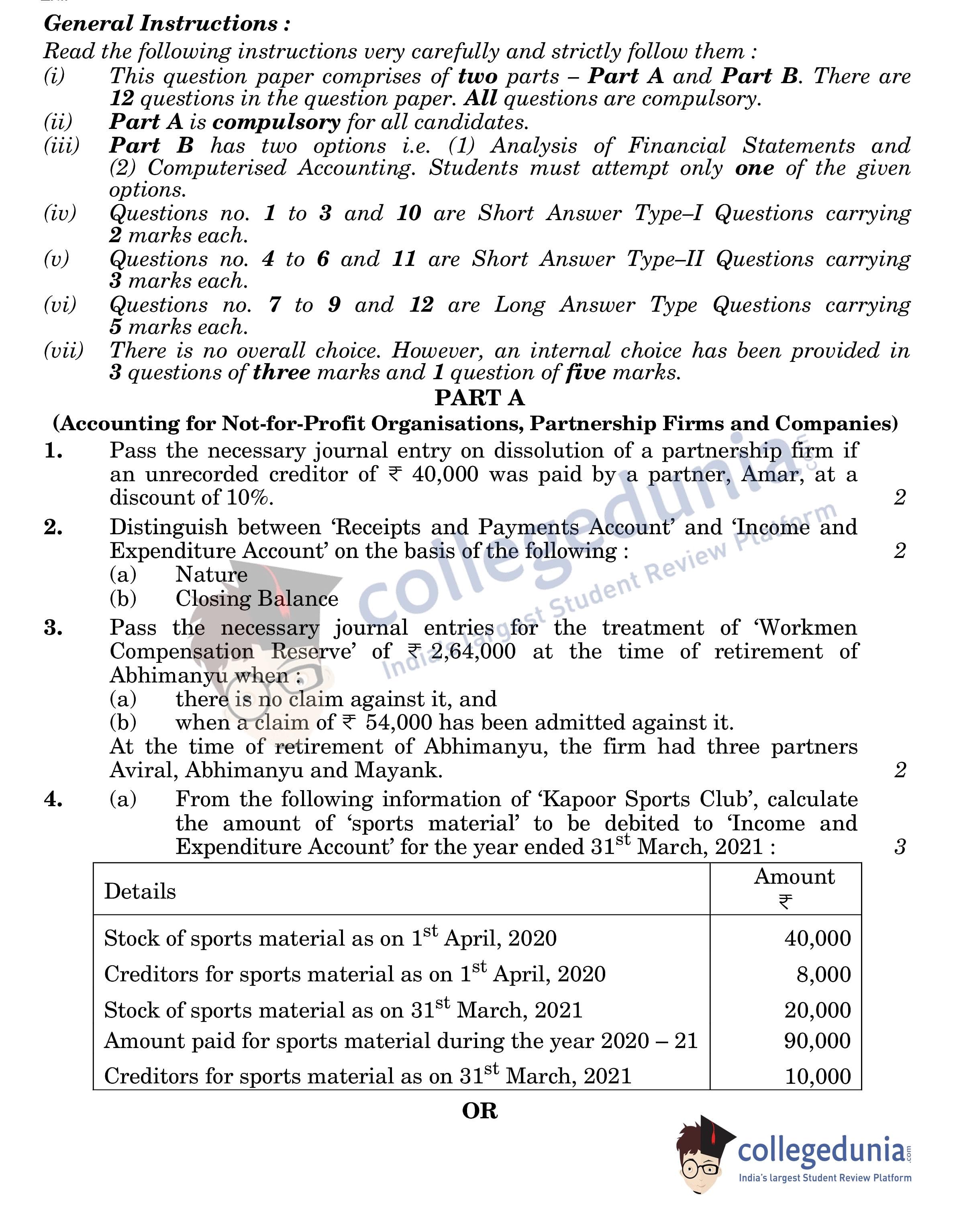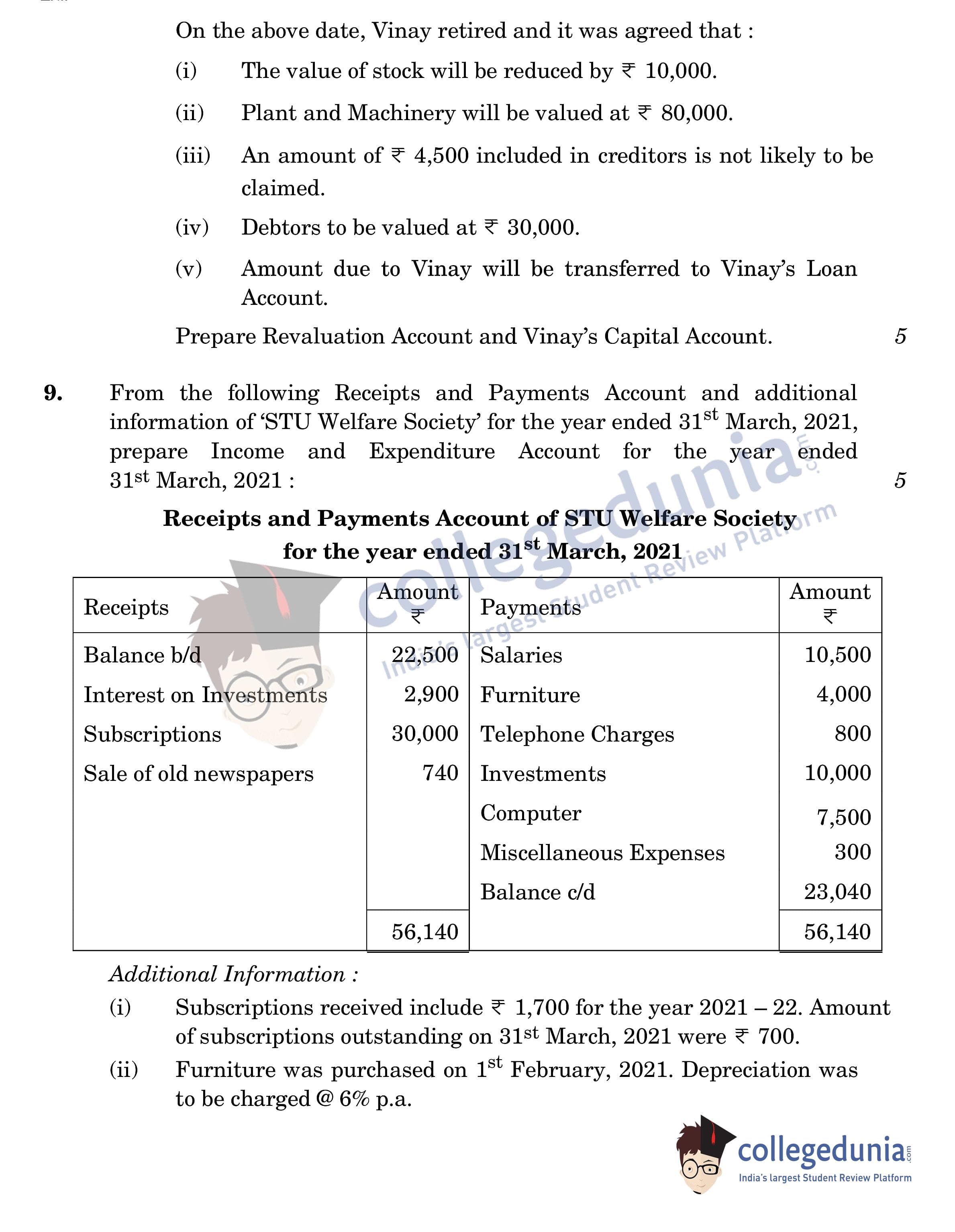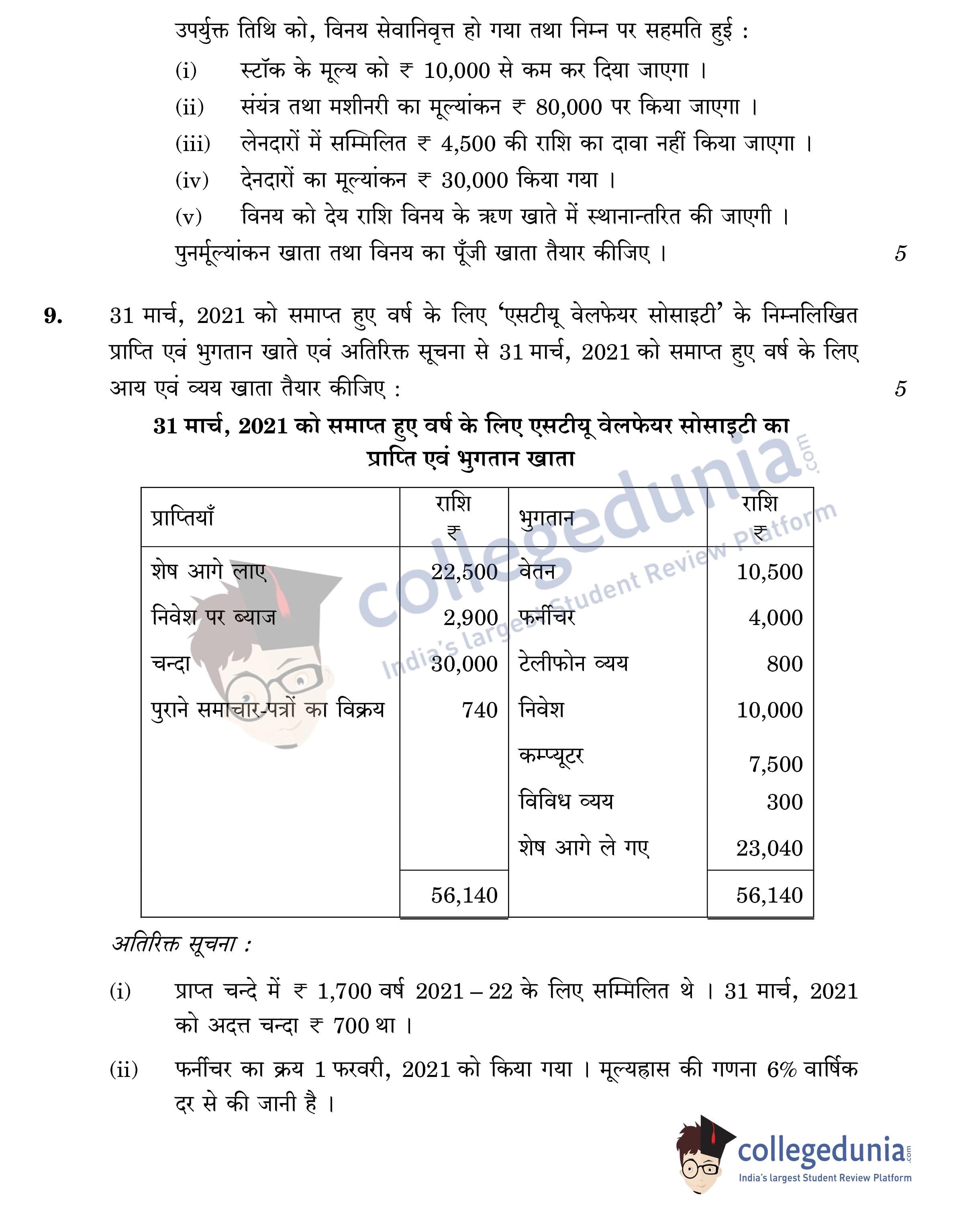 CBSE Class 12 Accountancy Question Paper 2022 with Answer Key (May 23, Set 2 - 67/2/2- Morning Session)