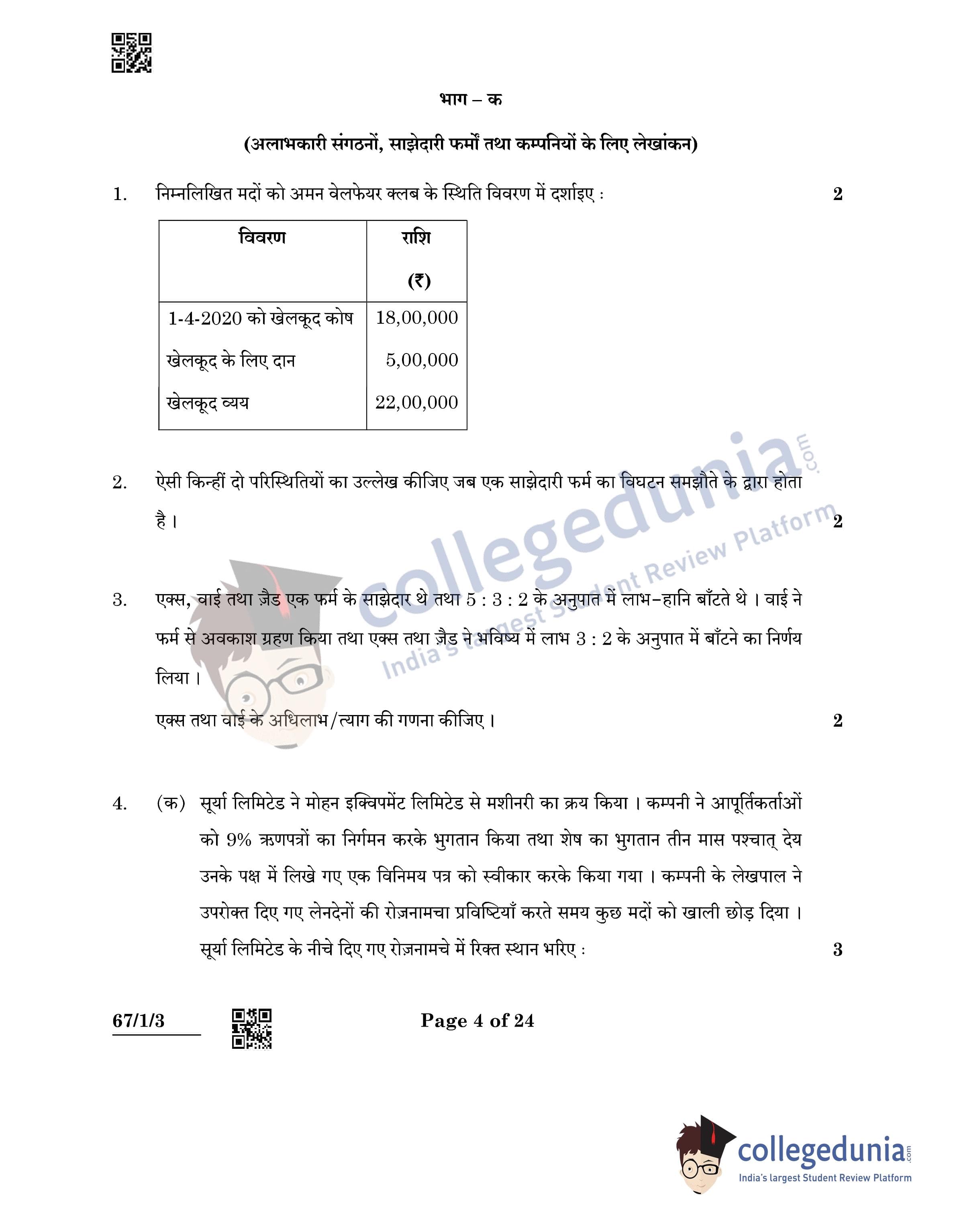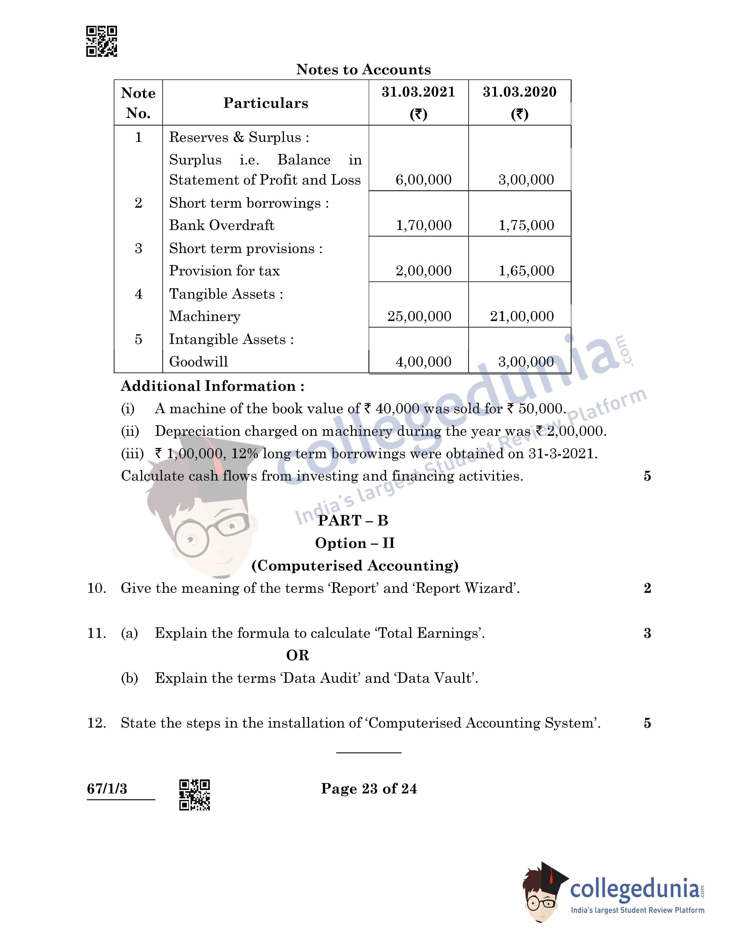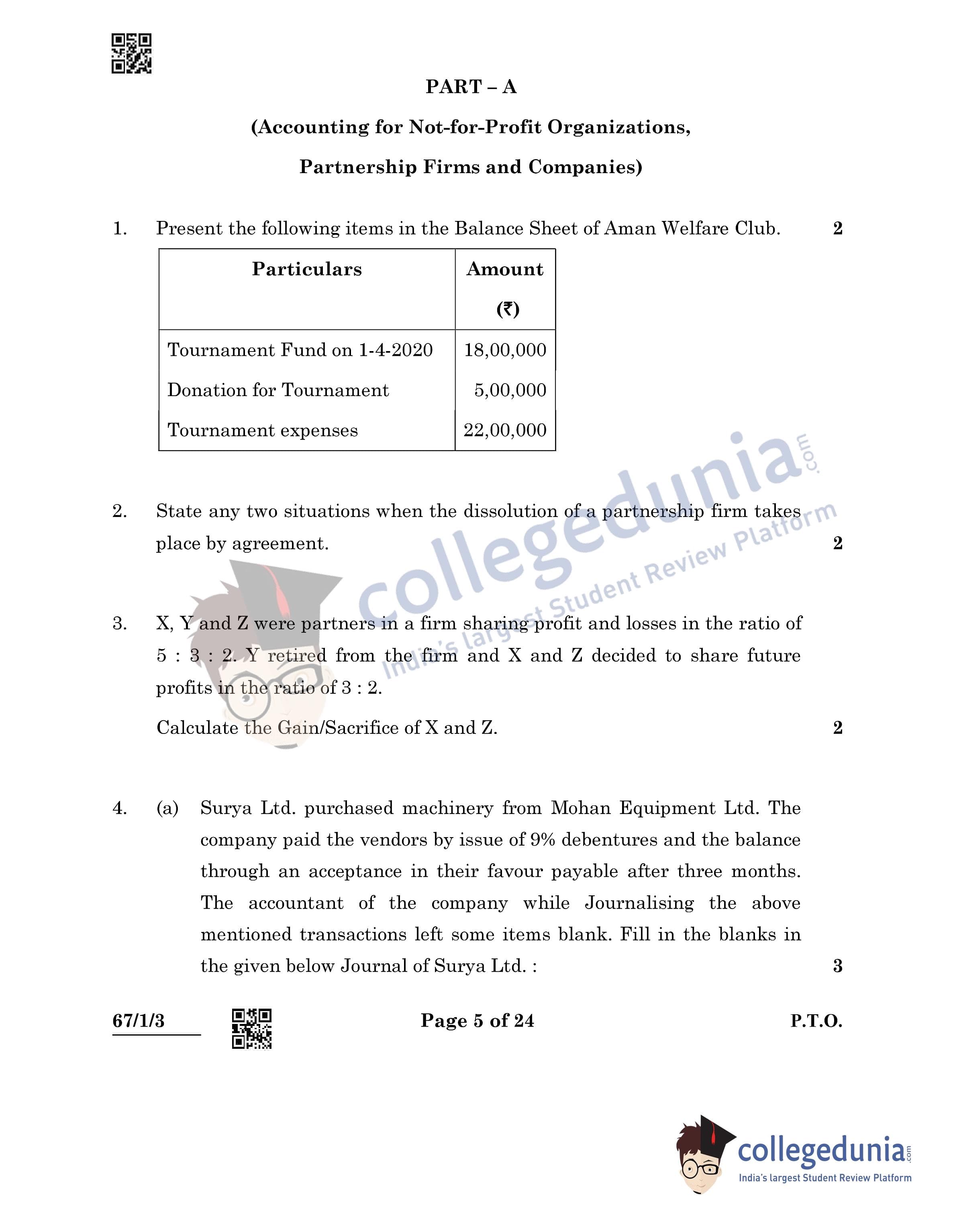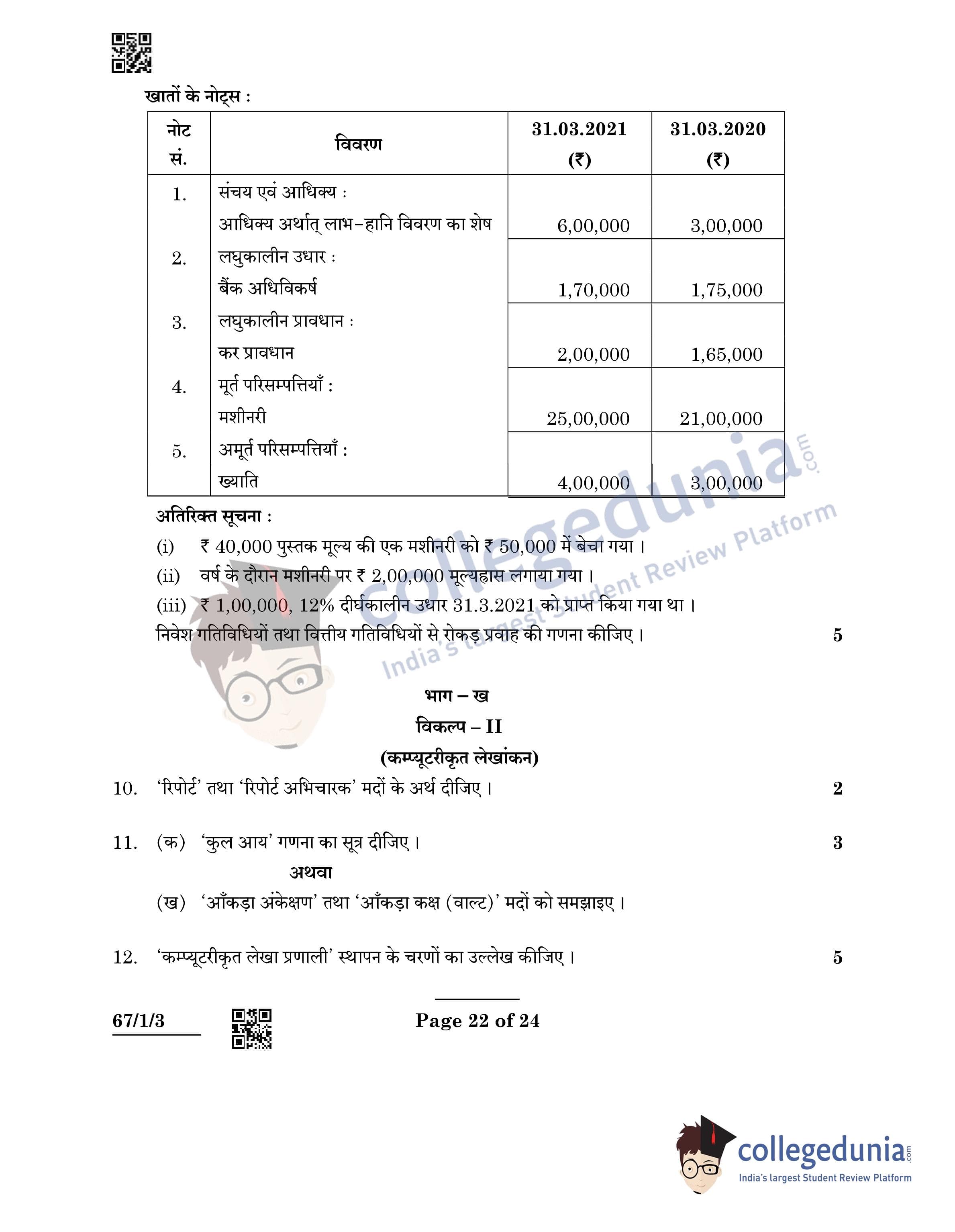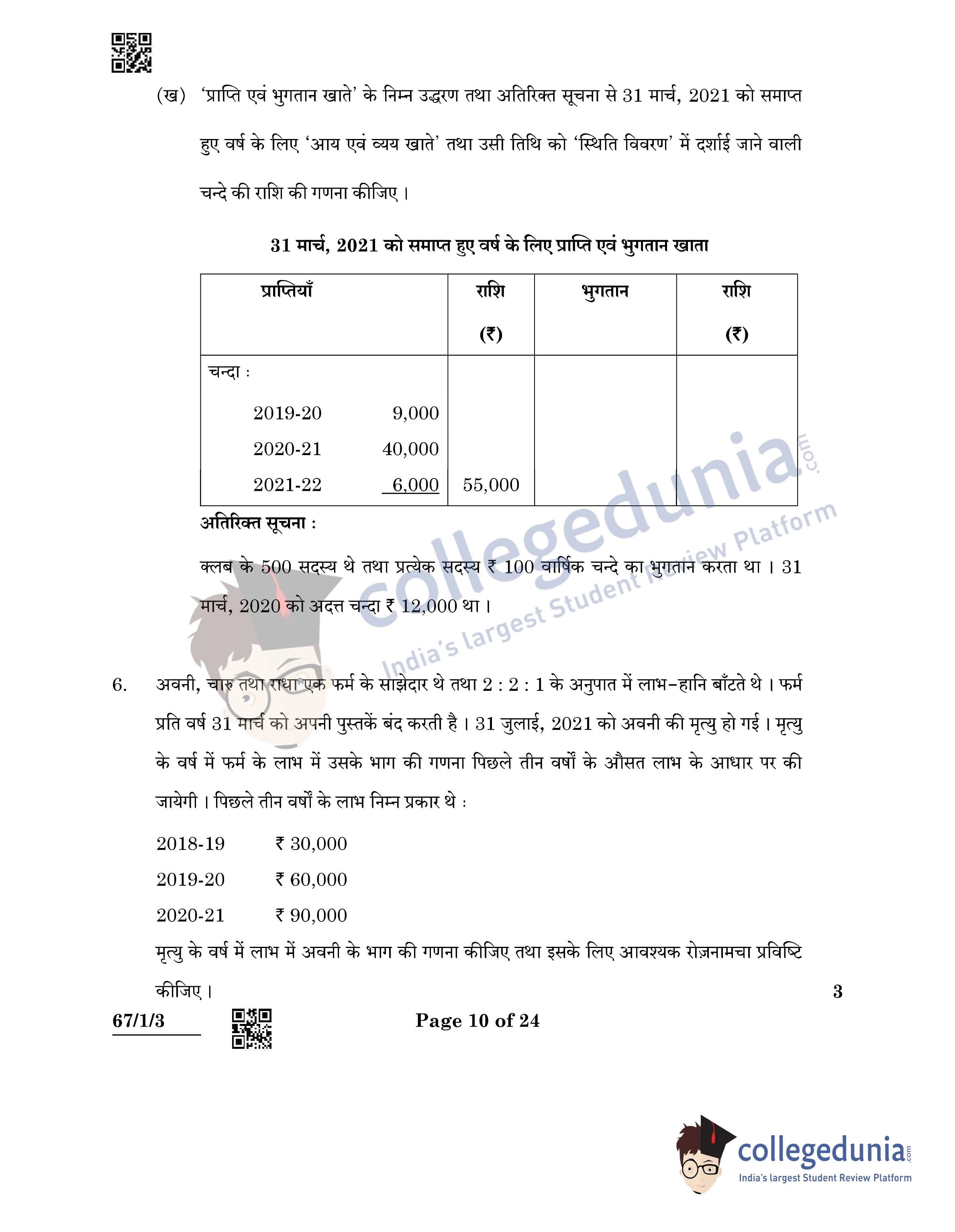 CBSE Class 12 Accountancy Question Paper 2022 with Answer Key (May 23, Set 3 - 67/1/3- Morning Session)