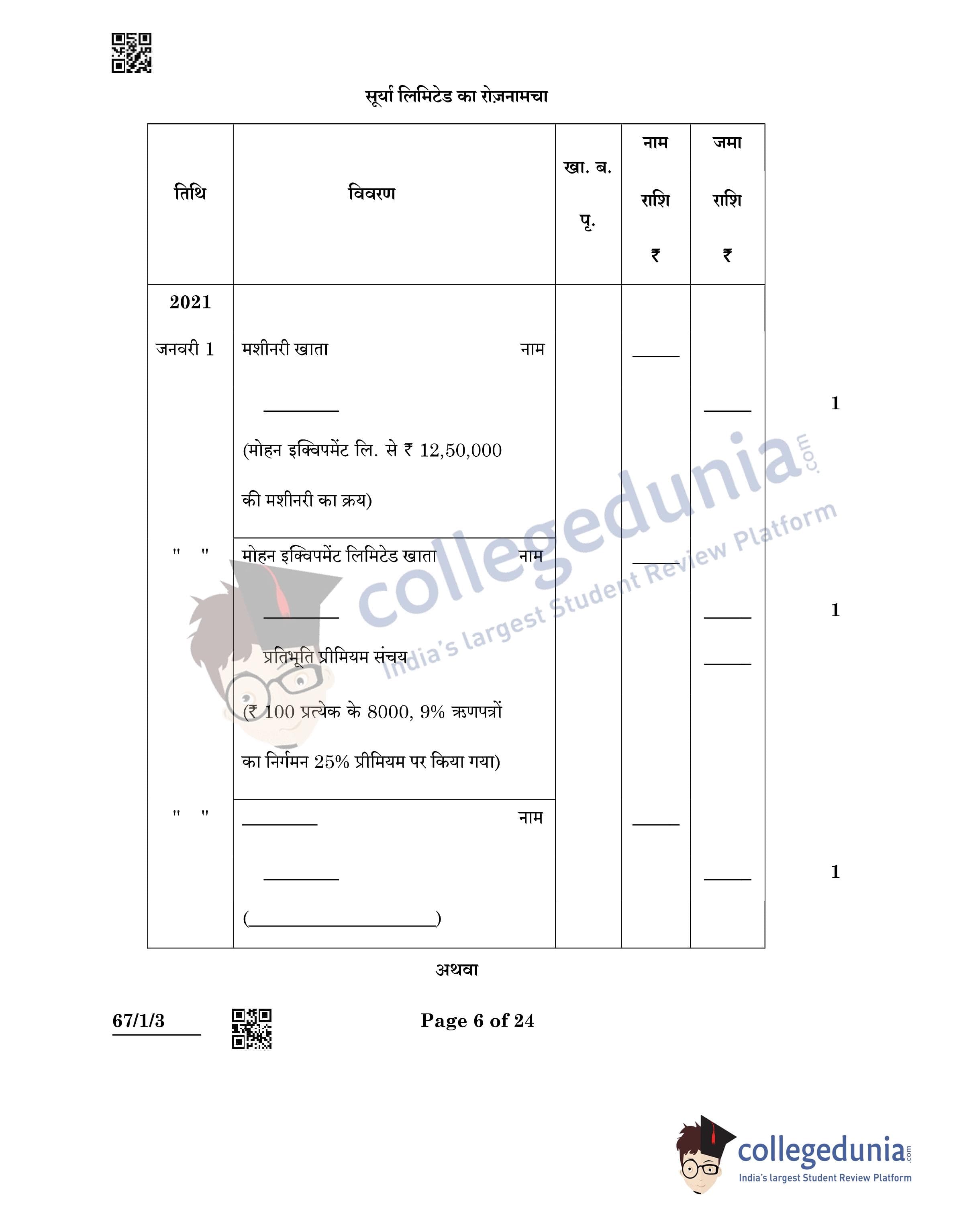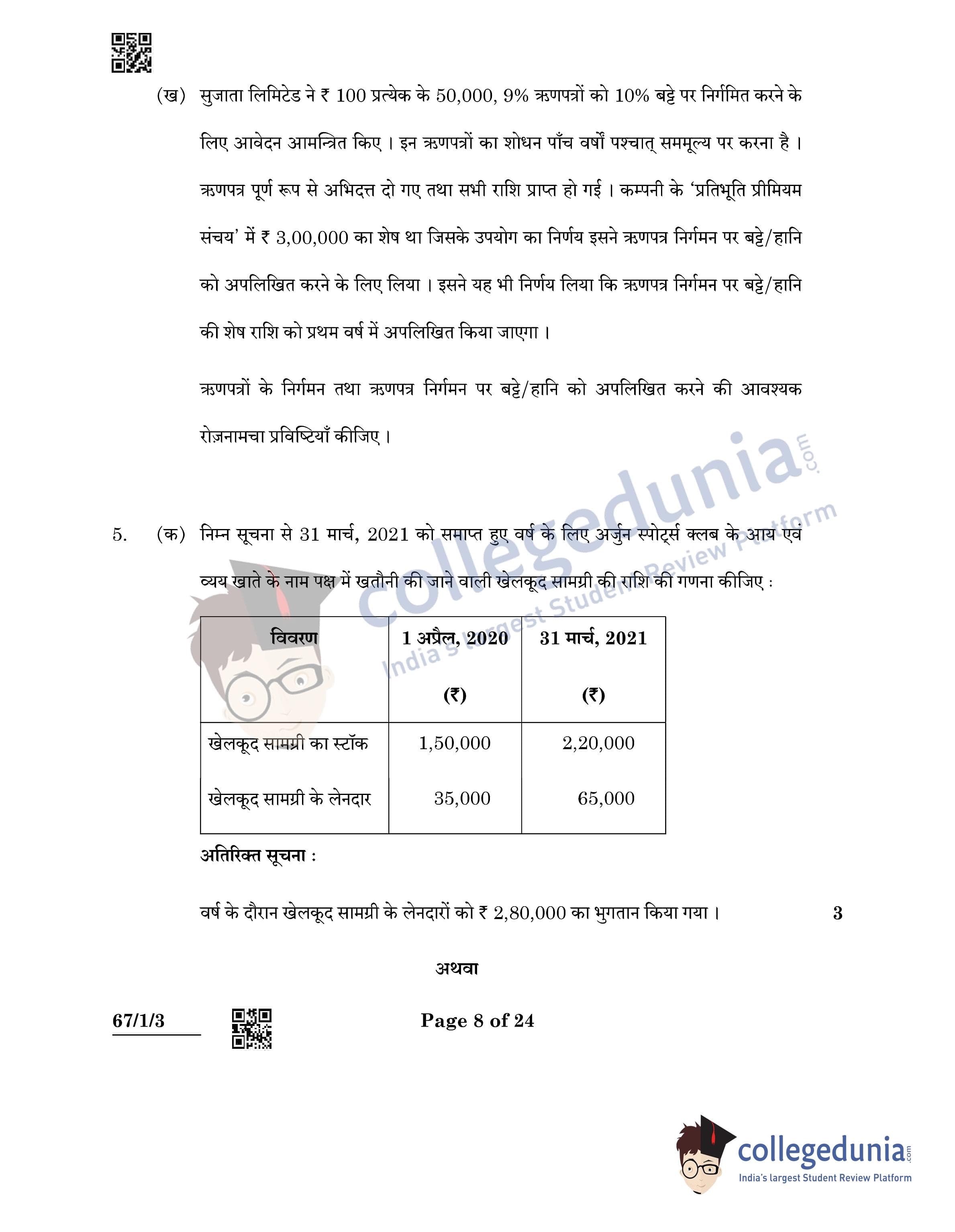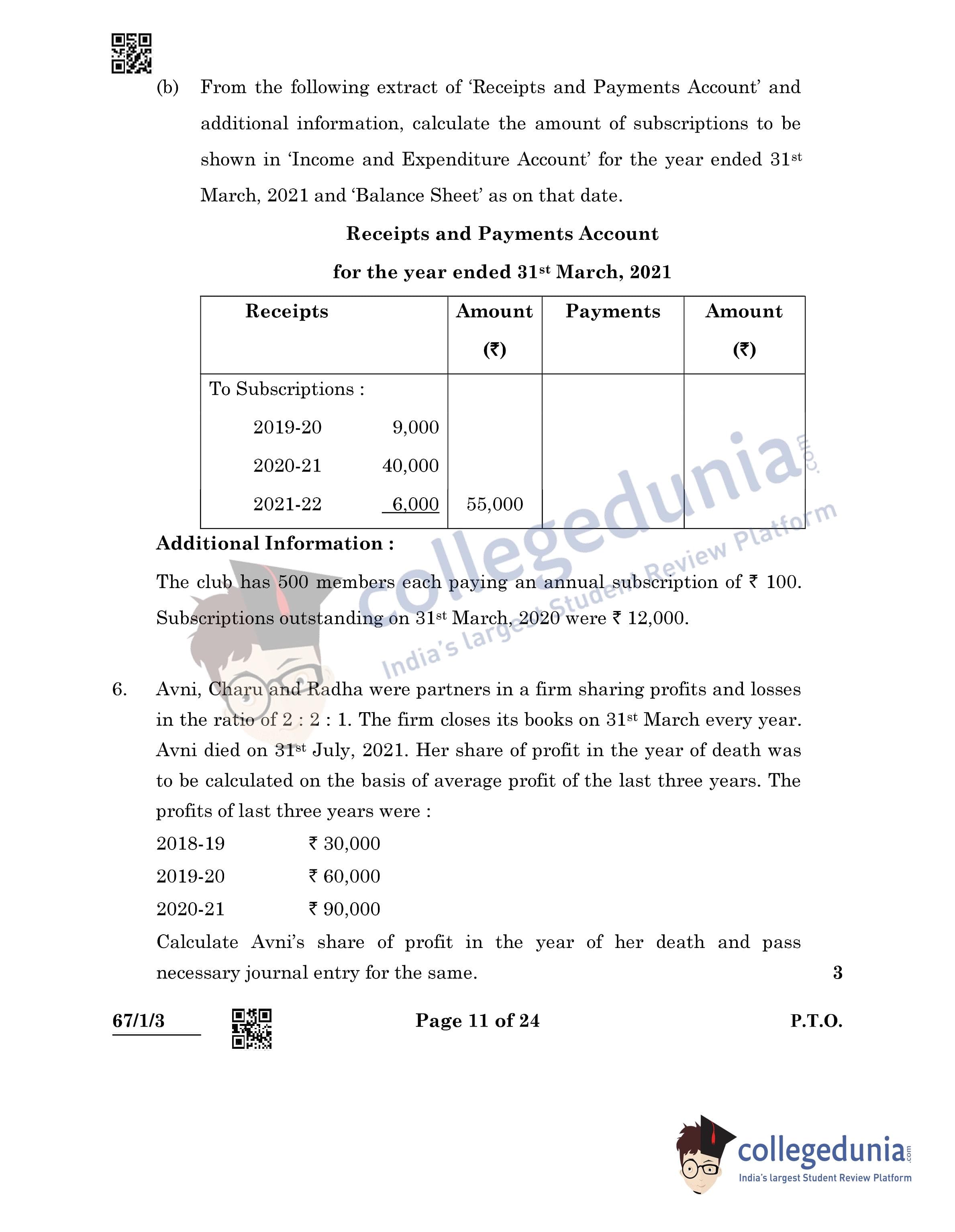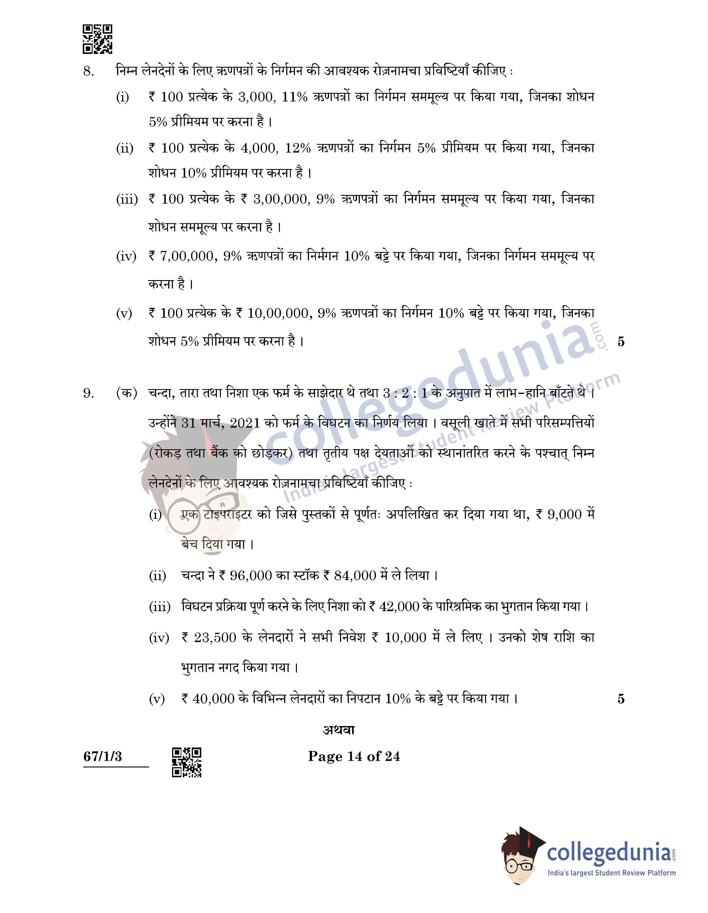 CBSE Class 12 Accountancy Question Paper 2022 with Answer Key (May 23, Set 3 - 67/1/3- Morning Session)