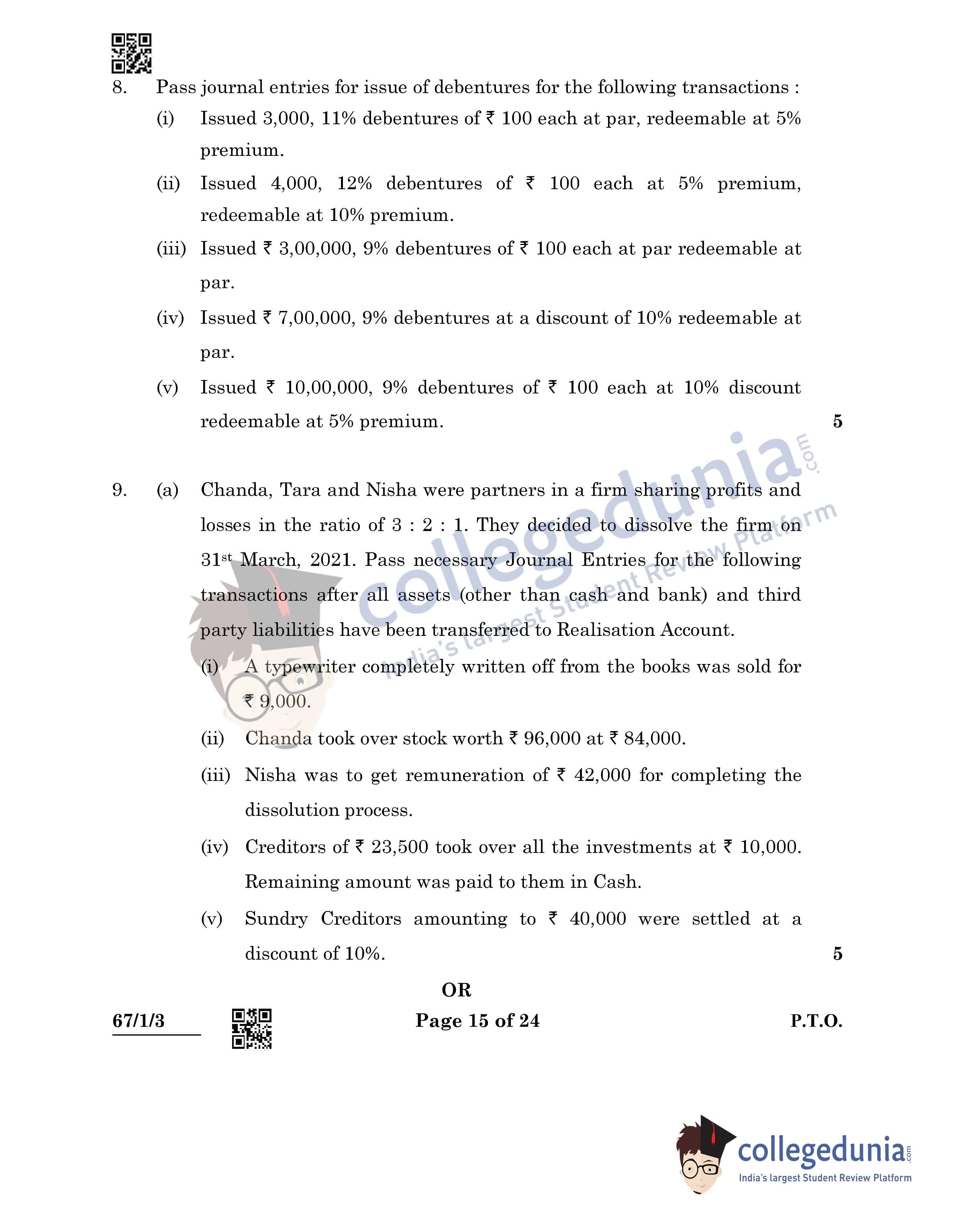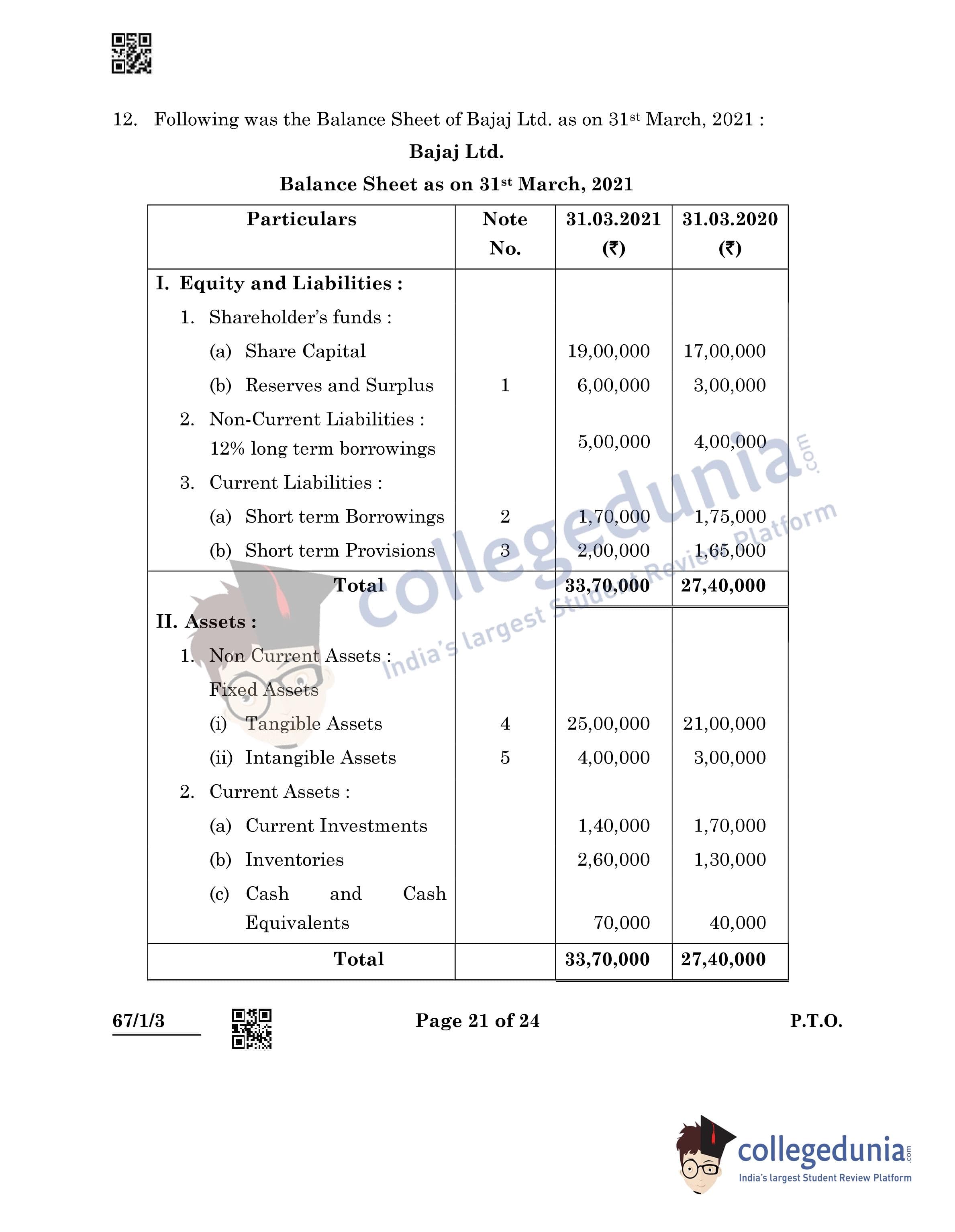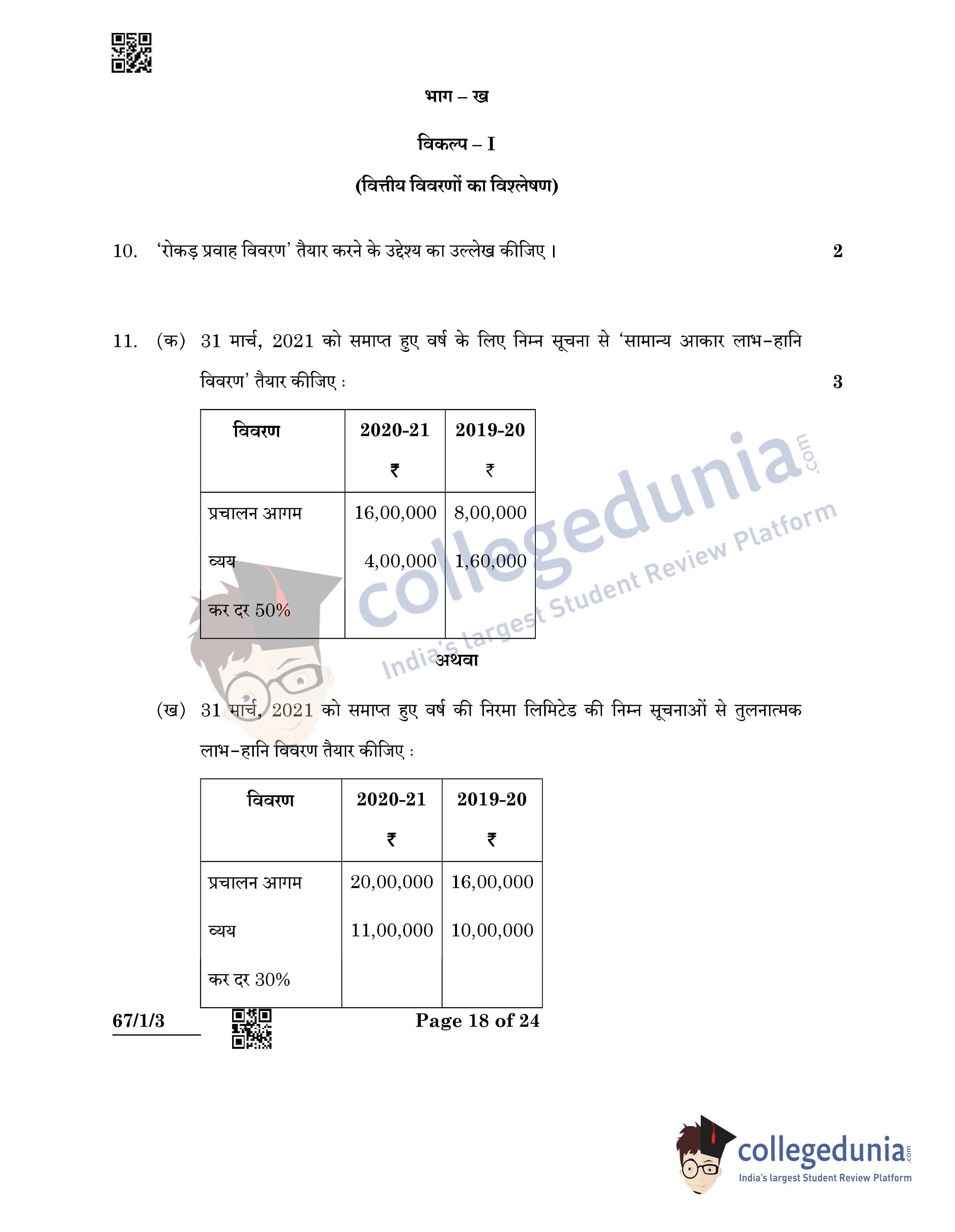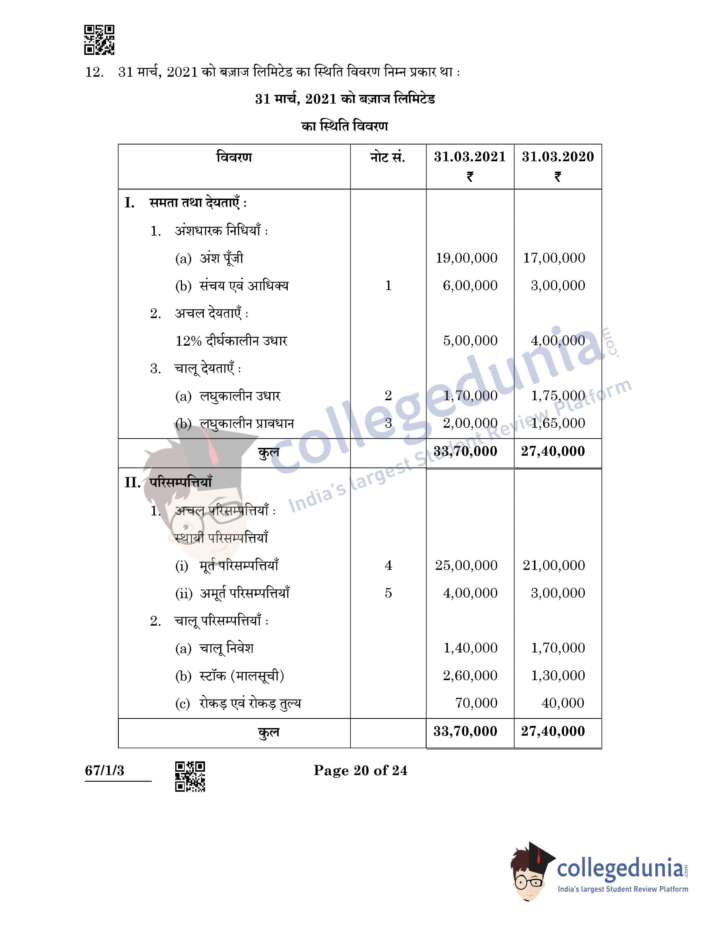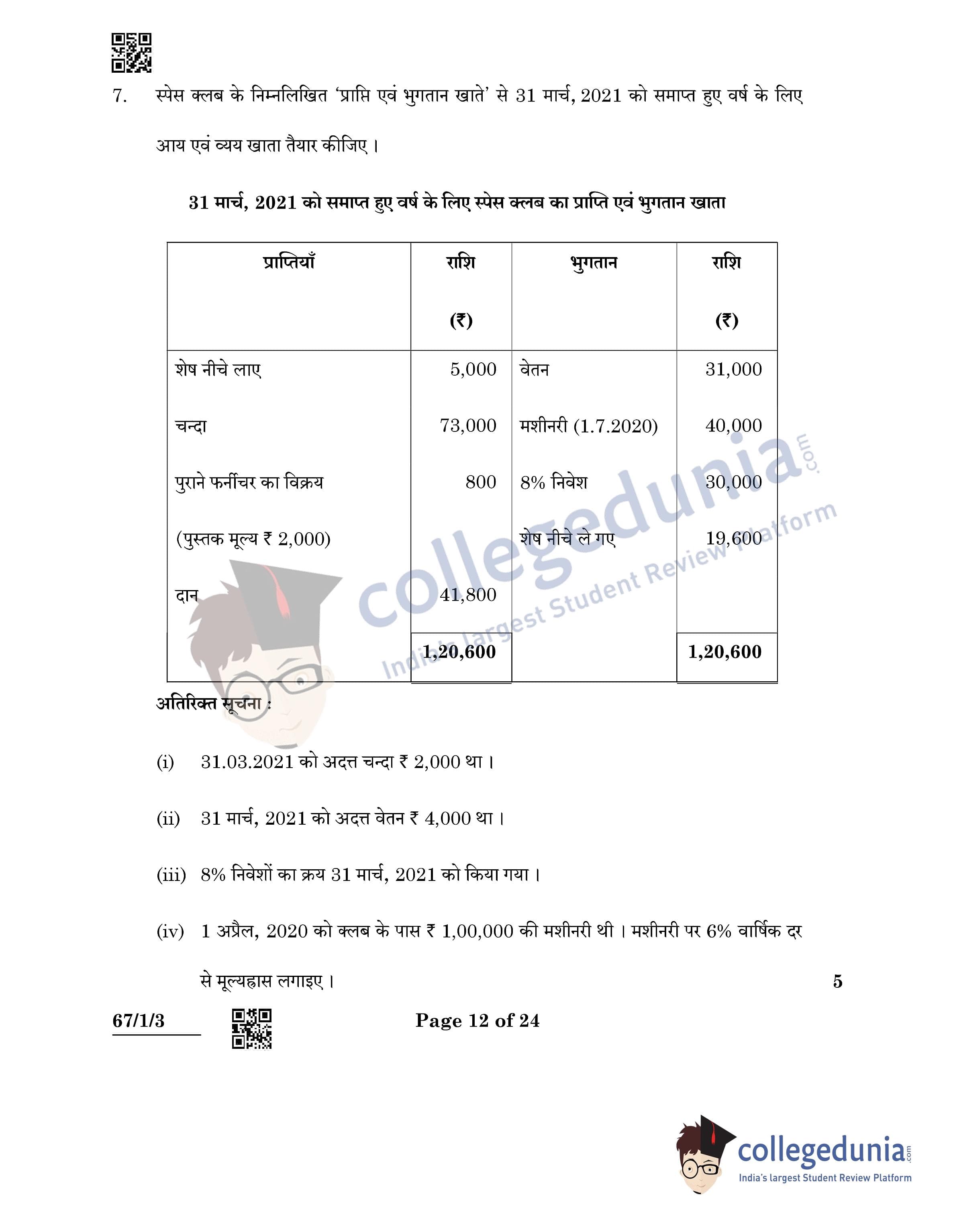 CBSE Class 12 Accountancy Question Paper 2022 with Answer Key (May 23, Set 3 - 67/1/3- Morning Session)