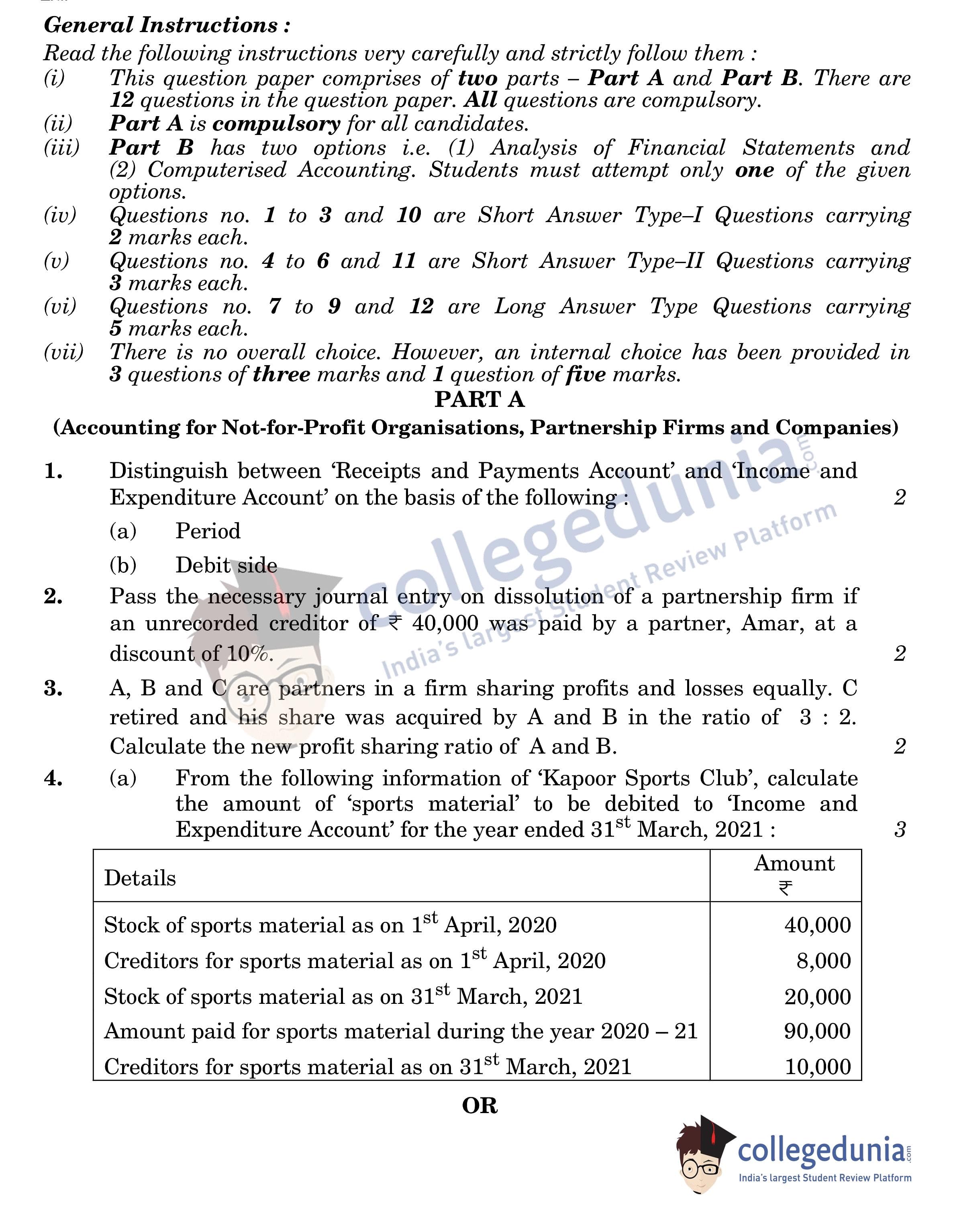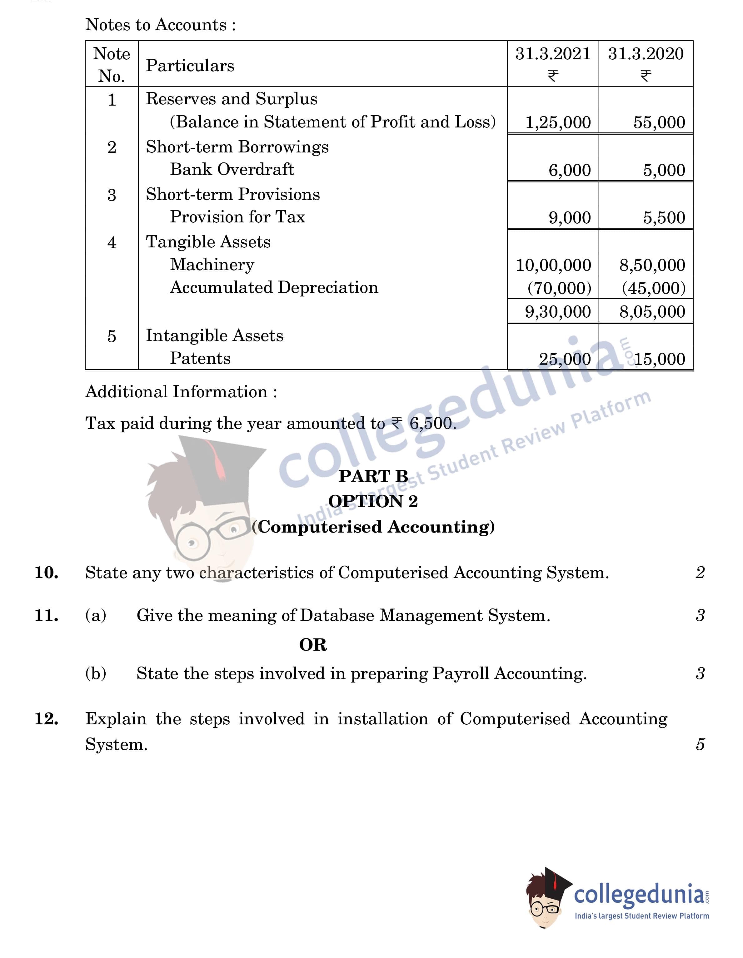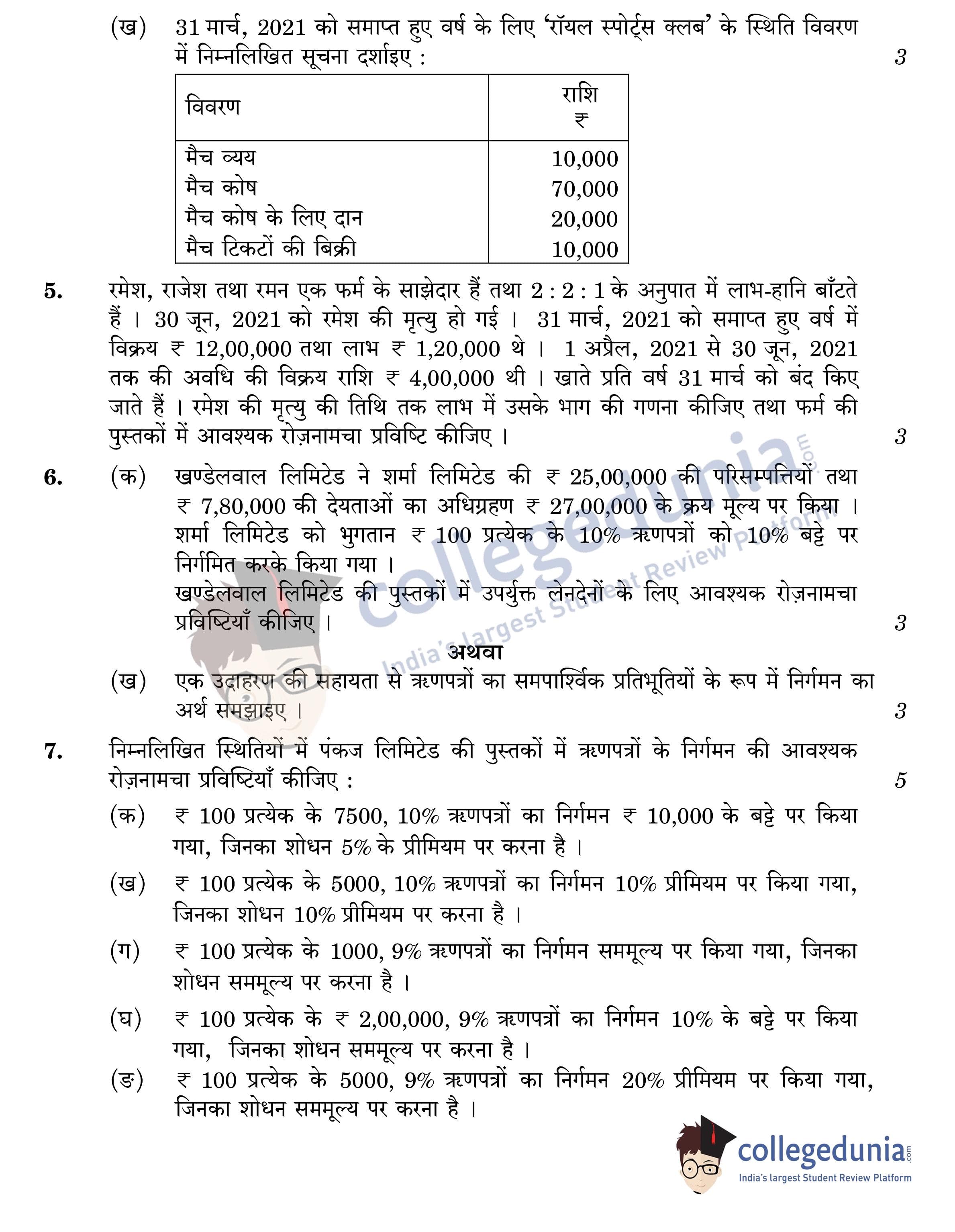 CBSE Class 12 Accountancy Question Paper 2022 with Answer Key (May 23, Set 3 - 67/2/3- Morning Session)