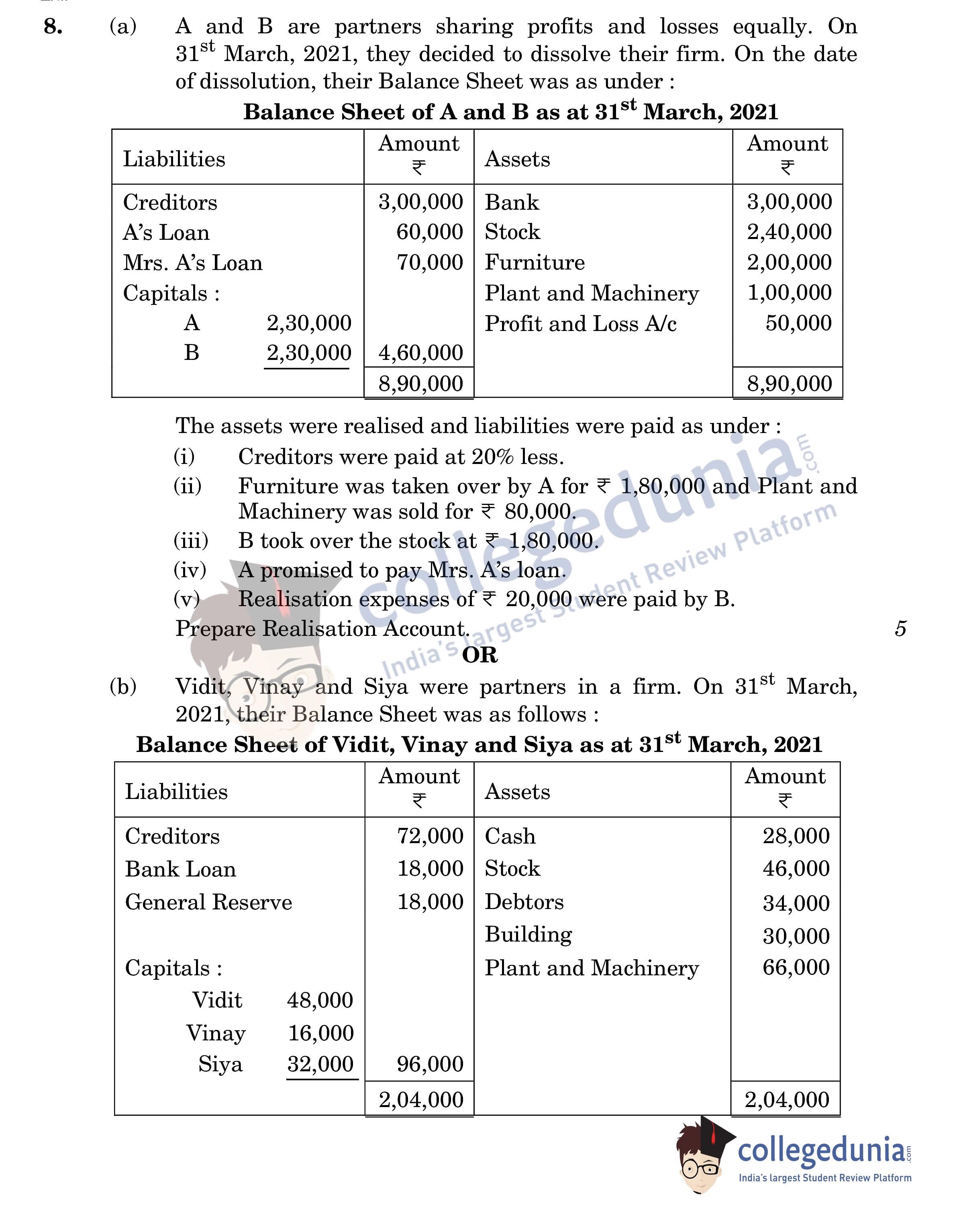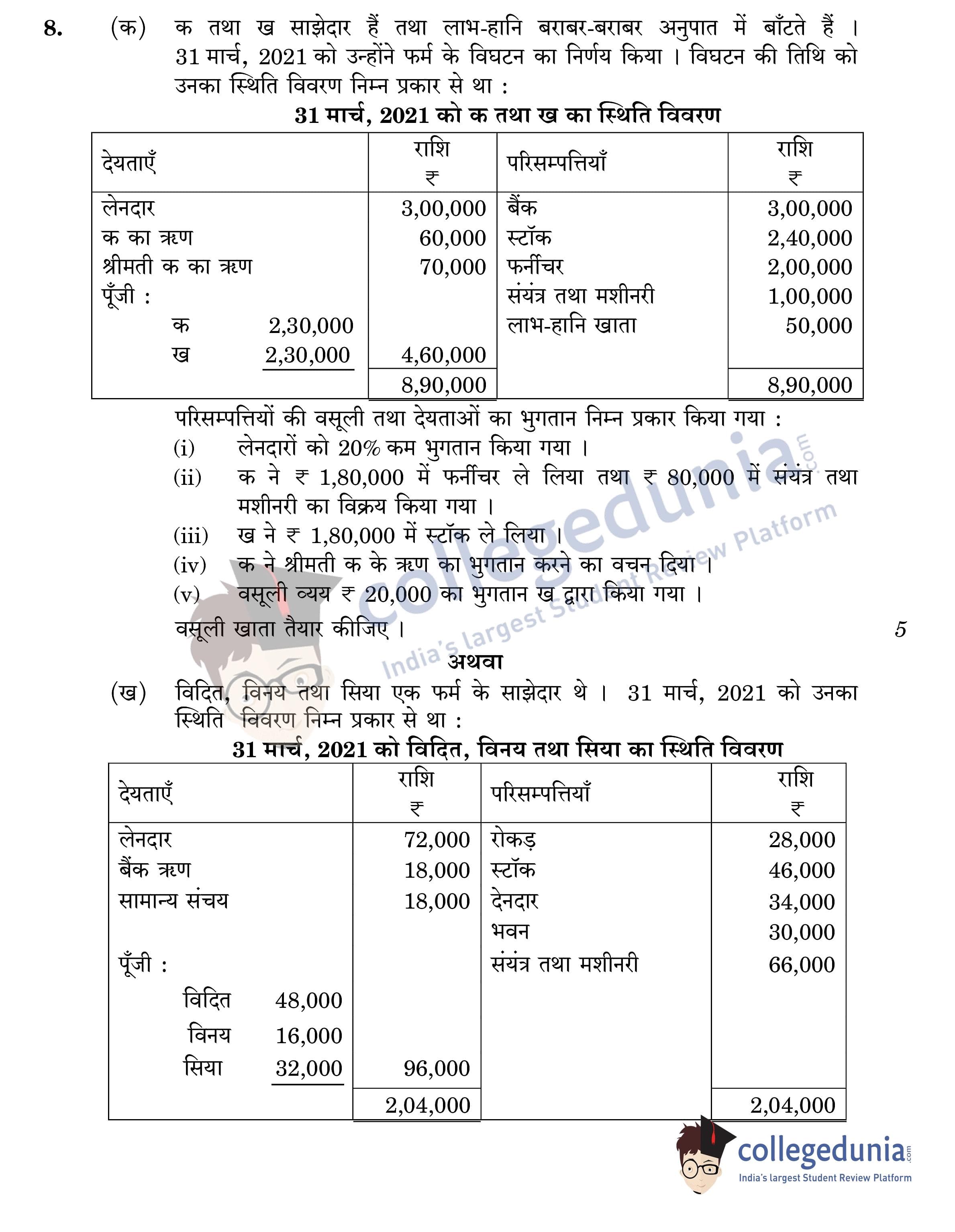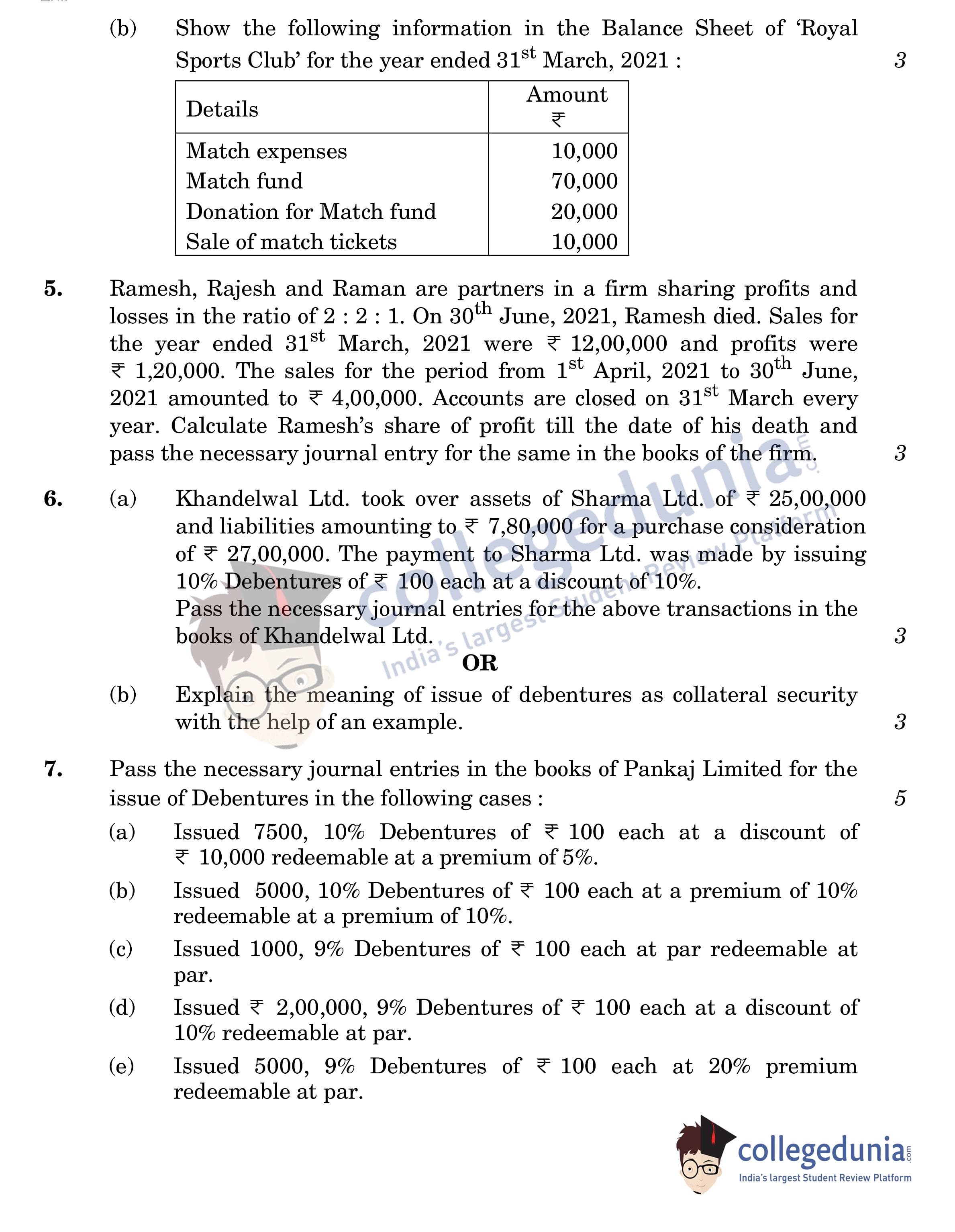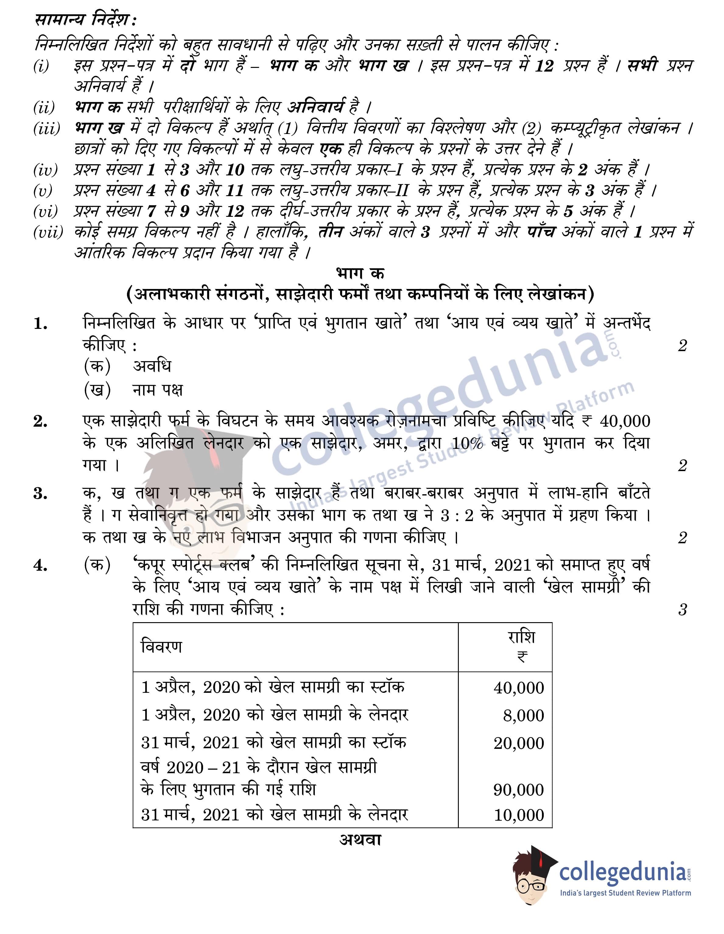 CBSE Class 12 Accountancy Question Paper 2022 with Answer Key (May 23, Set 3 - 67/2/3- Morning Session)