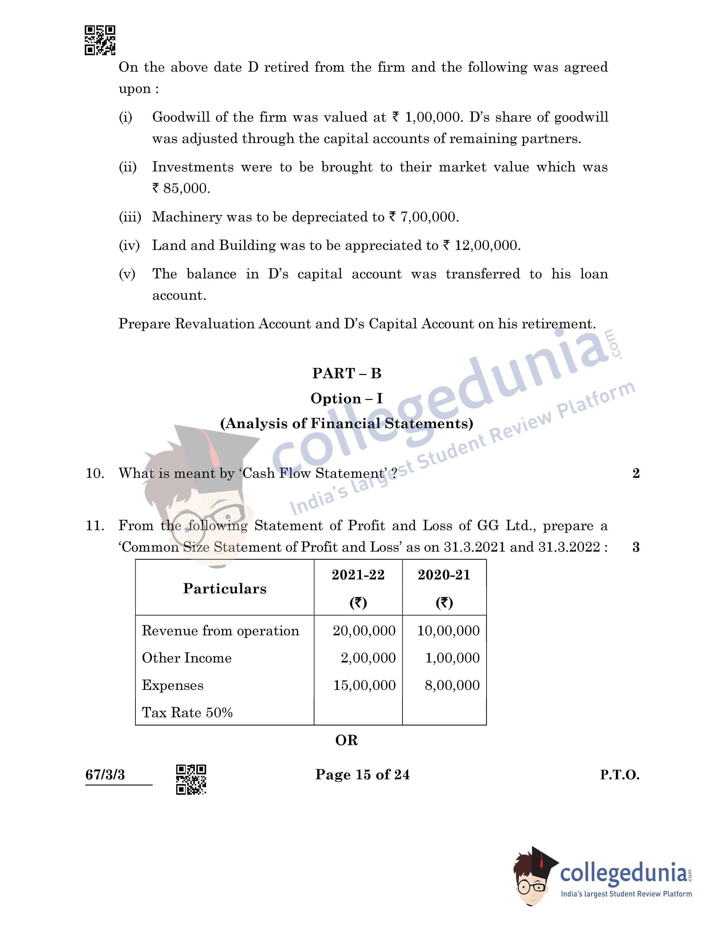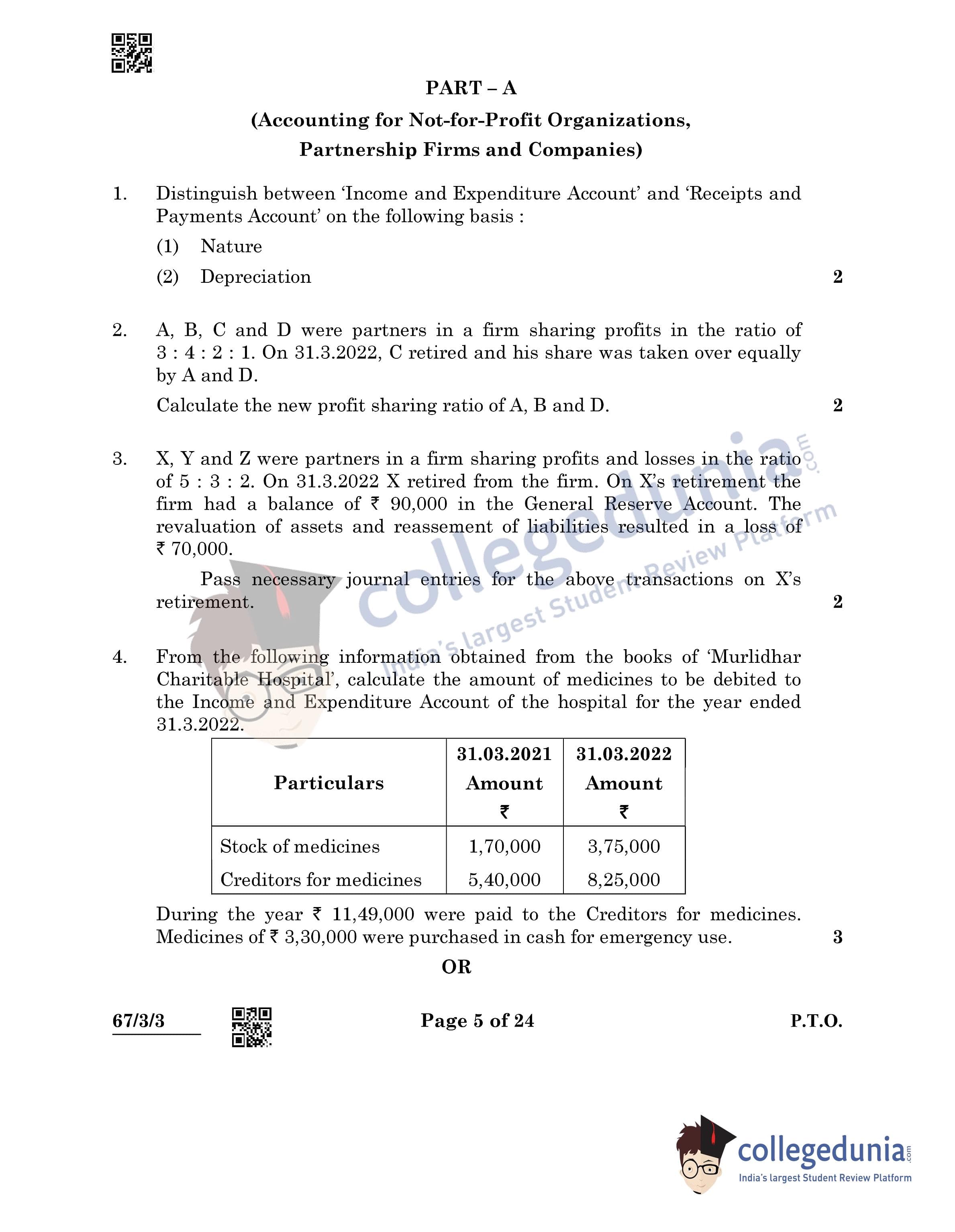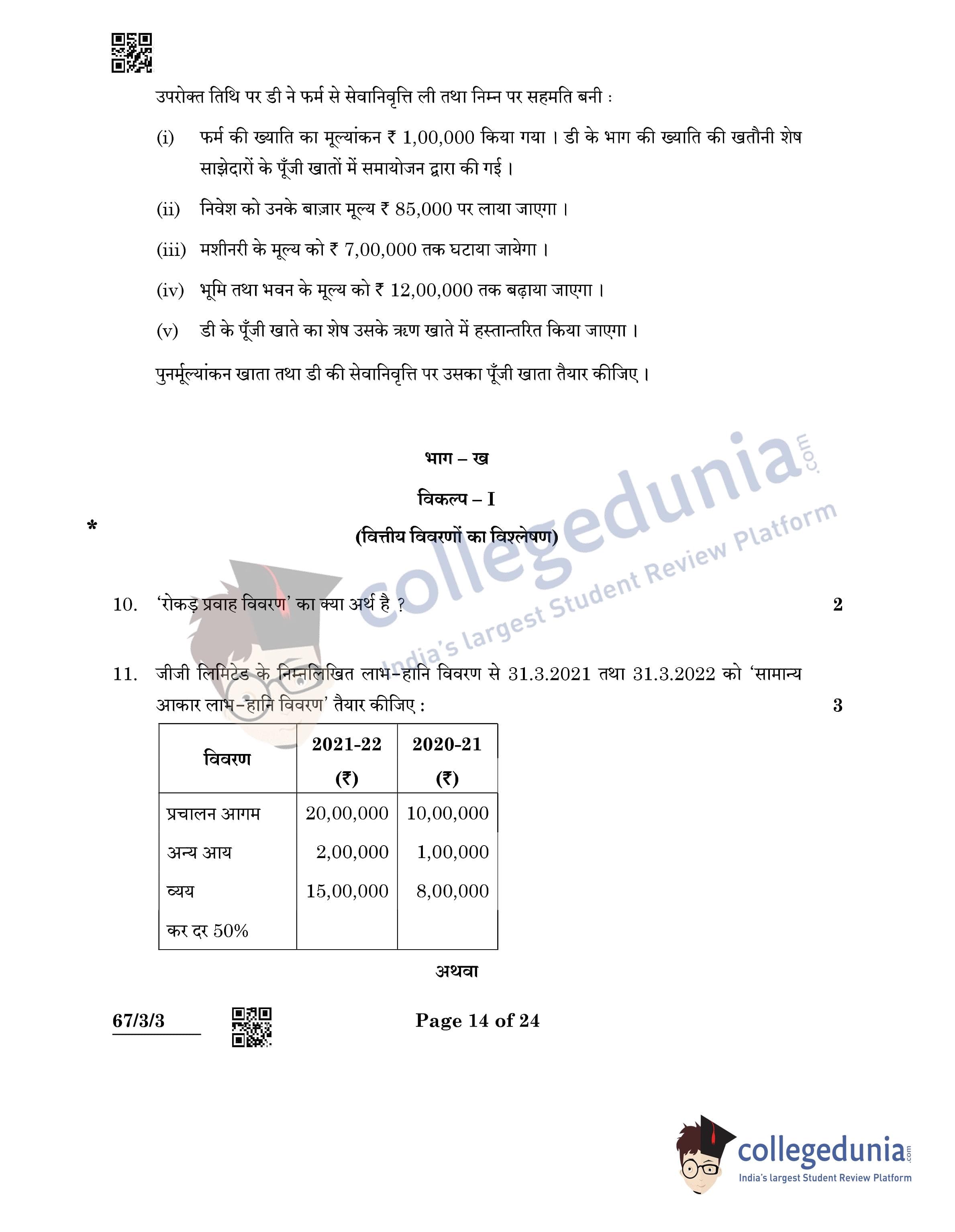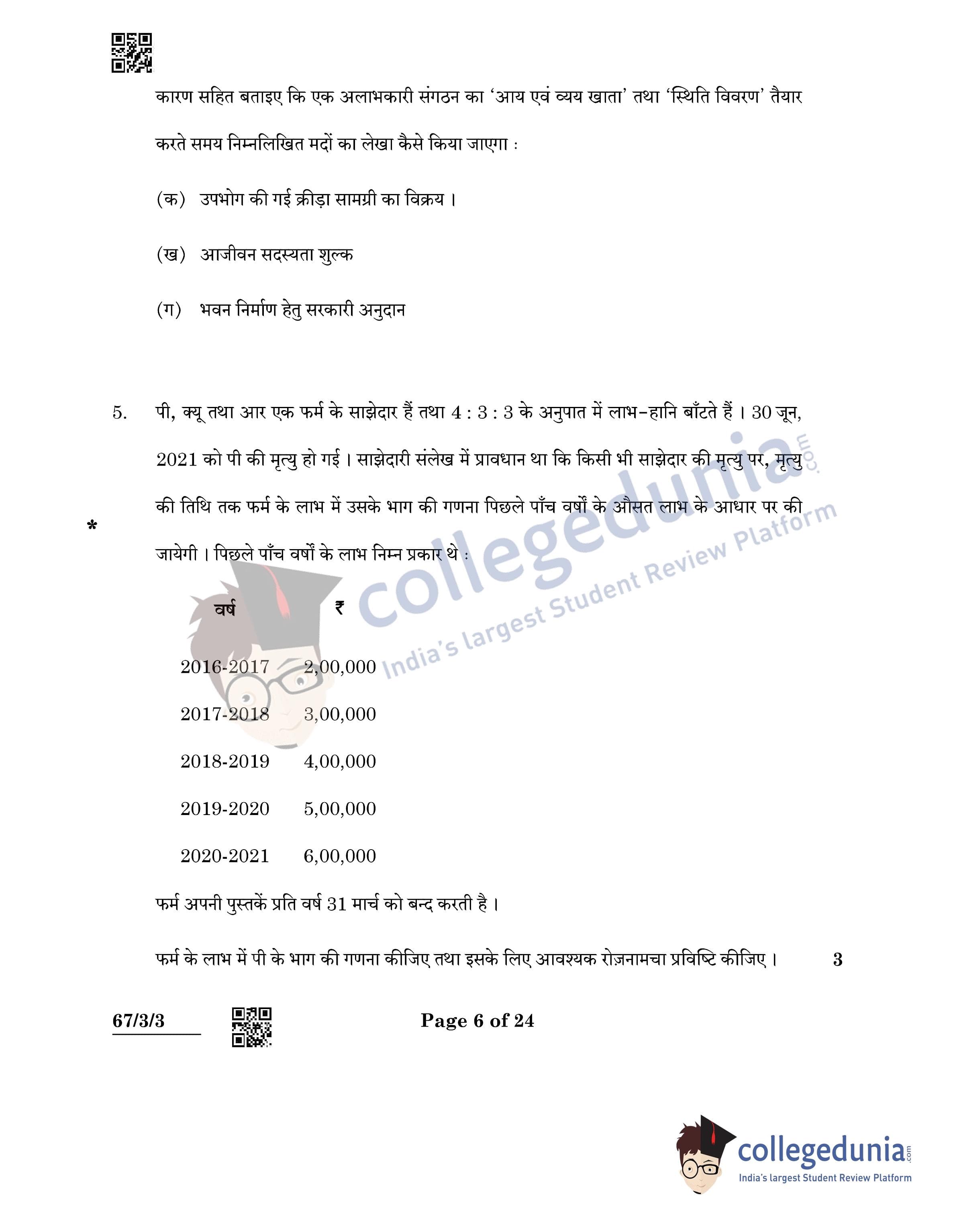 CBSE Class 12 Accountancy Question Paper 2022 with Answer Key (May 23, Set 3 - 67/3/3- Morning Session)