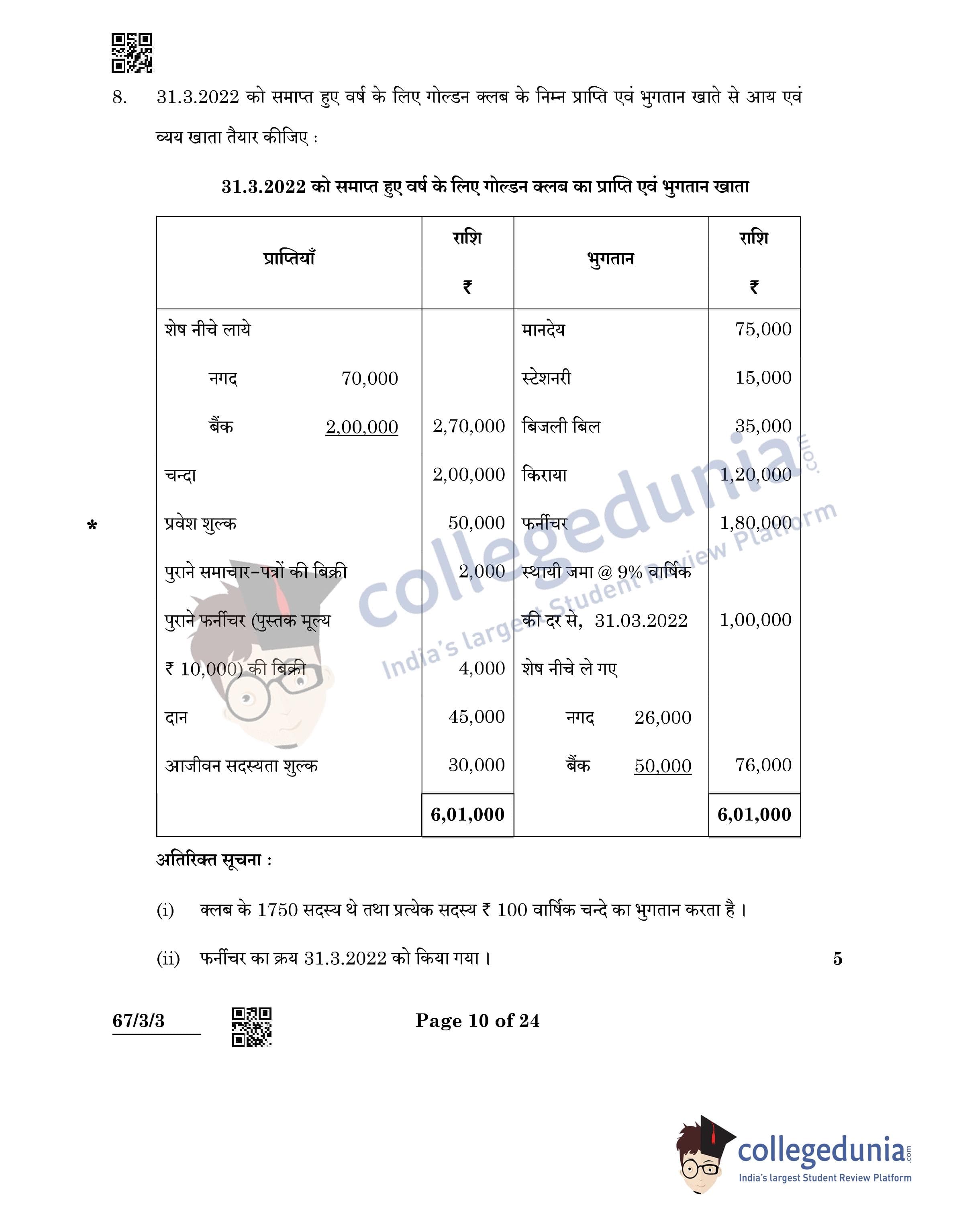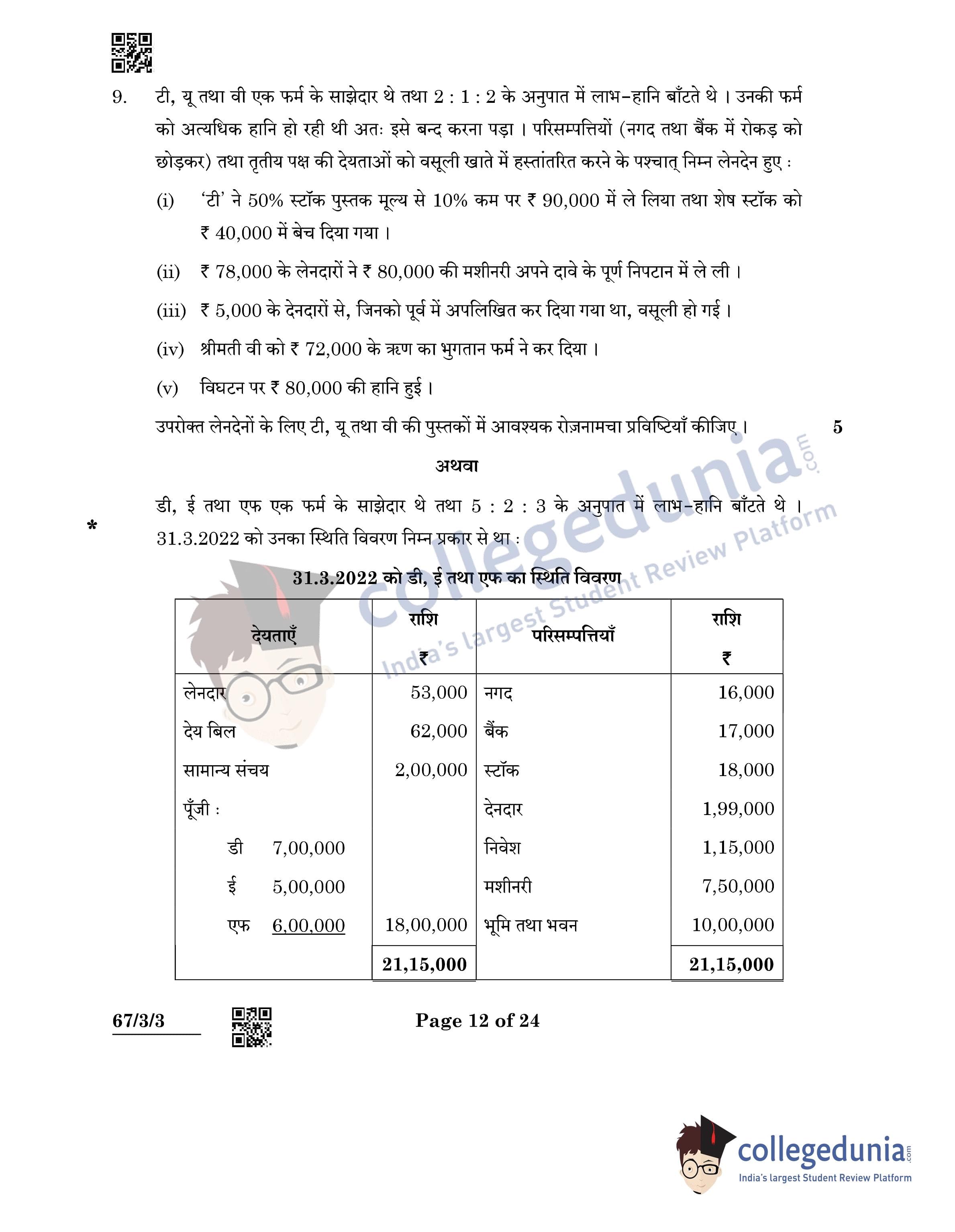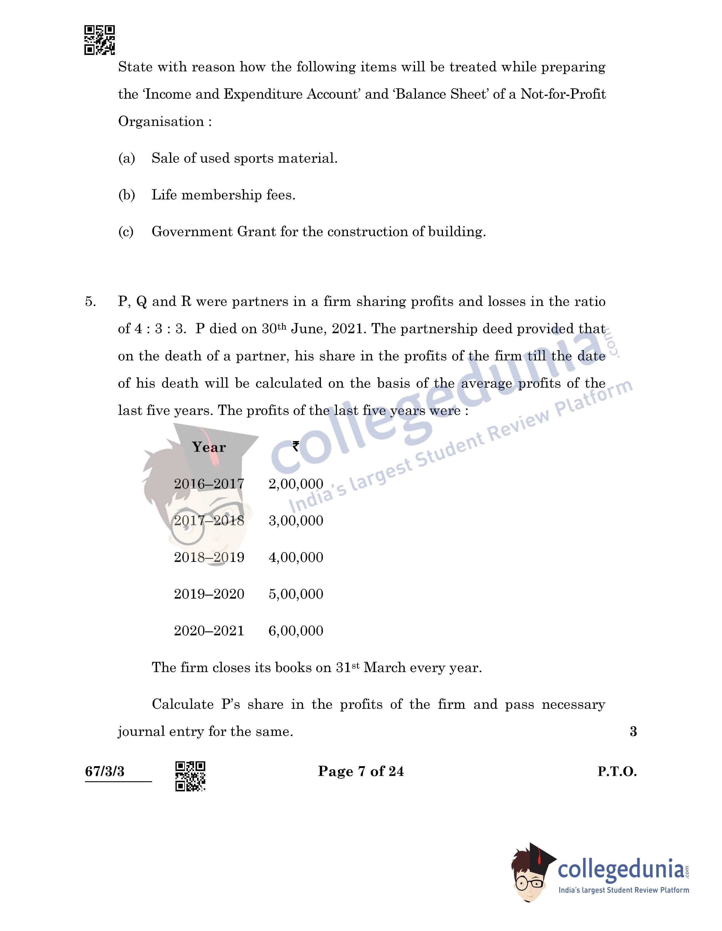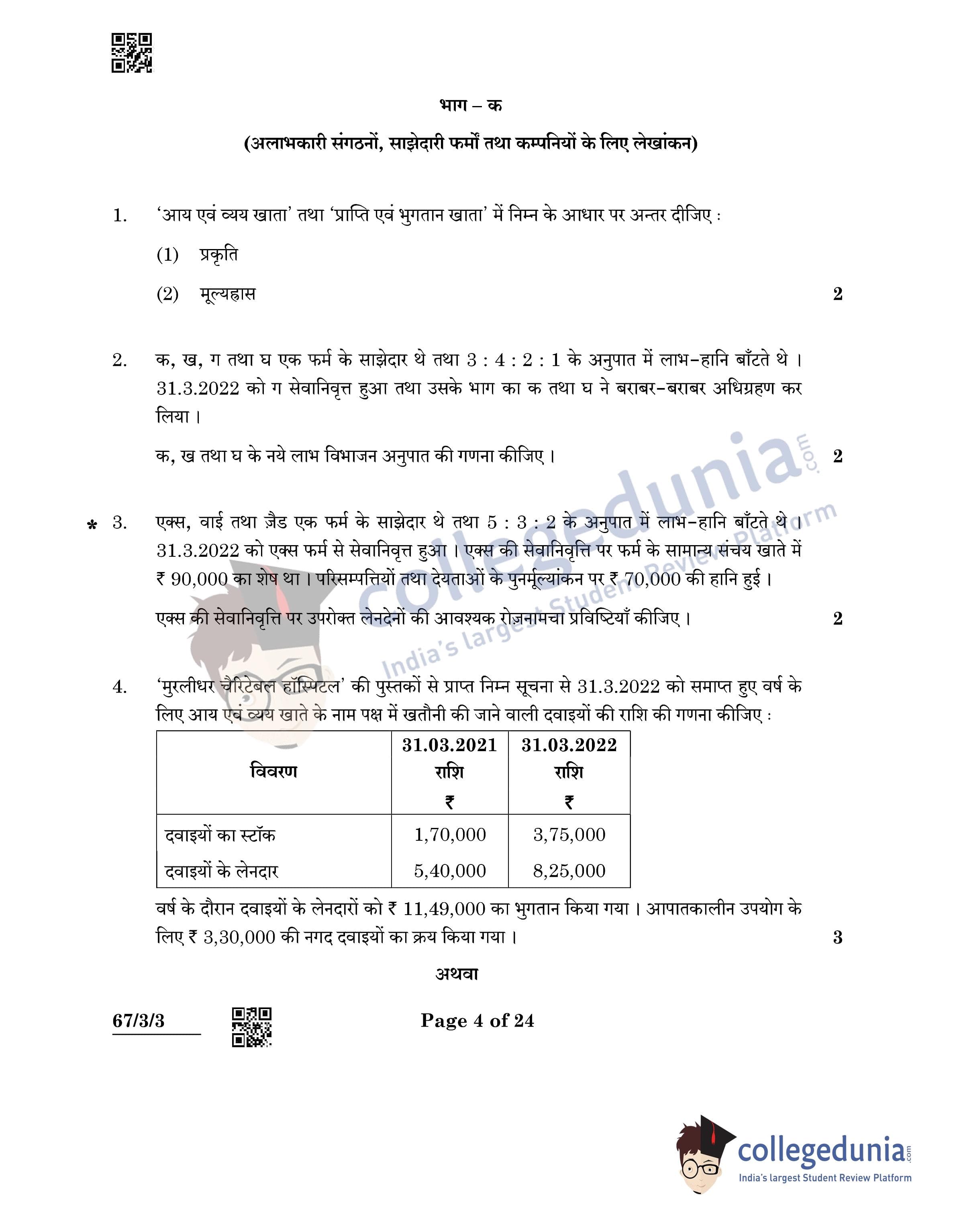 CBSE Class 12 Accountancy Question Paper 2022 with Answer Key (May 23, Set 3 - 67/3/3- Morning Session)
