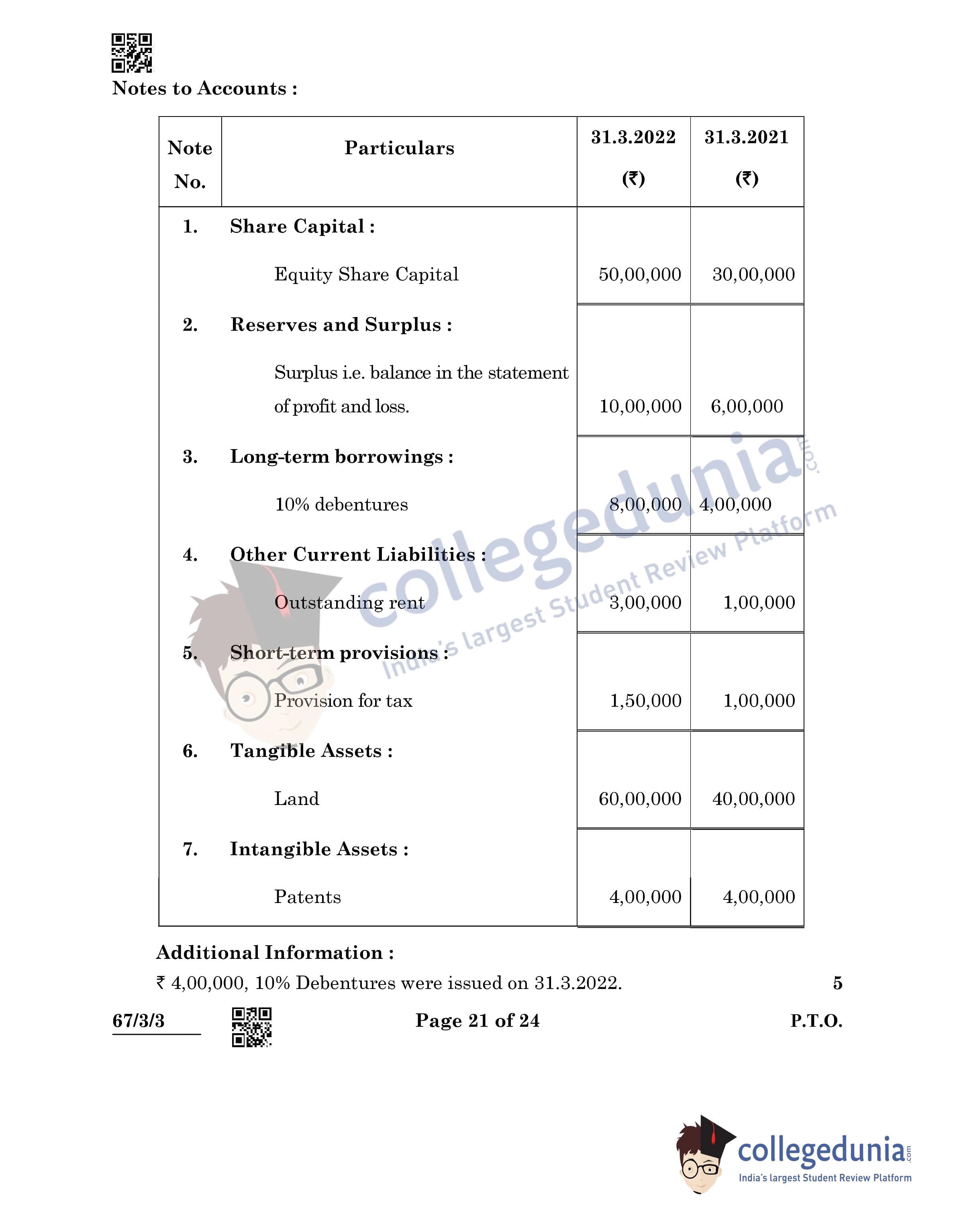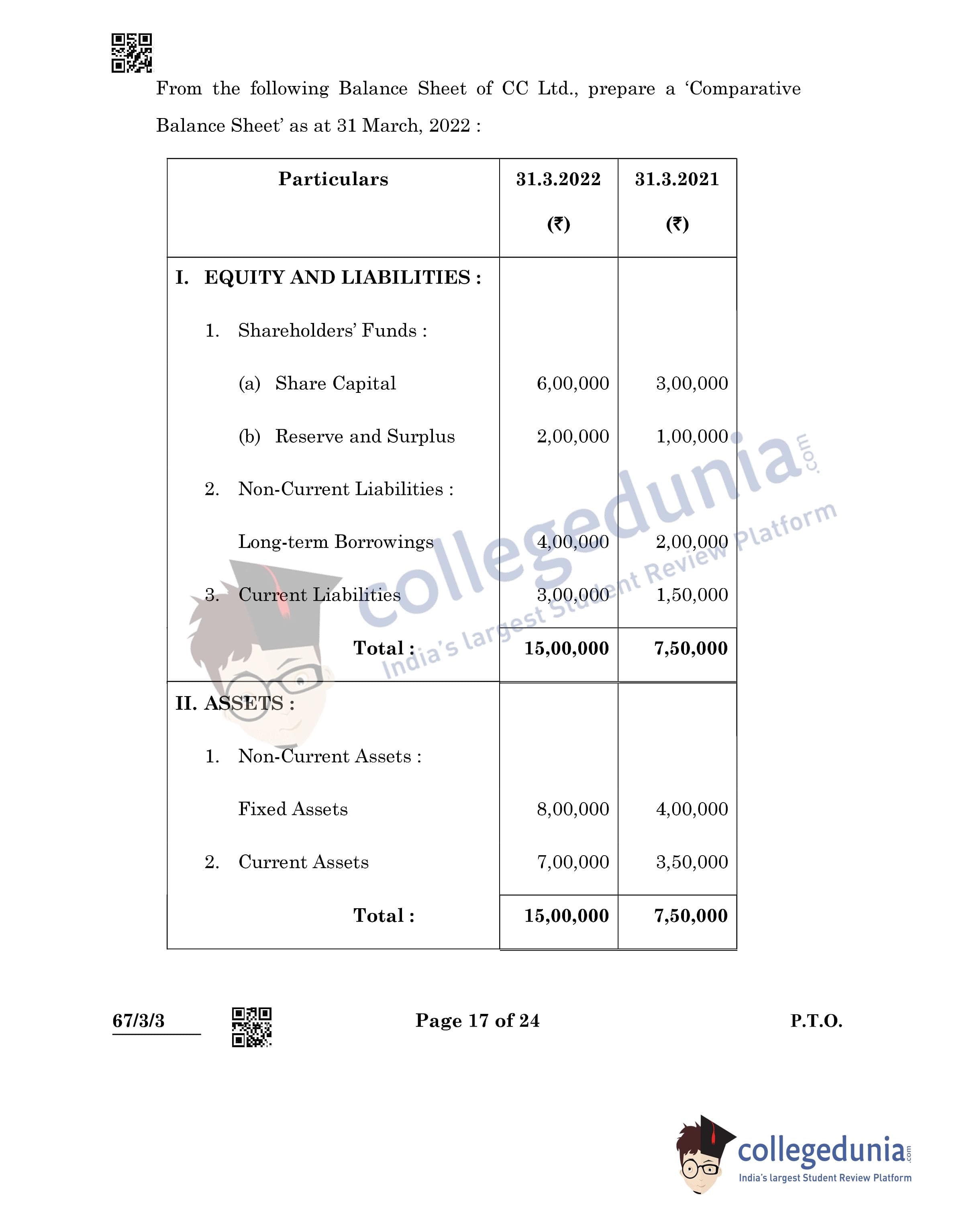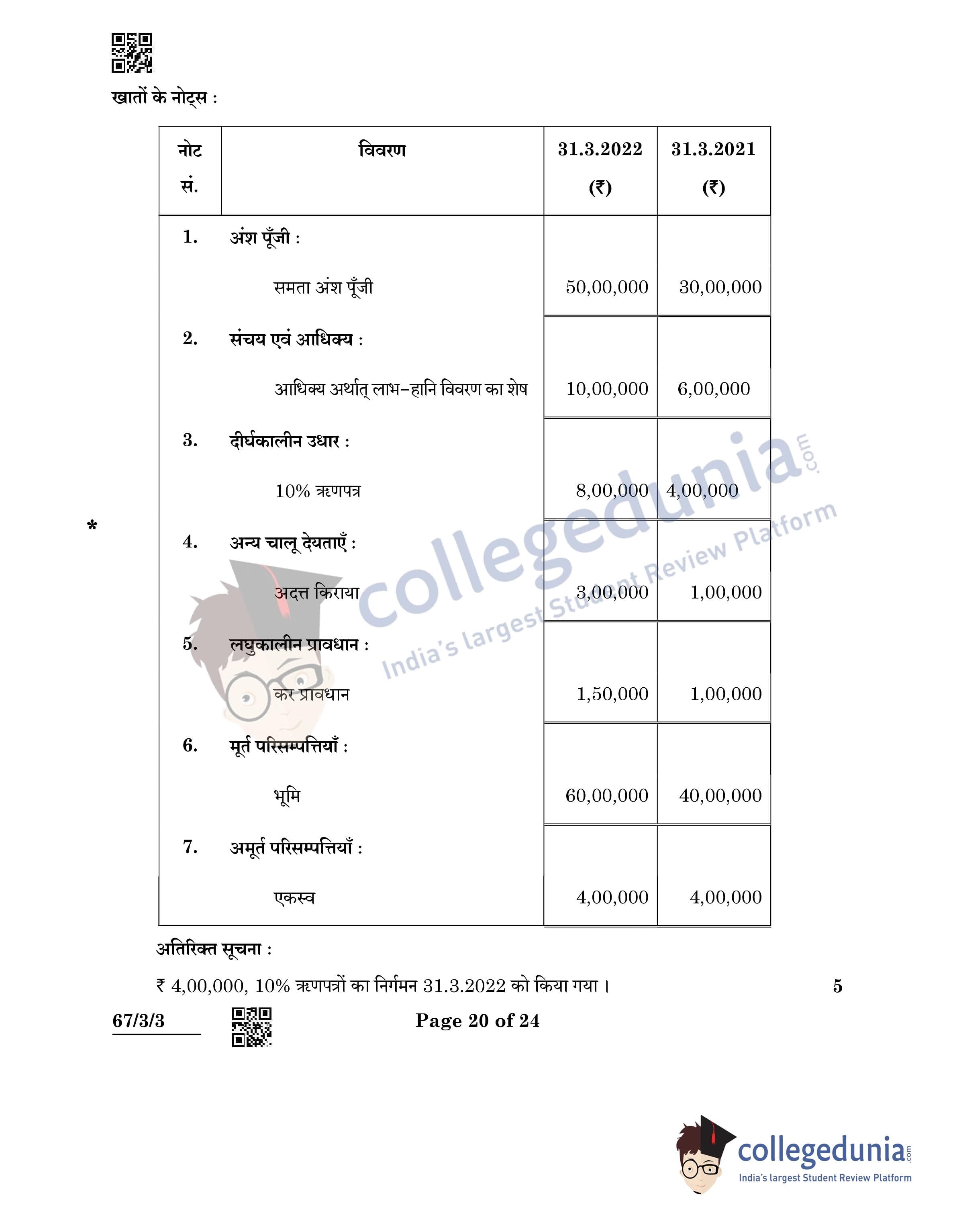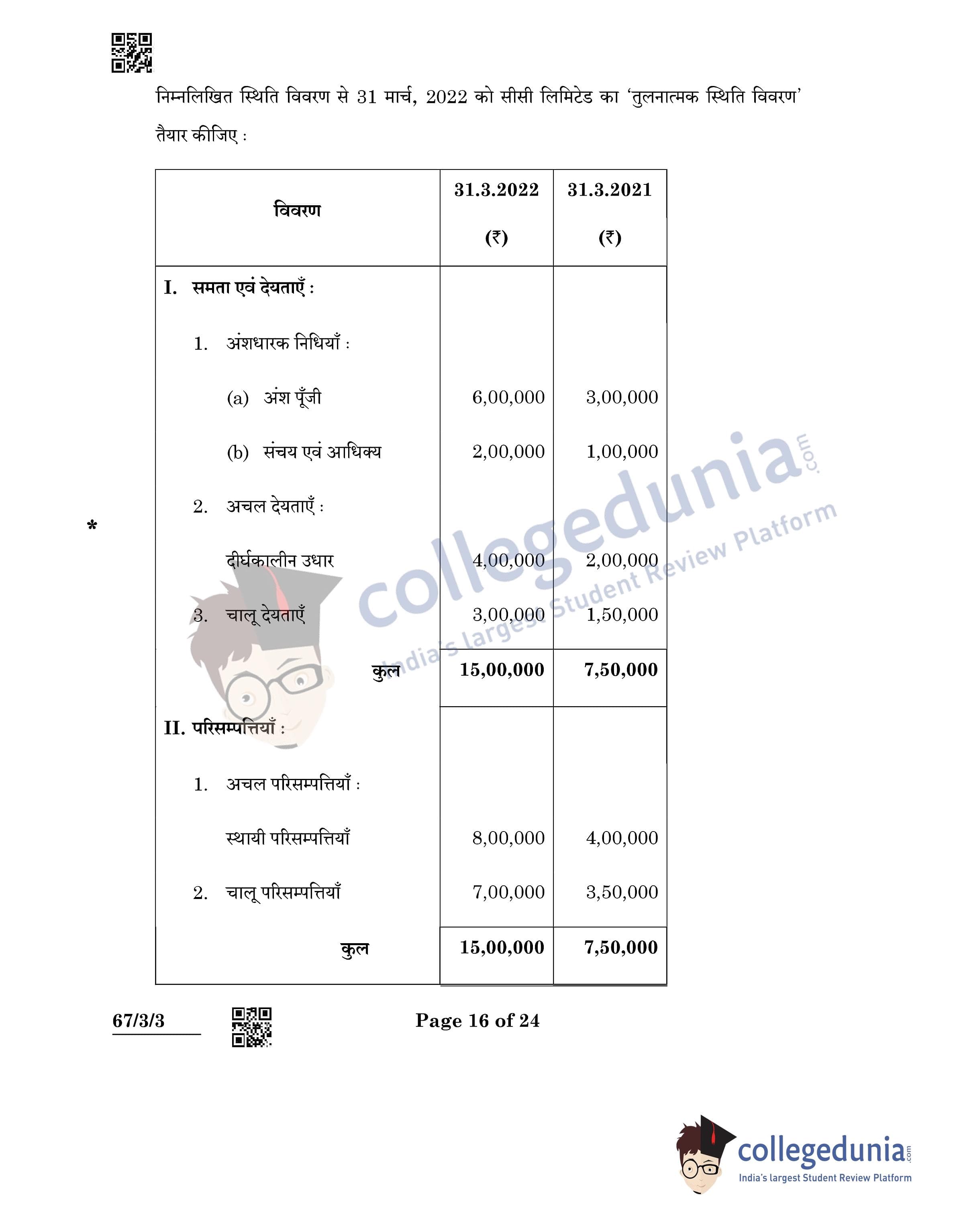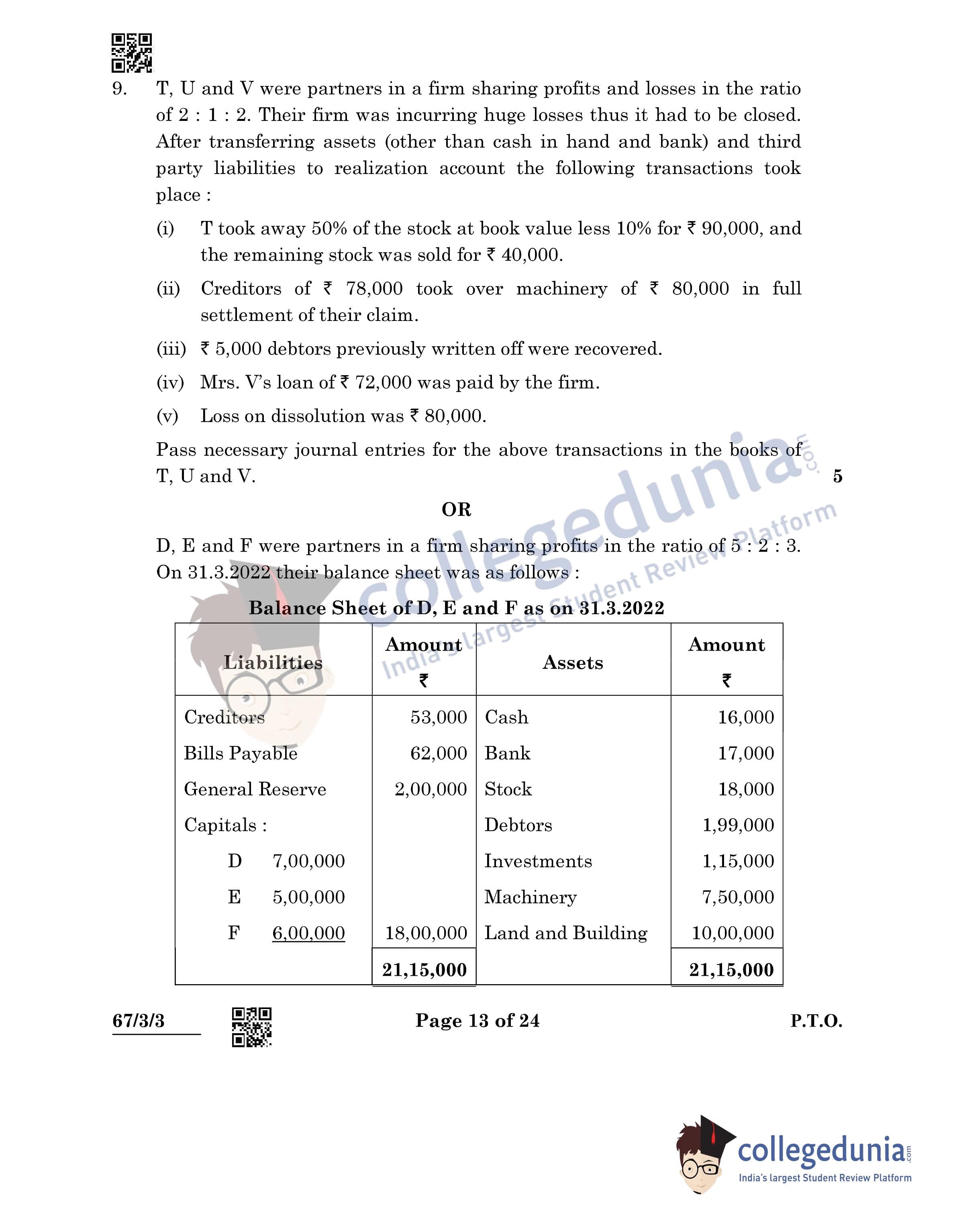 CBSE Class 12 Accountancy Question Paper 2022 with Answer Key (May 23, Set 3 - 67/3/3- Morning Session)