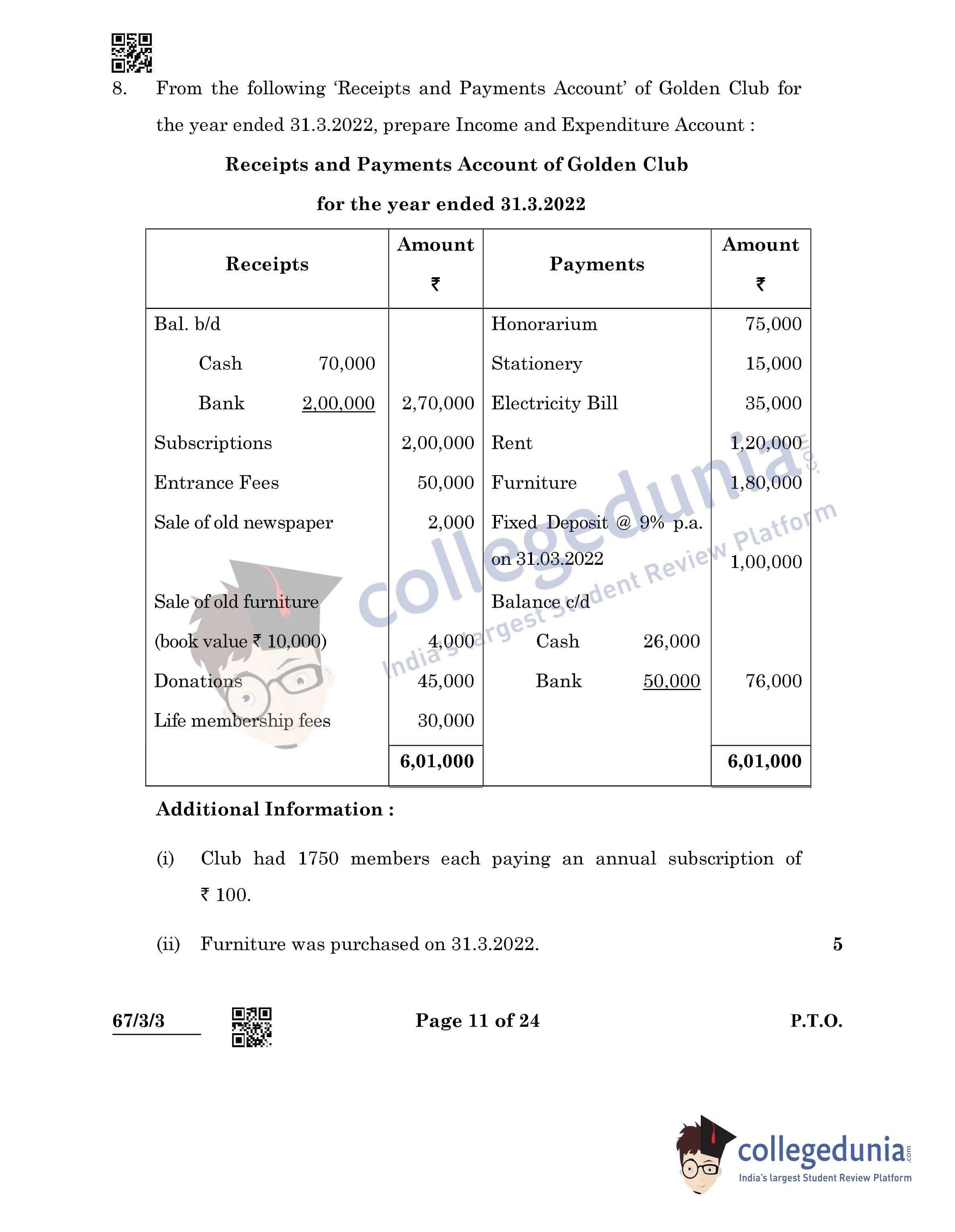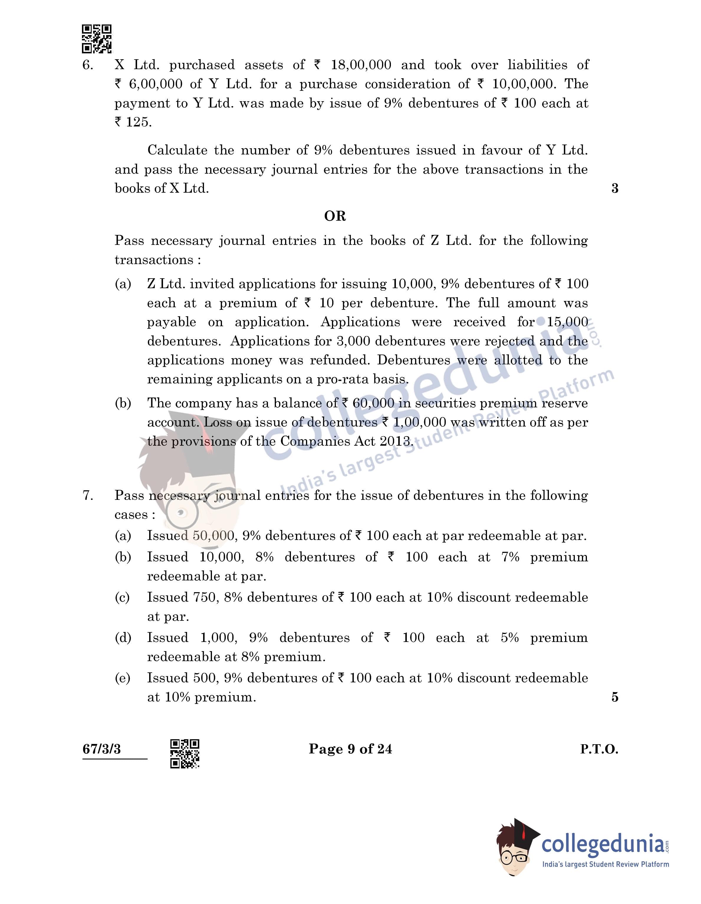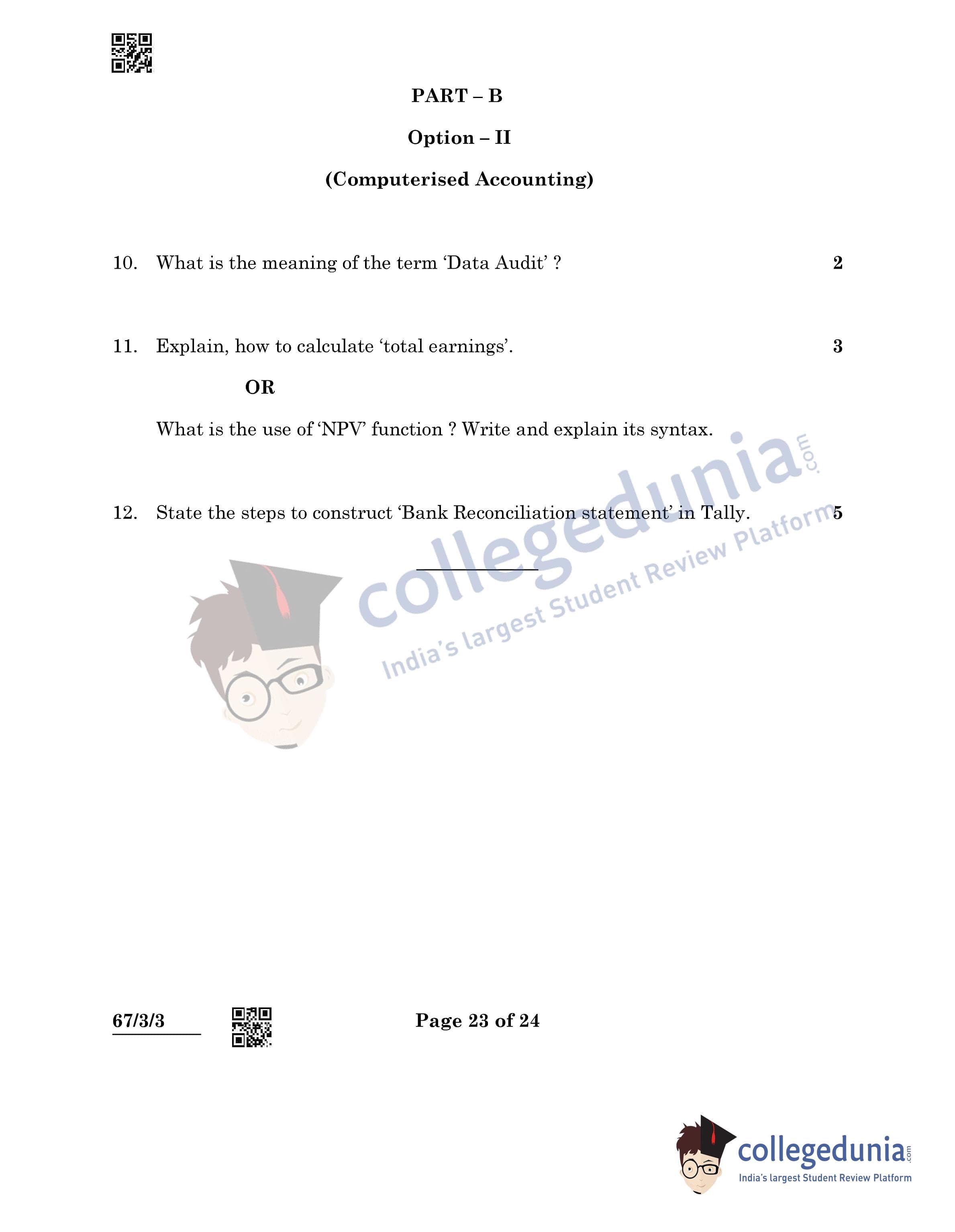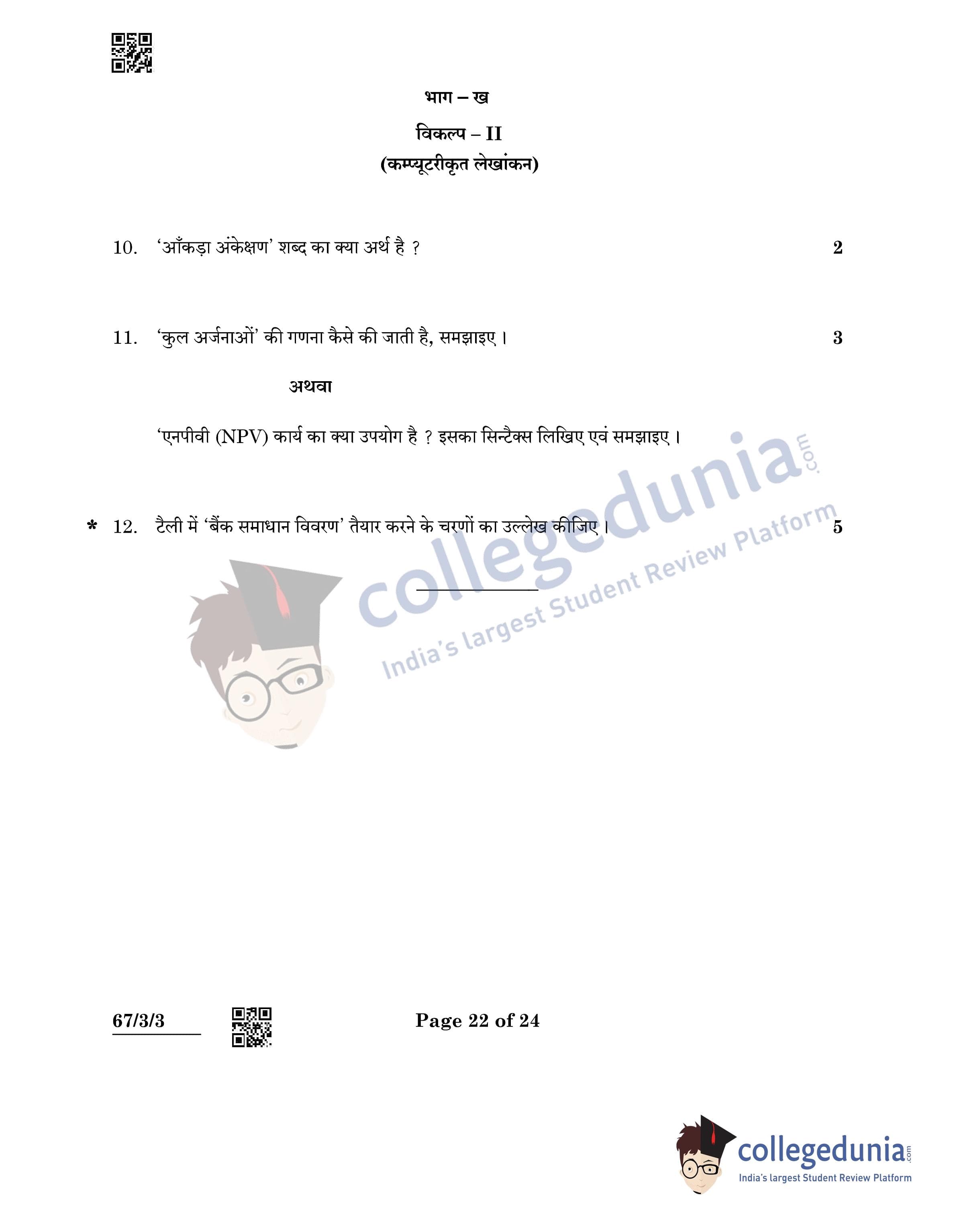 CBSE Class 12 Accountancy Question Paper 2022 with Answer Key (May 23, Set 3 - 67/3/3- Morning Session)