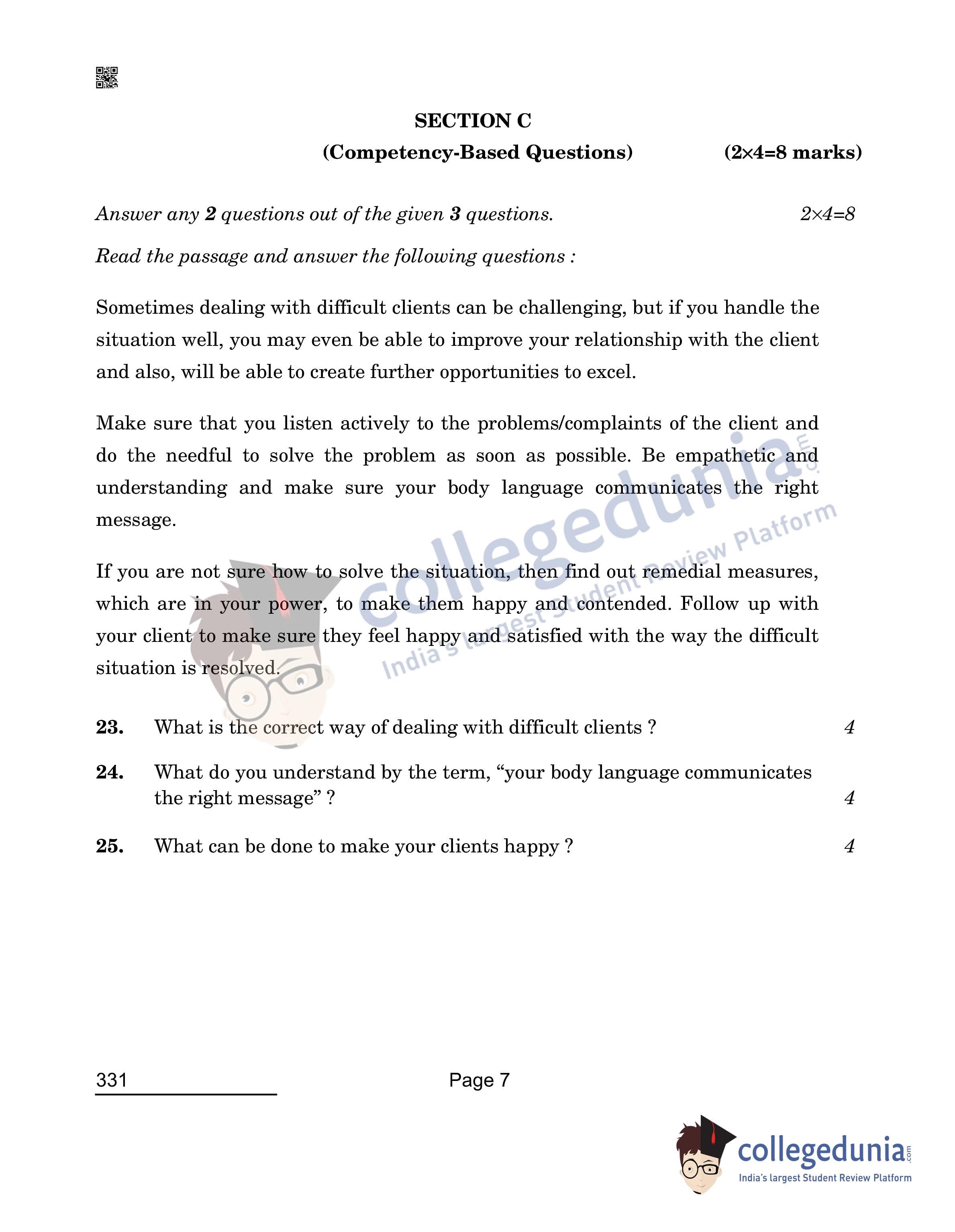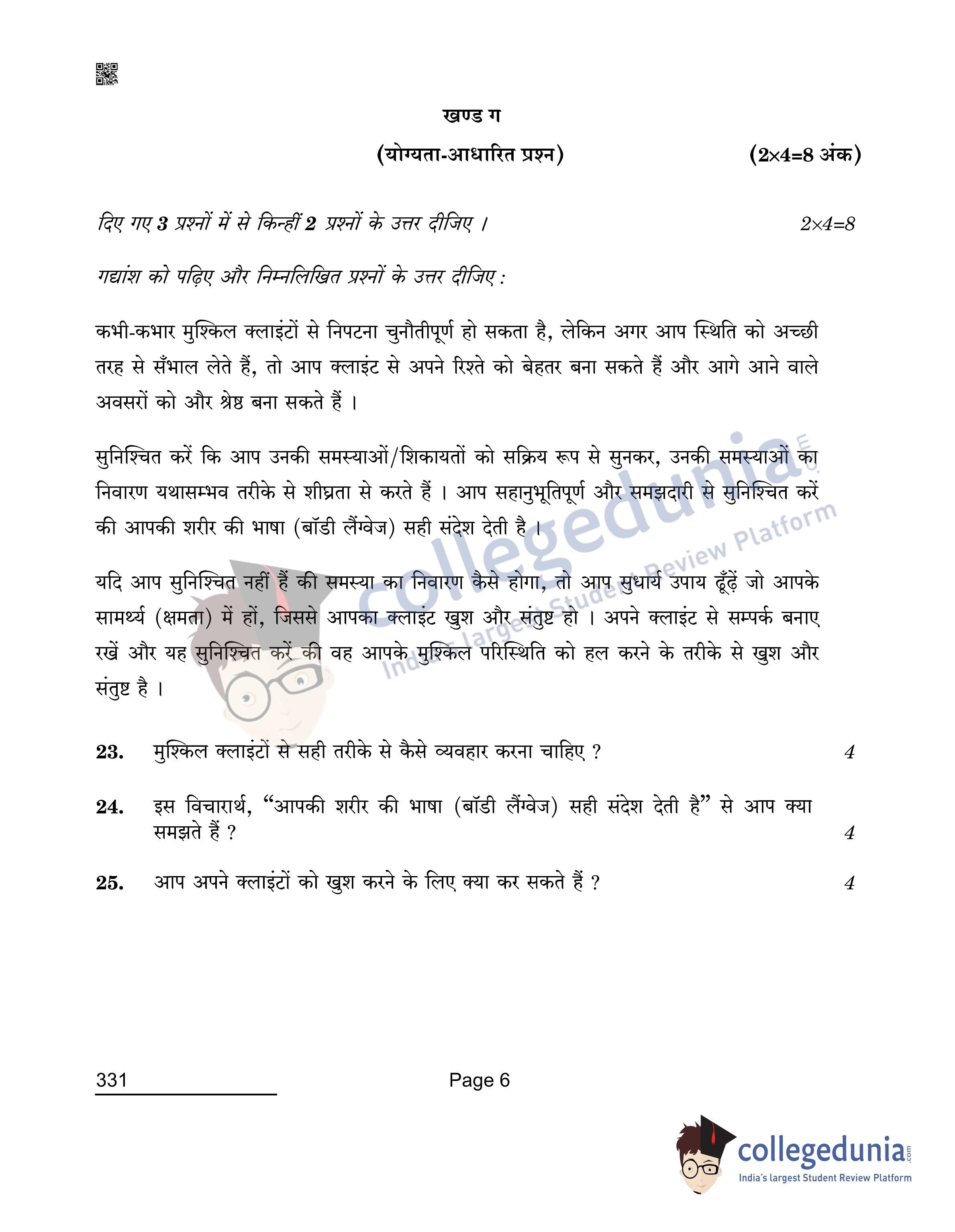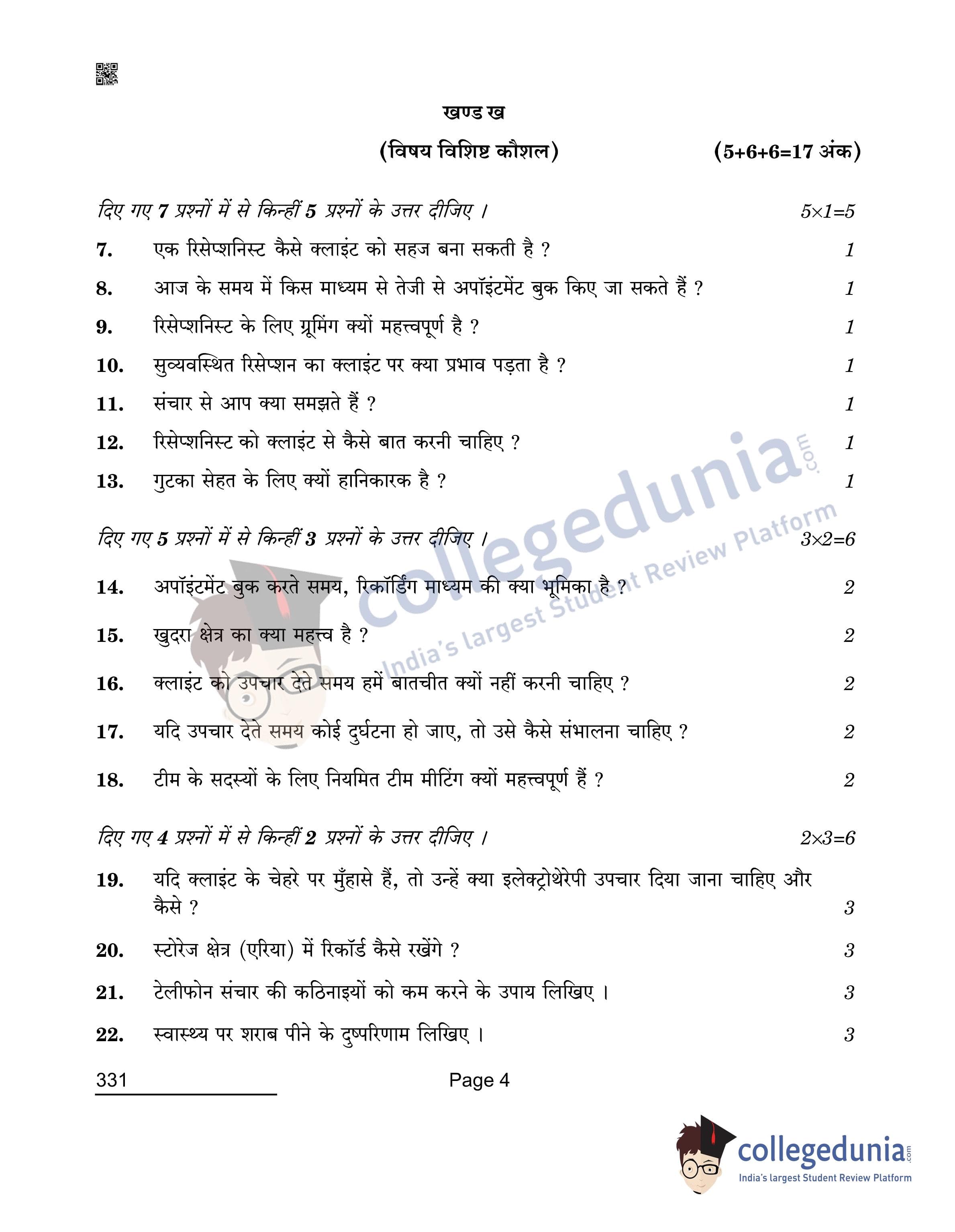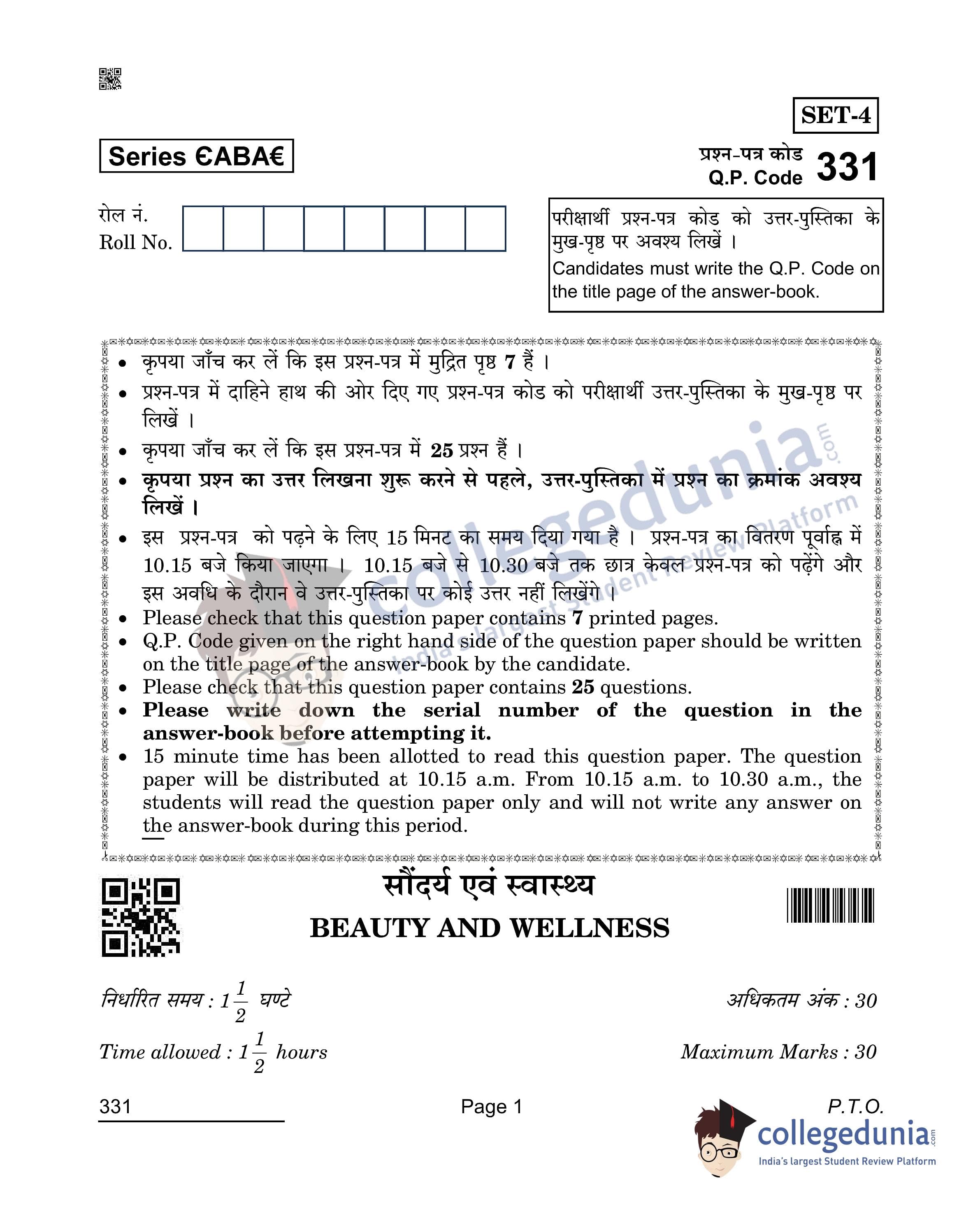 CBSE Class 12 2022 Beauty & Wellness Question Paper Set 4 with Answer Key pdf is available for download. The exam was conducted by Central Board of Secondary Education on April 26, 2022 in the Morning Session 10:30 AM to 12:00 PM. The medium of paper was English & Hindi. The question paper comprised a total of 25 questions divided among 3 sections.