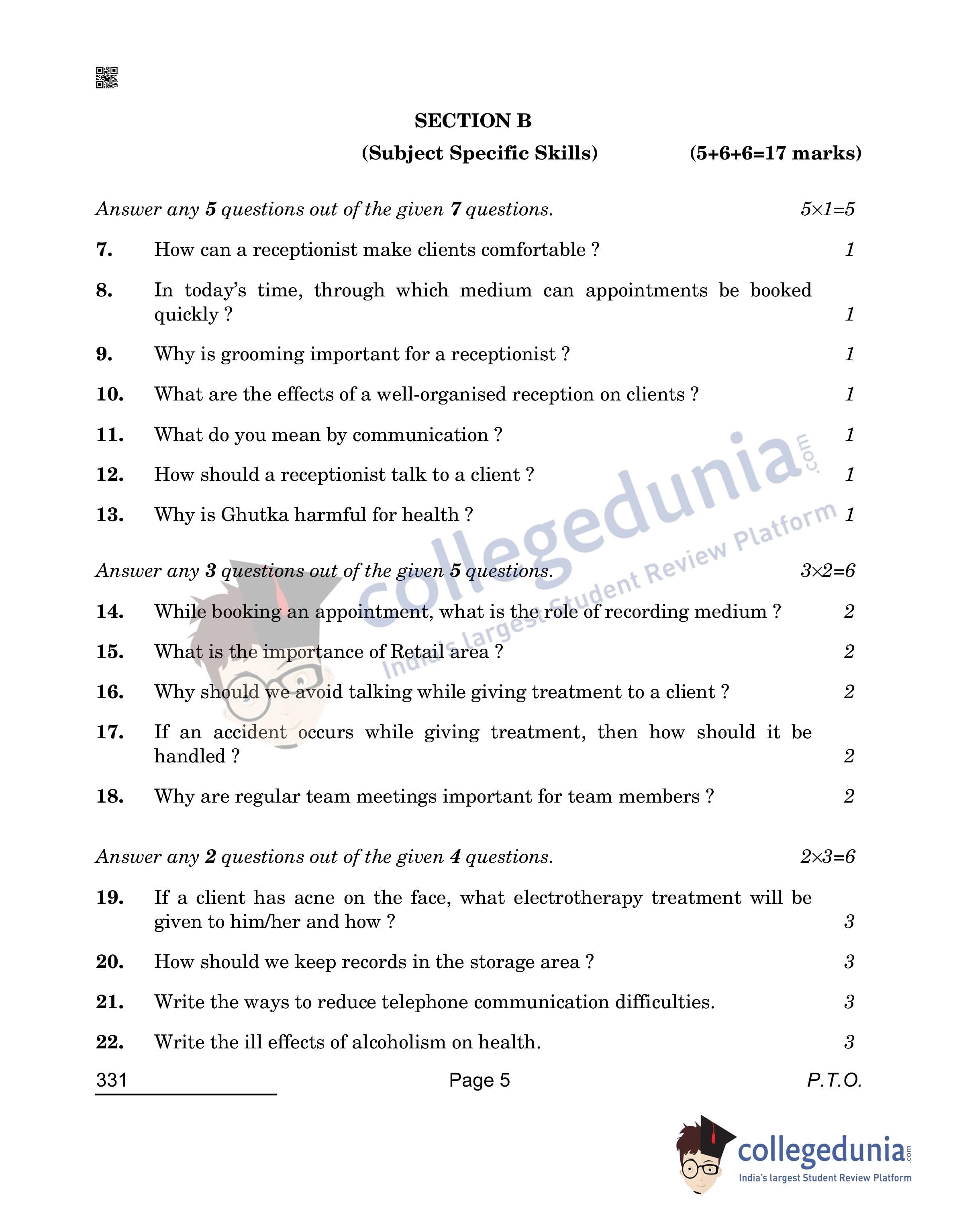 CBSE Class 12 Beauty & Wellness Question Paper 2022 with Answer Key (April 26, Set 4- Morning Session)