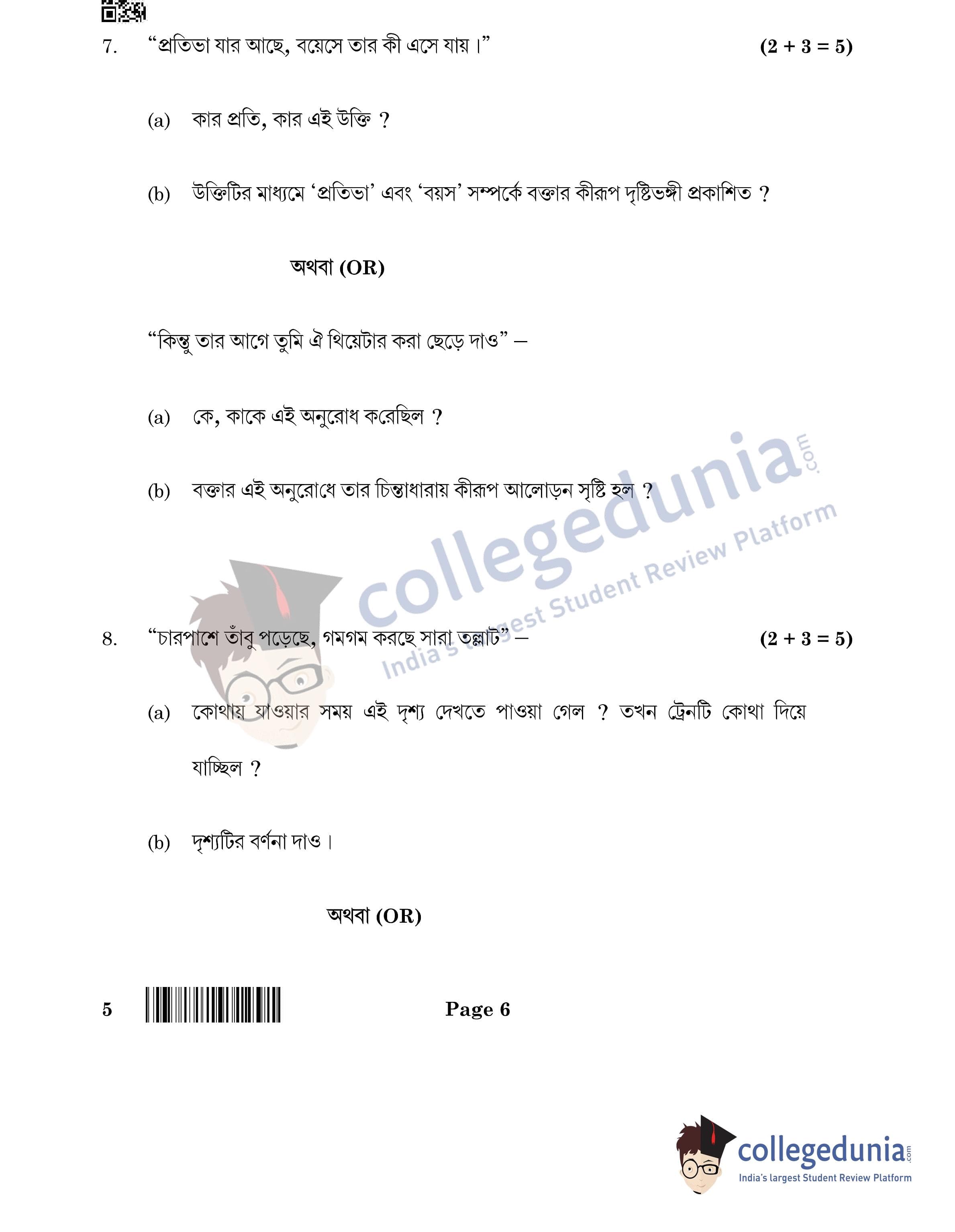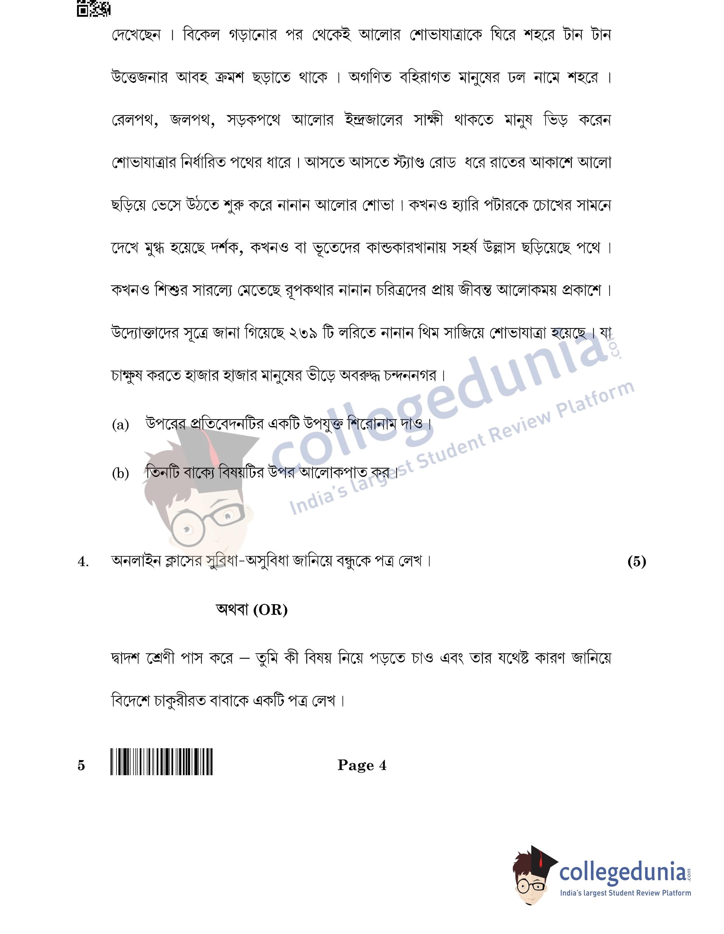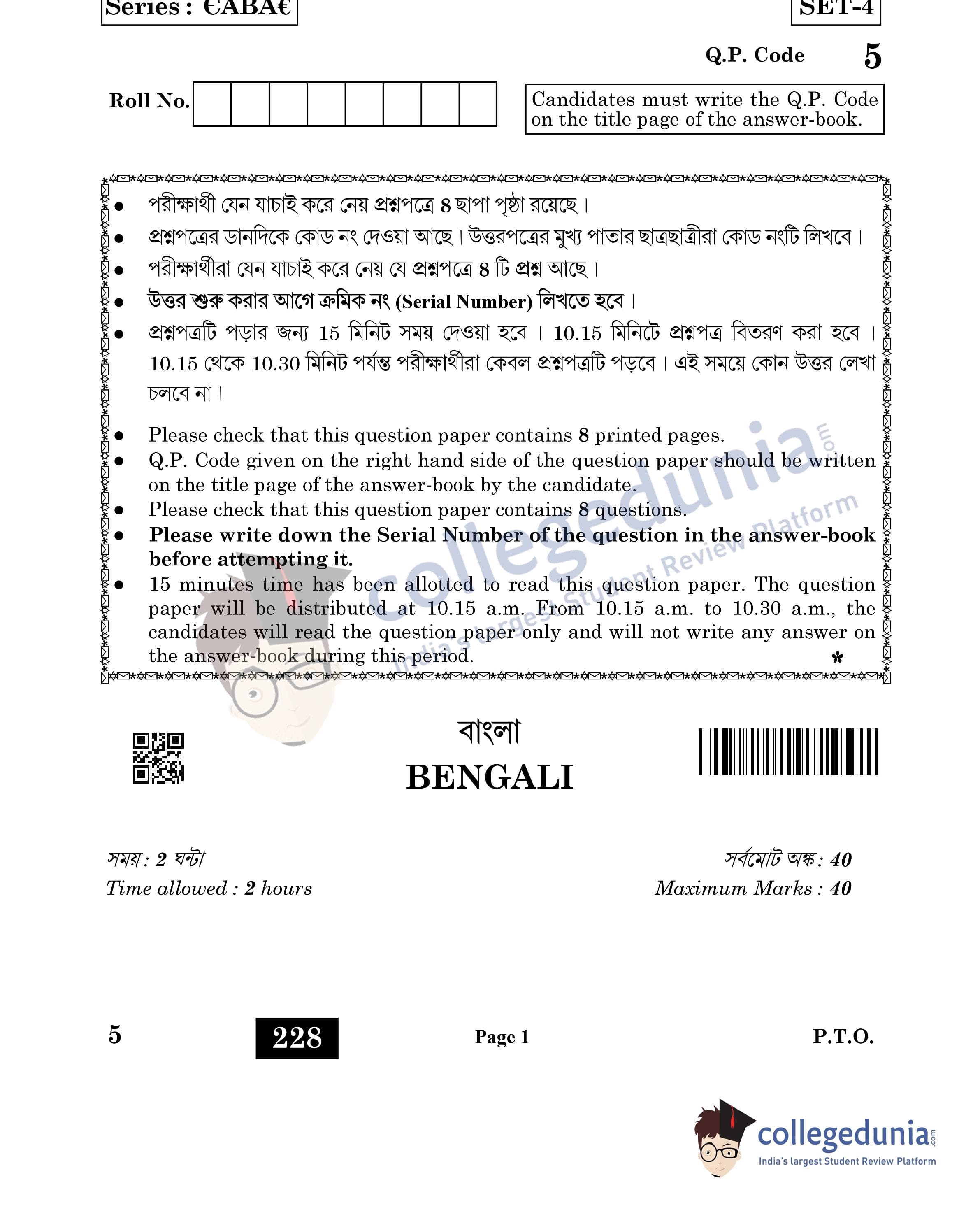 CBSE Class 12 Bengali Question Paper 2022 with Answer Key (May 11, Set 4- Morning Session)