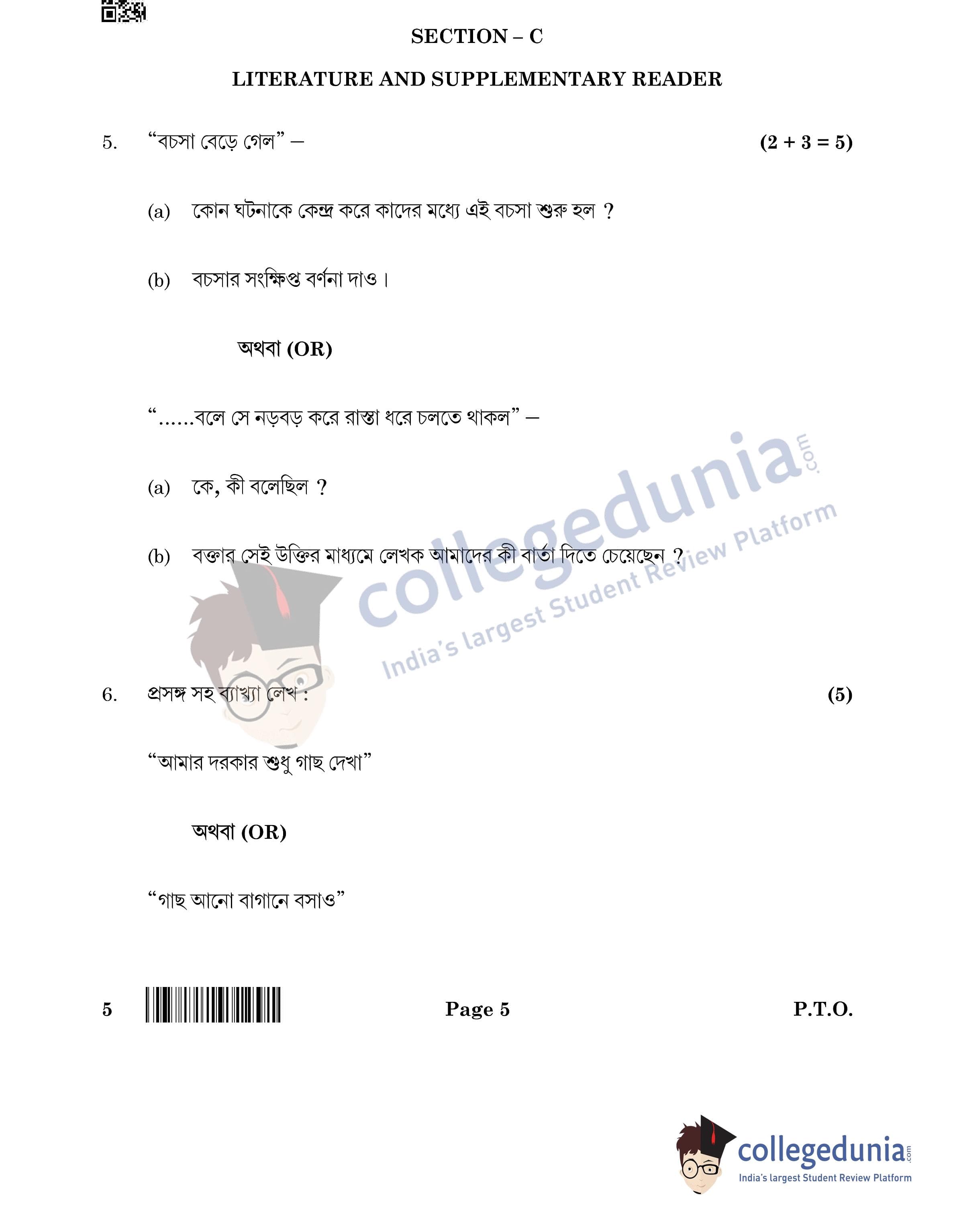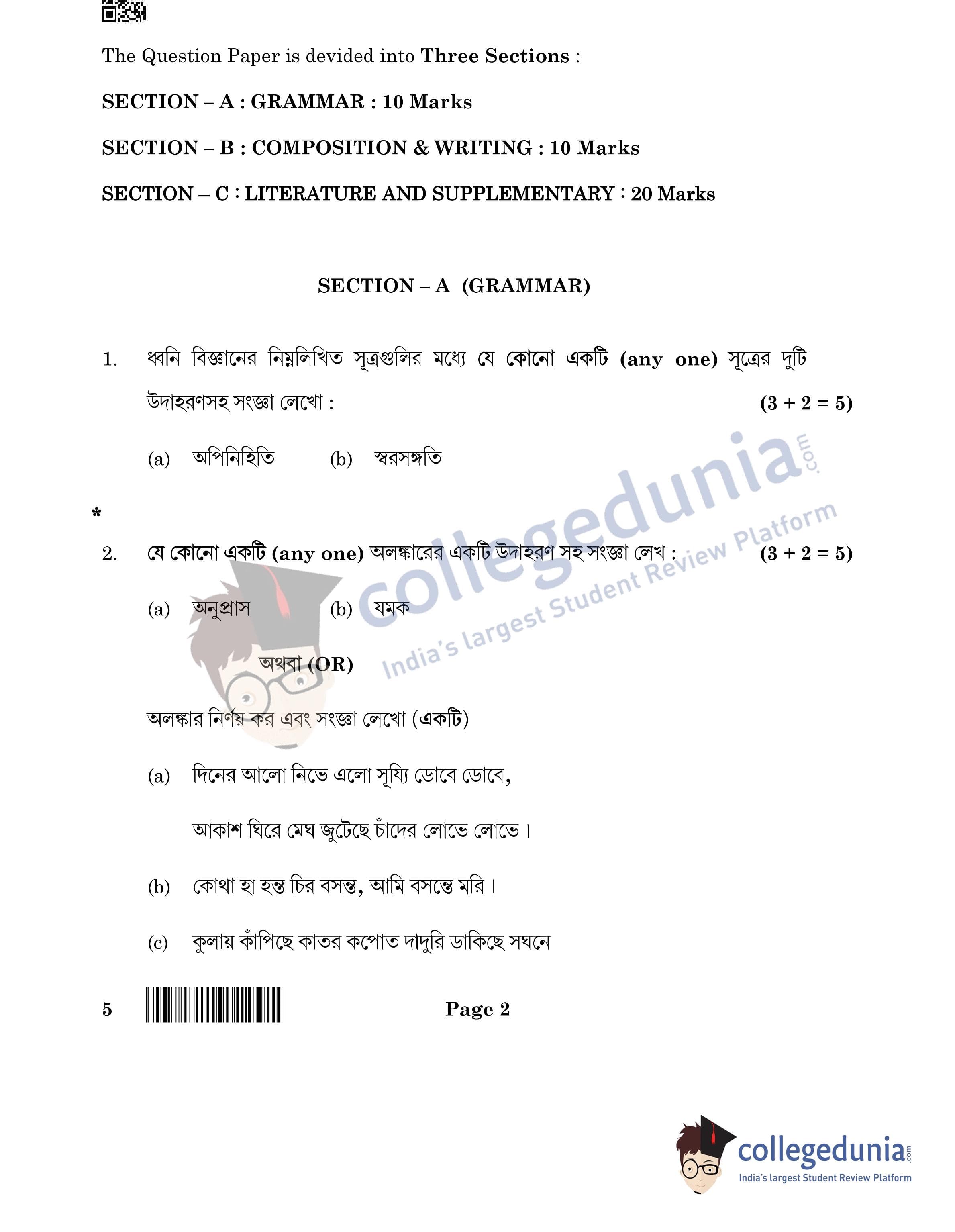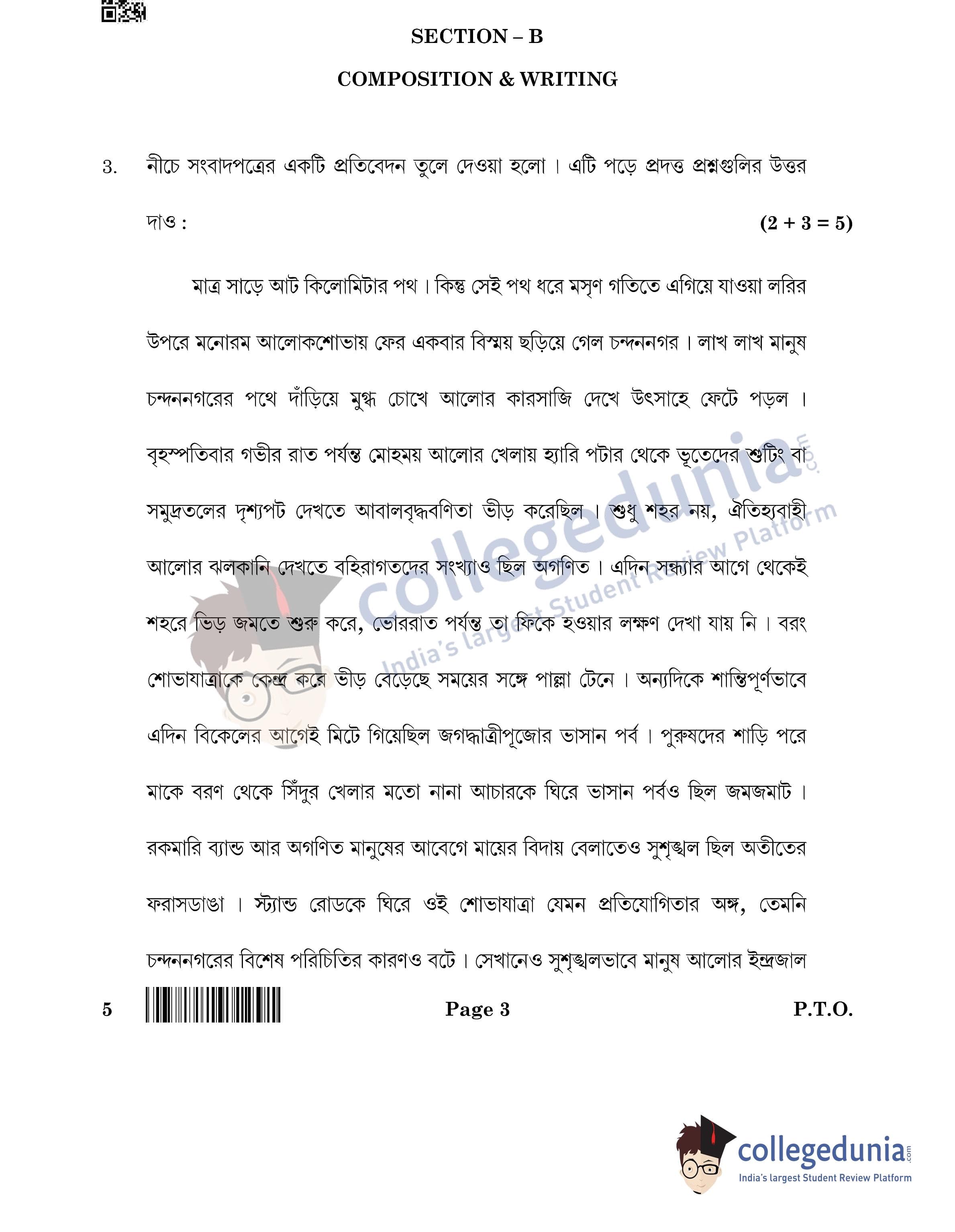 CBSE Class 12 Bengali Question Paper 2022 with Answer Key (May 11, Set 4- Morning Session)